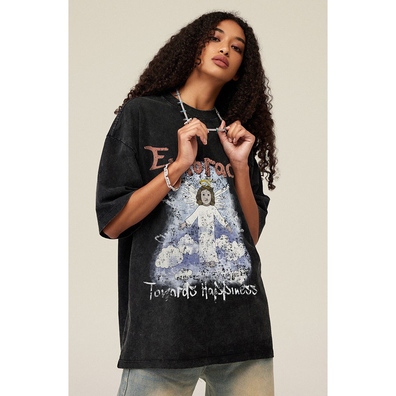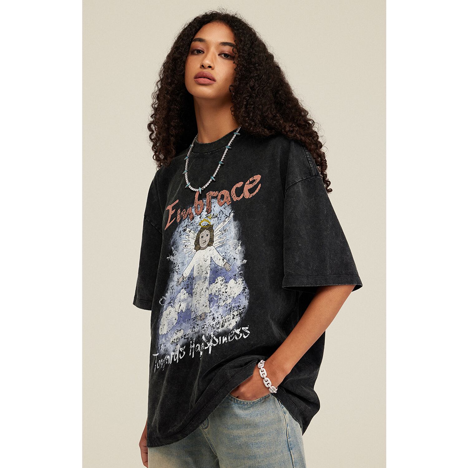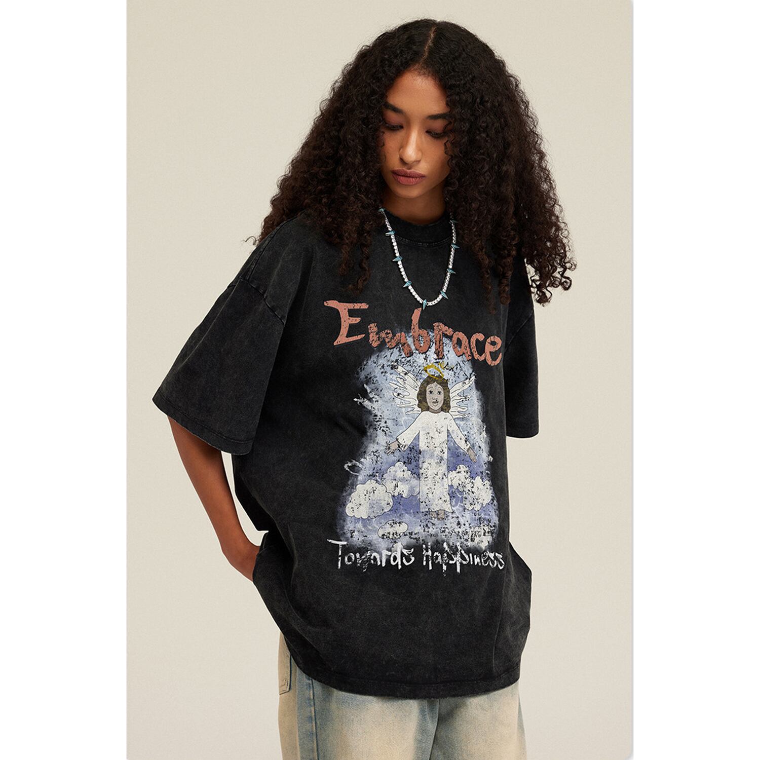 VINTAGE ストリート 天使プリント Tシャツ T1608