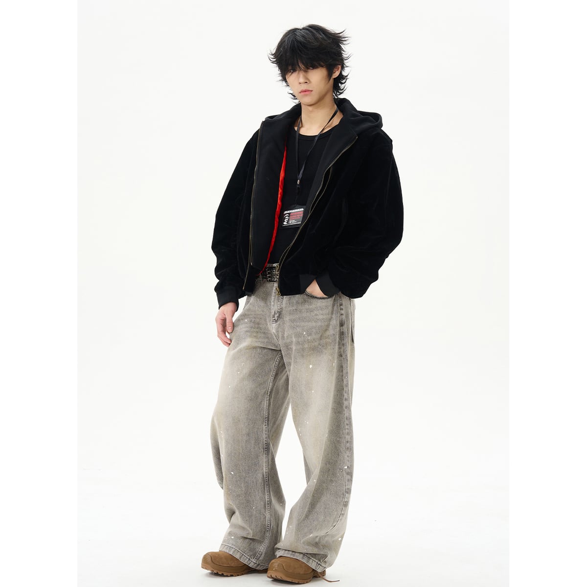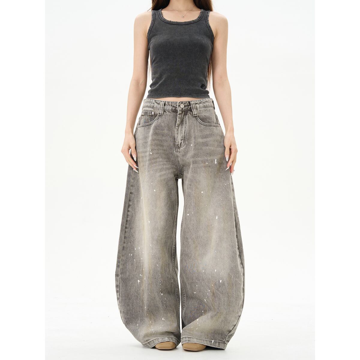 ストリート ウォッシュ加工ペイントデニムパンツ P291