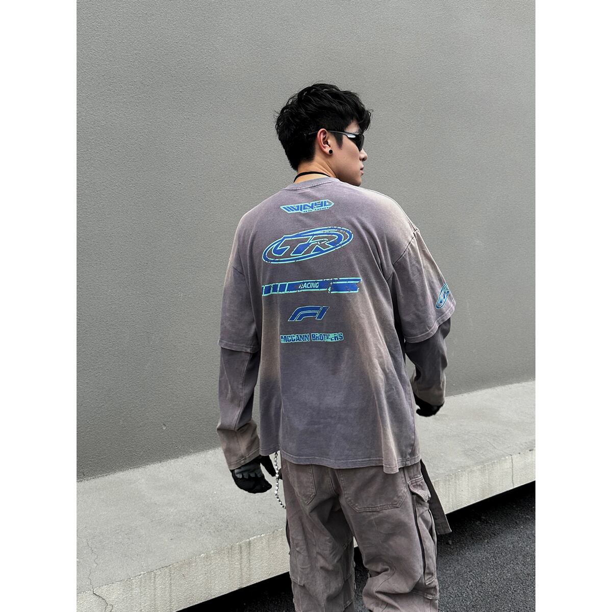 VINTAGE ストリート 汚れ加工 ロングTシャツ T1634