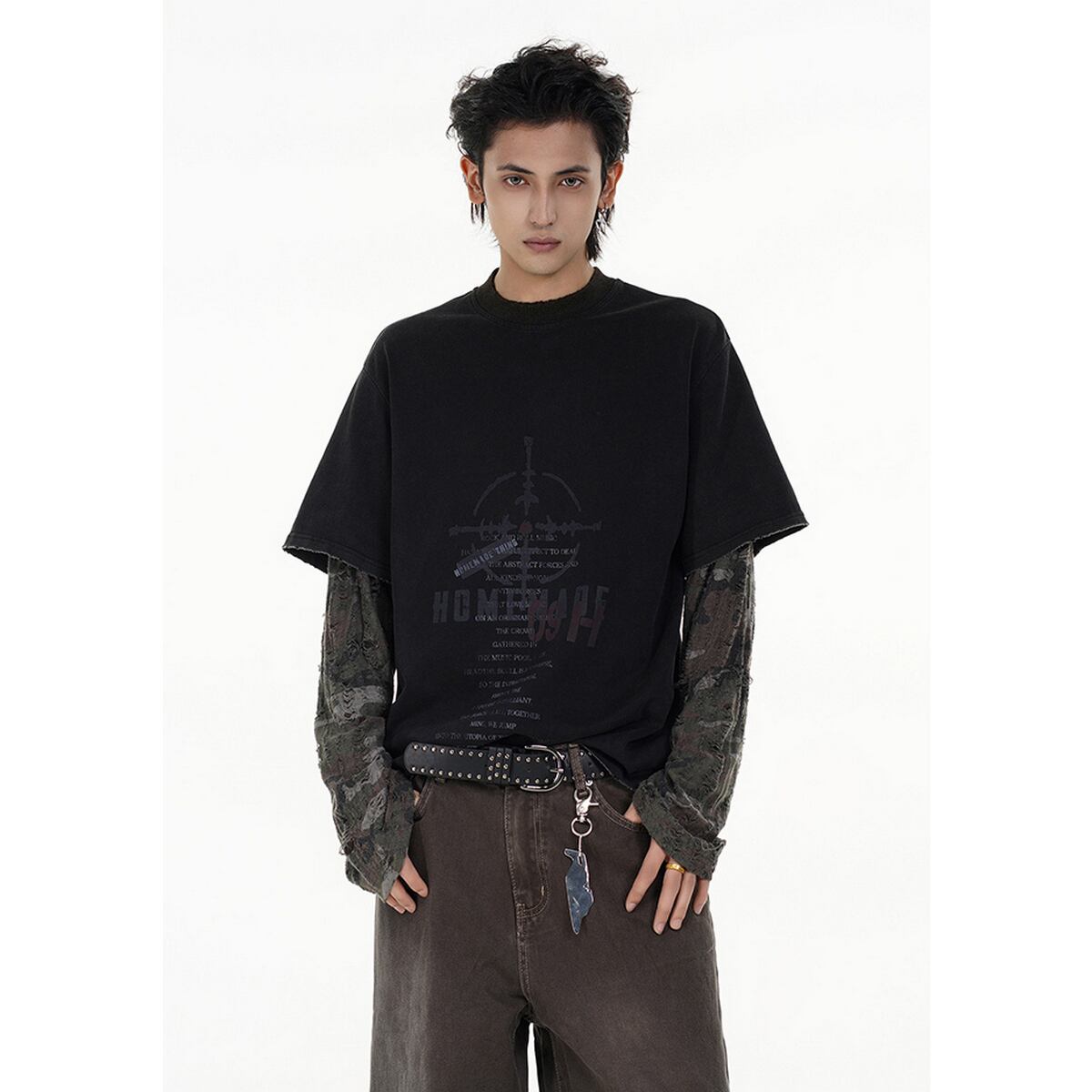 VINTAGE ストリート ダメージ加工 ロングTシャツ T1637