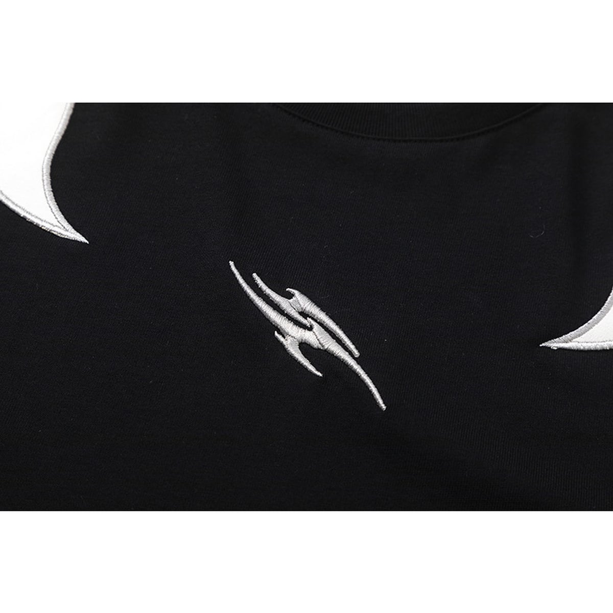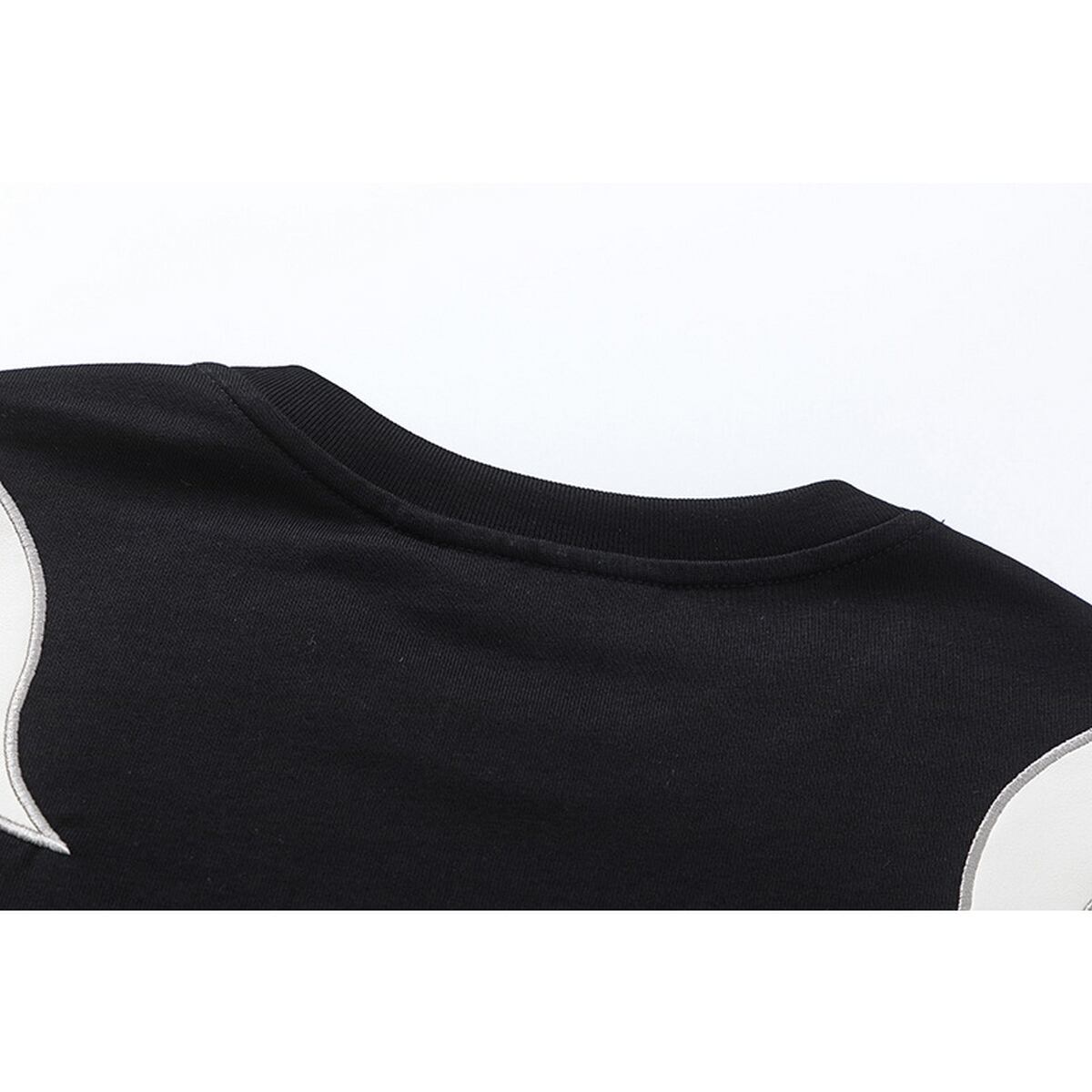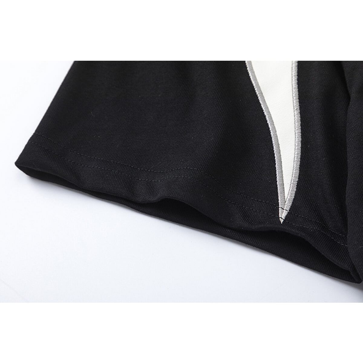 ストリート 刺繍入りPUレザーパッチワークTシャツ T1762