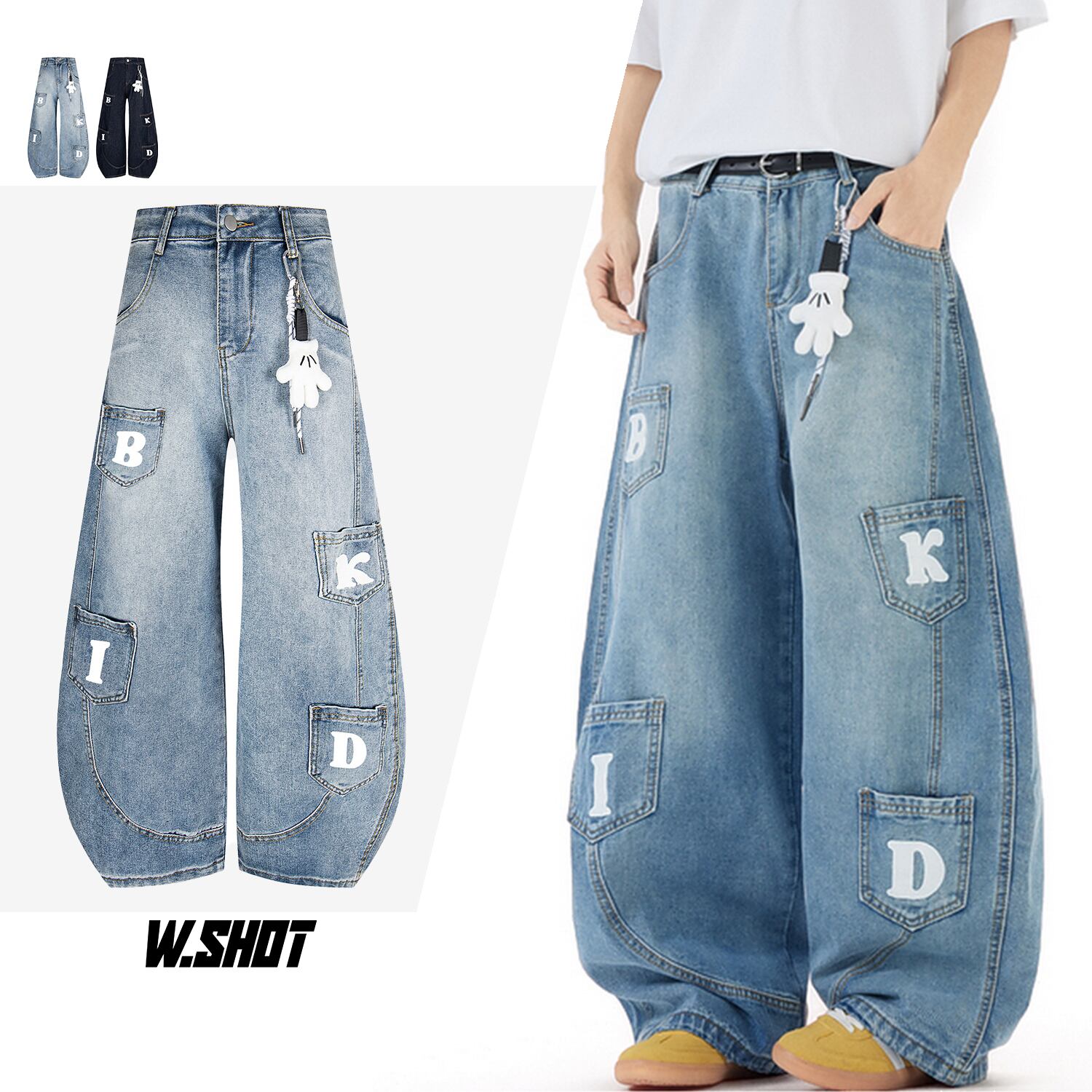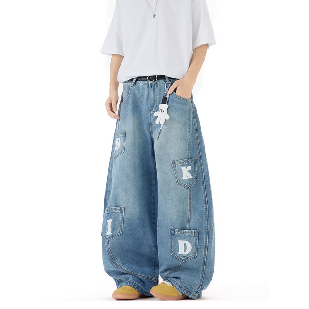 ストリート キーホルダー付きデニムパンツ P328