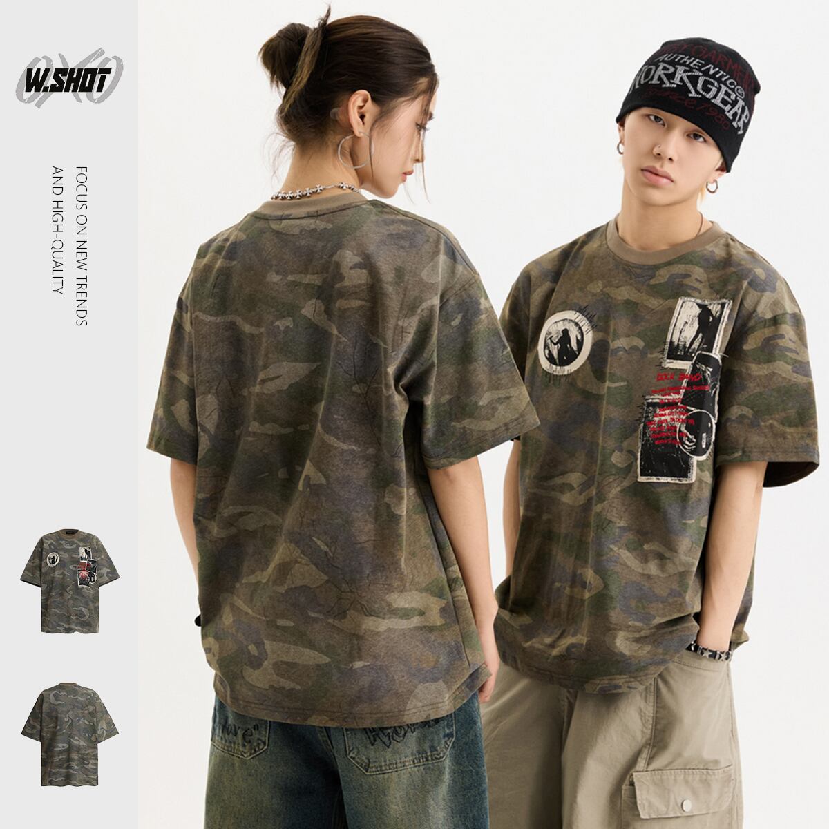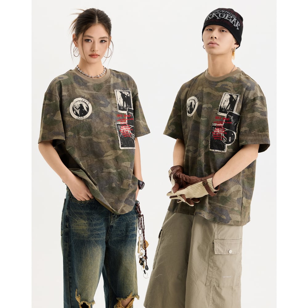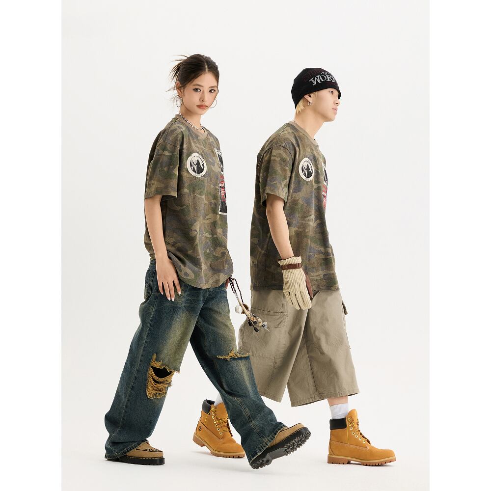 VINTAGE ストリート 迷彩プリント Tシャツ T1789