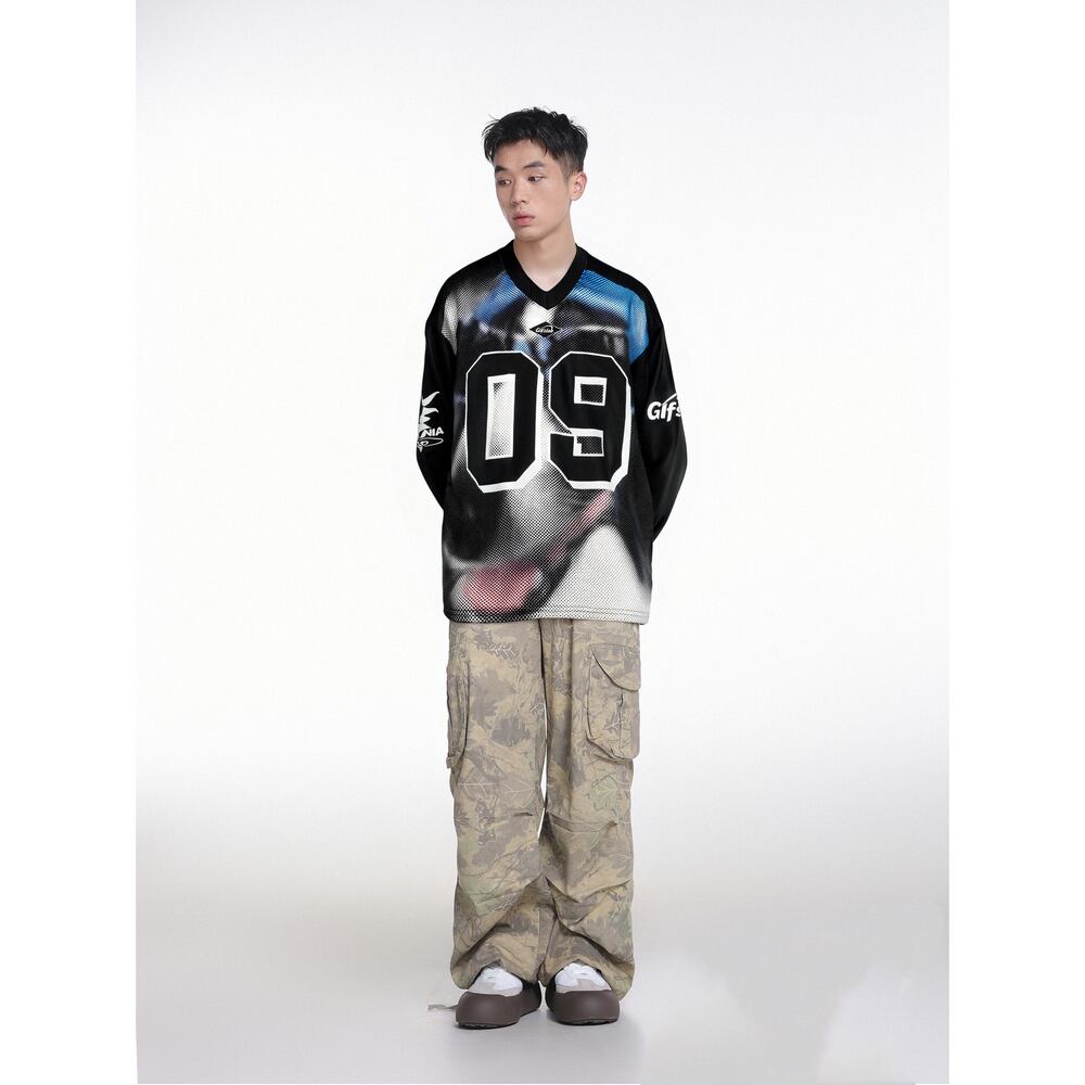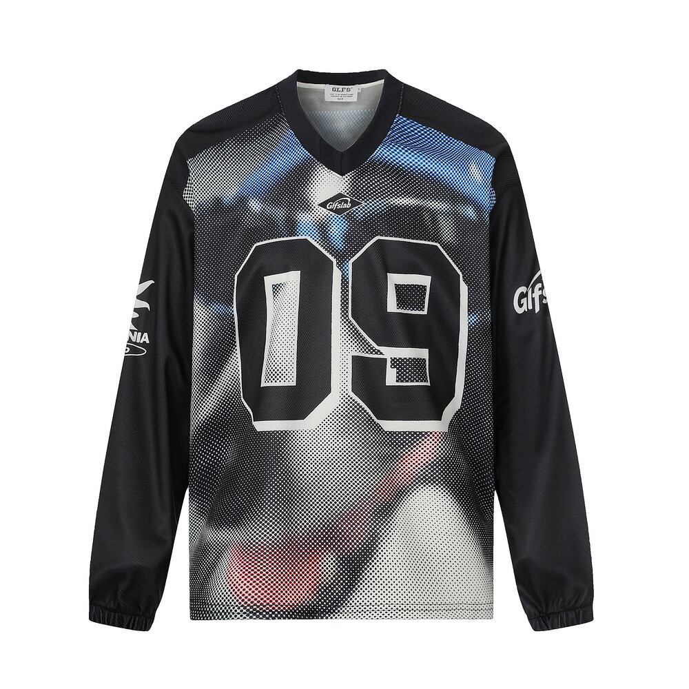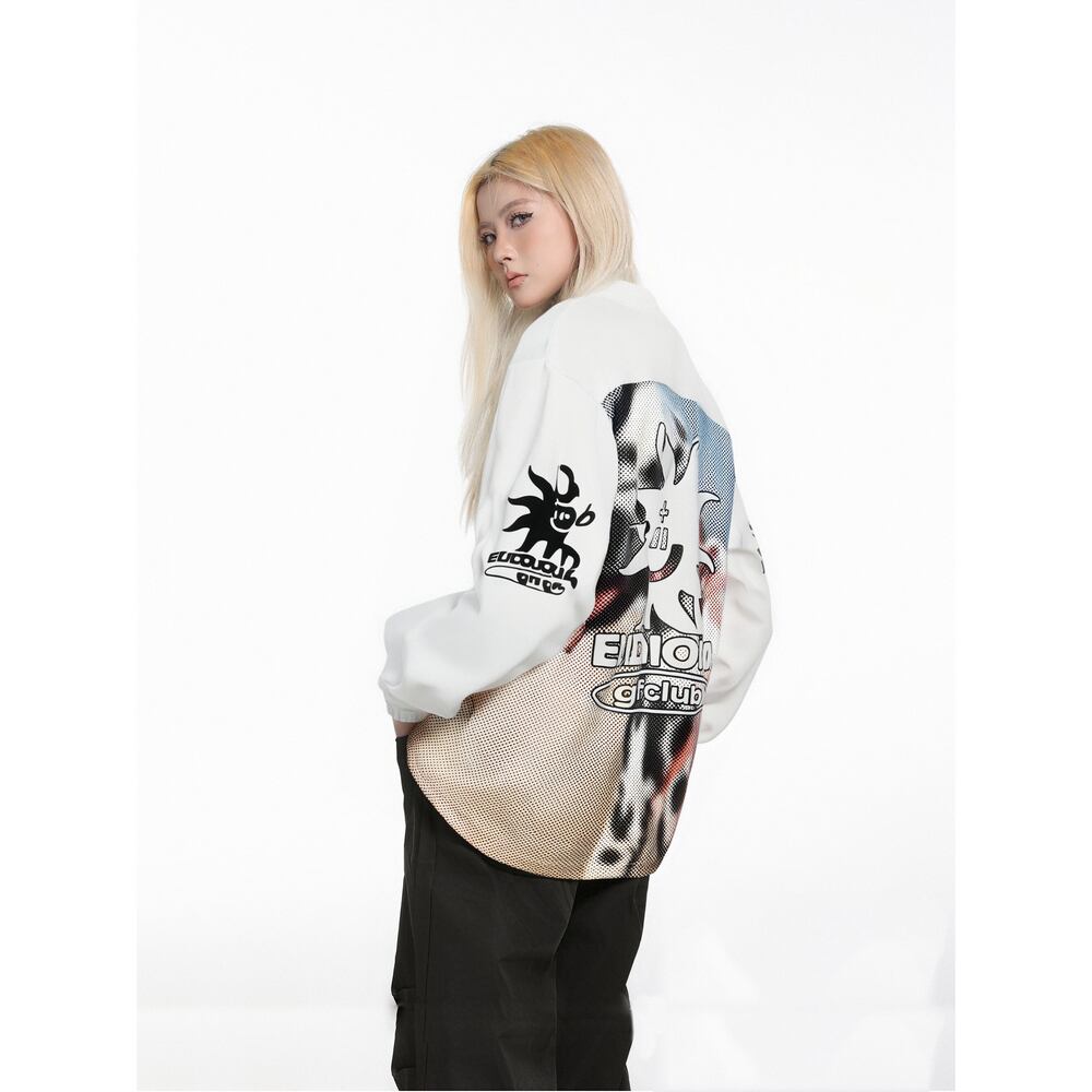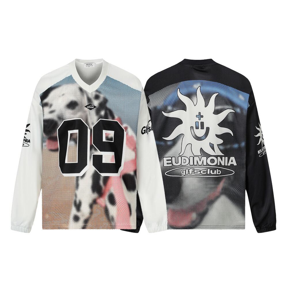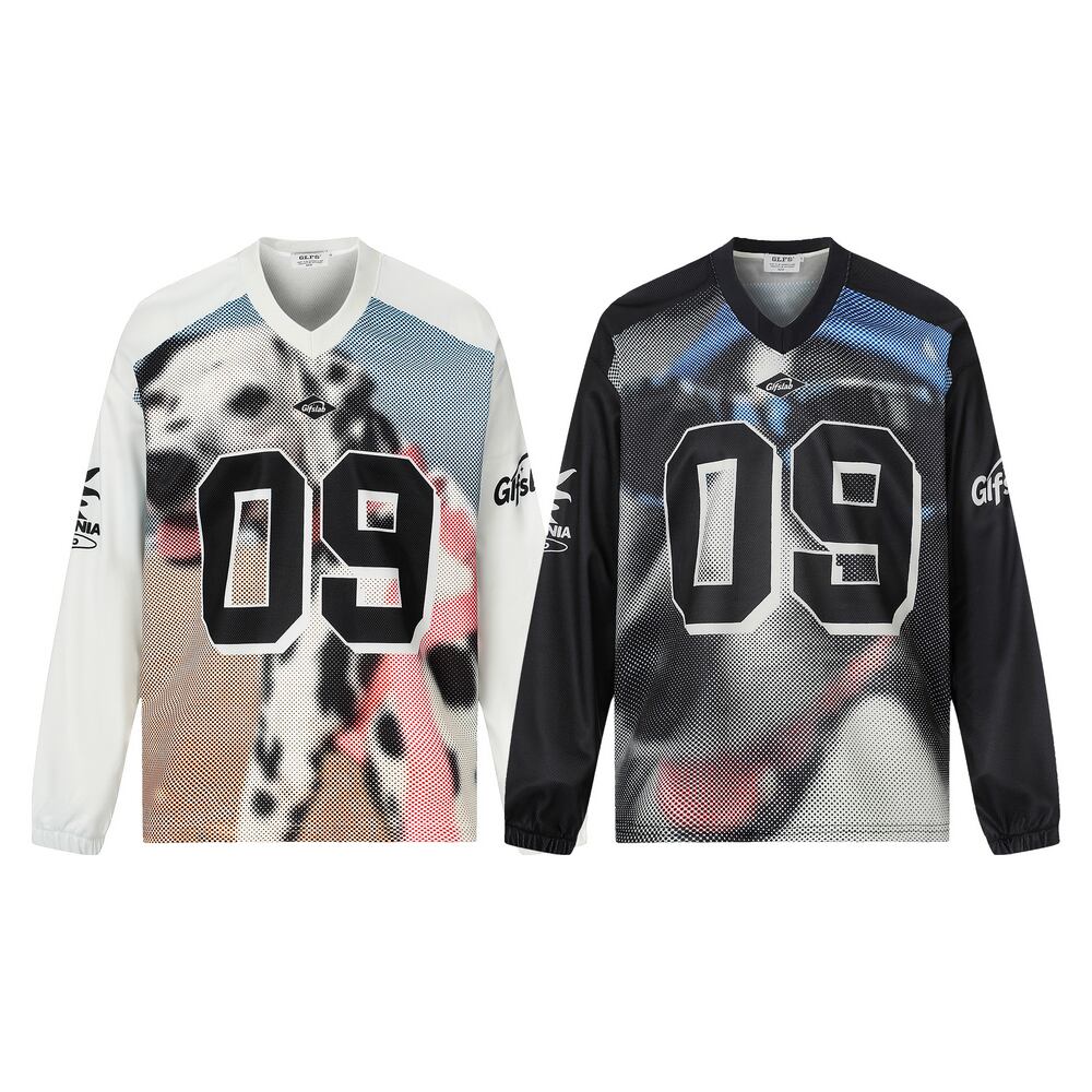 ストリート GLFSモザイク犬Vネック ロングTシャツ T1805