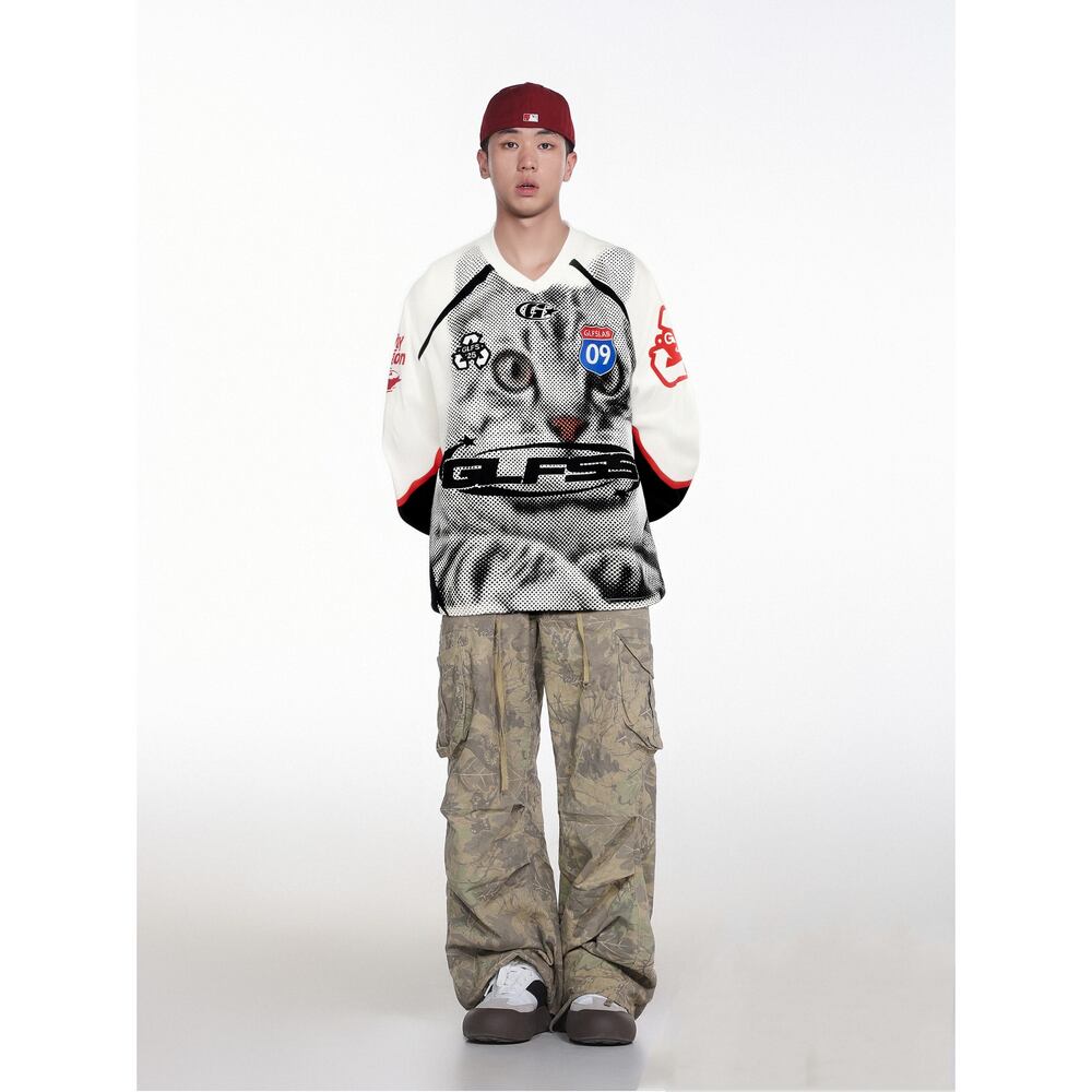 ストリート GLFSネコVネックメッシュ ロングTシャツ T1807