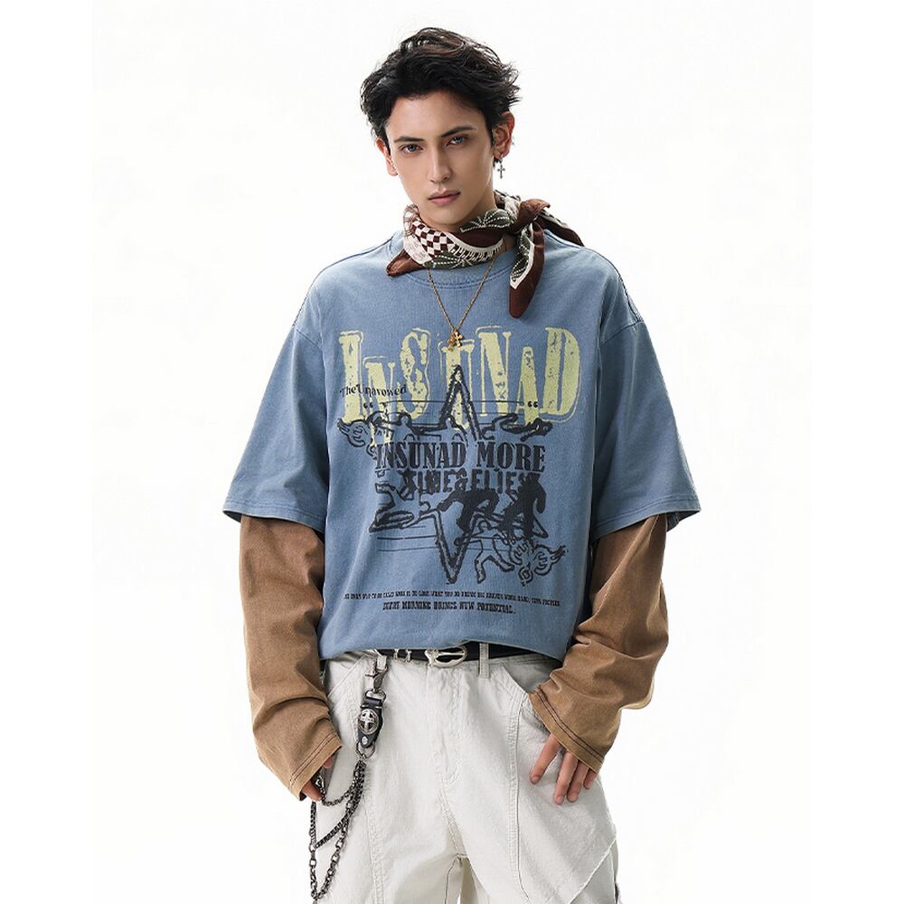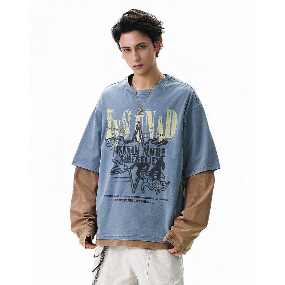 VINTAGE ストリート フェイクレイヤード ロングTシャツ T1835