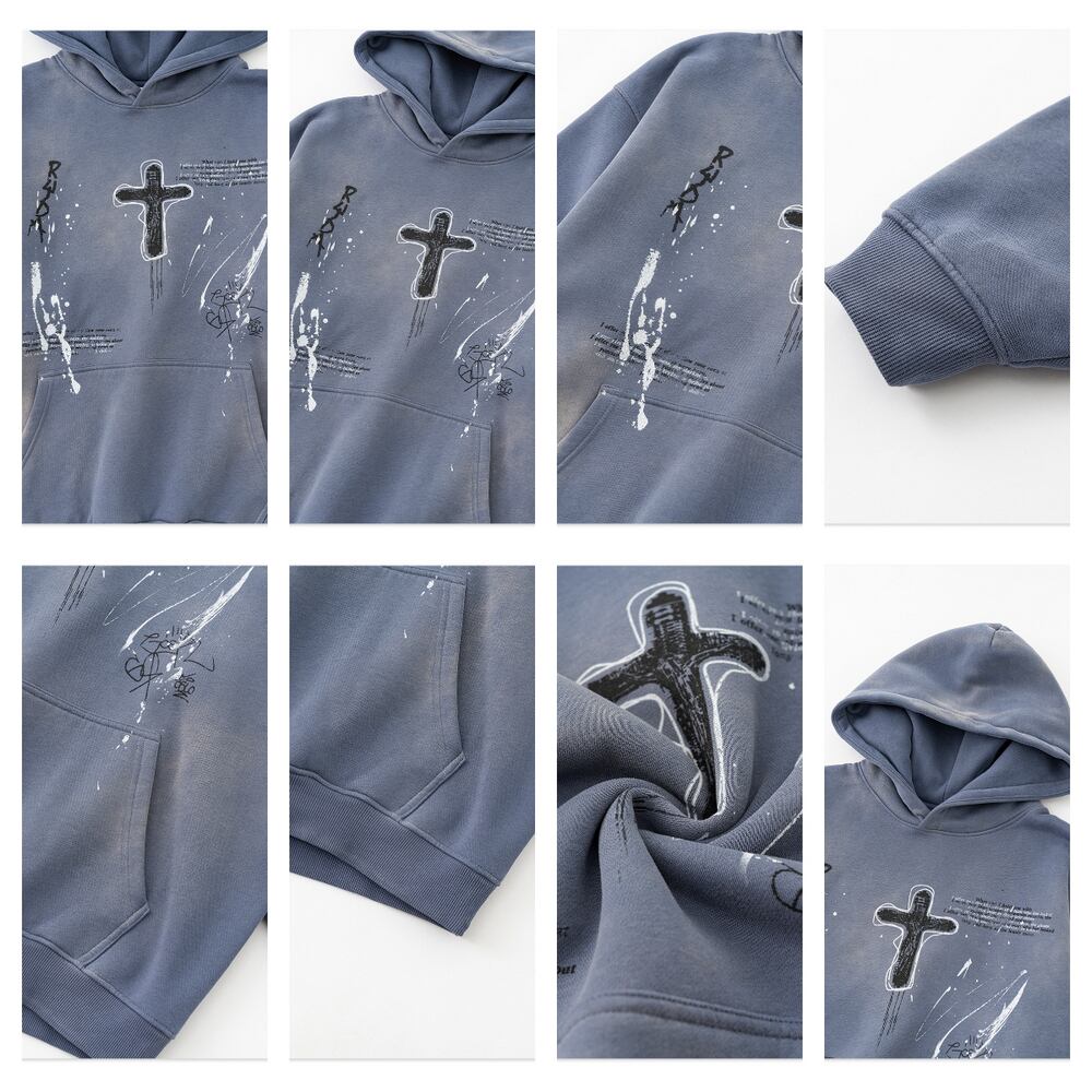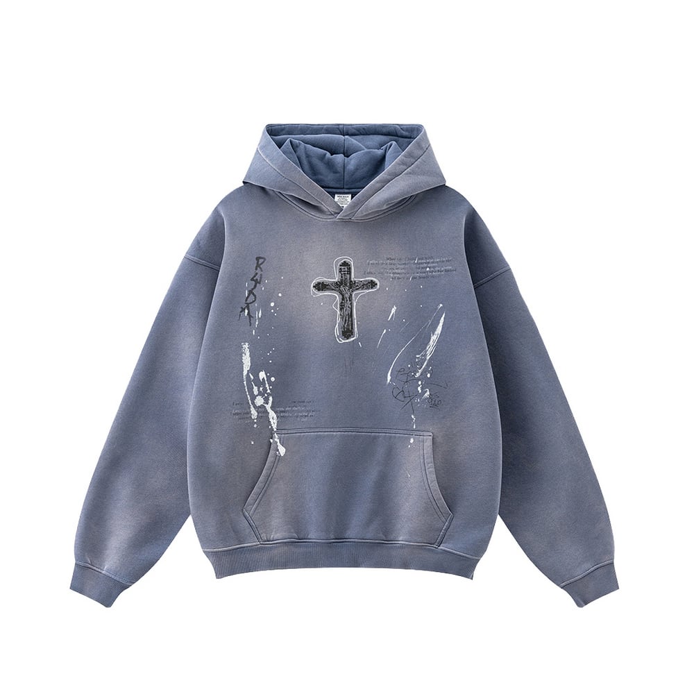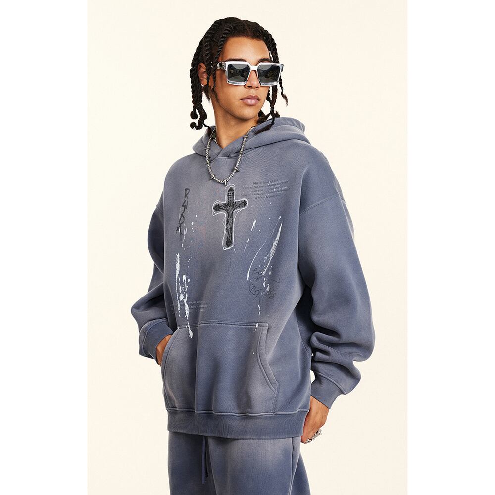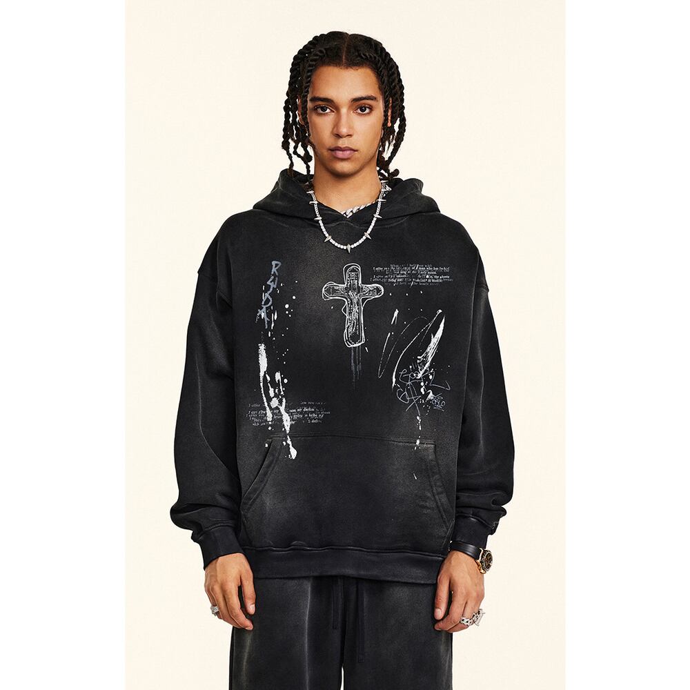 VINTAGE ストリート 裏起毛 クロスプリント パーカー T1861