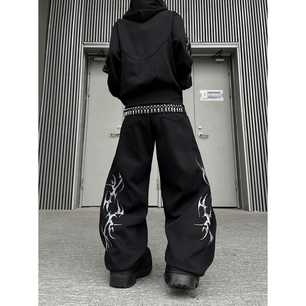 ストリート 棘プリント セットアップ パンツ P344