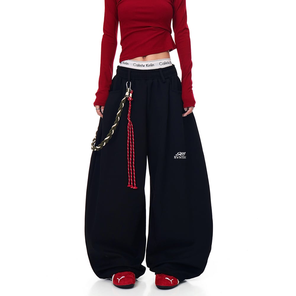 裾は束脚デザインで、ウエストは松緊仕様+調整可能なドローコード付き。