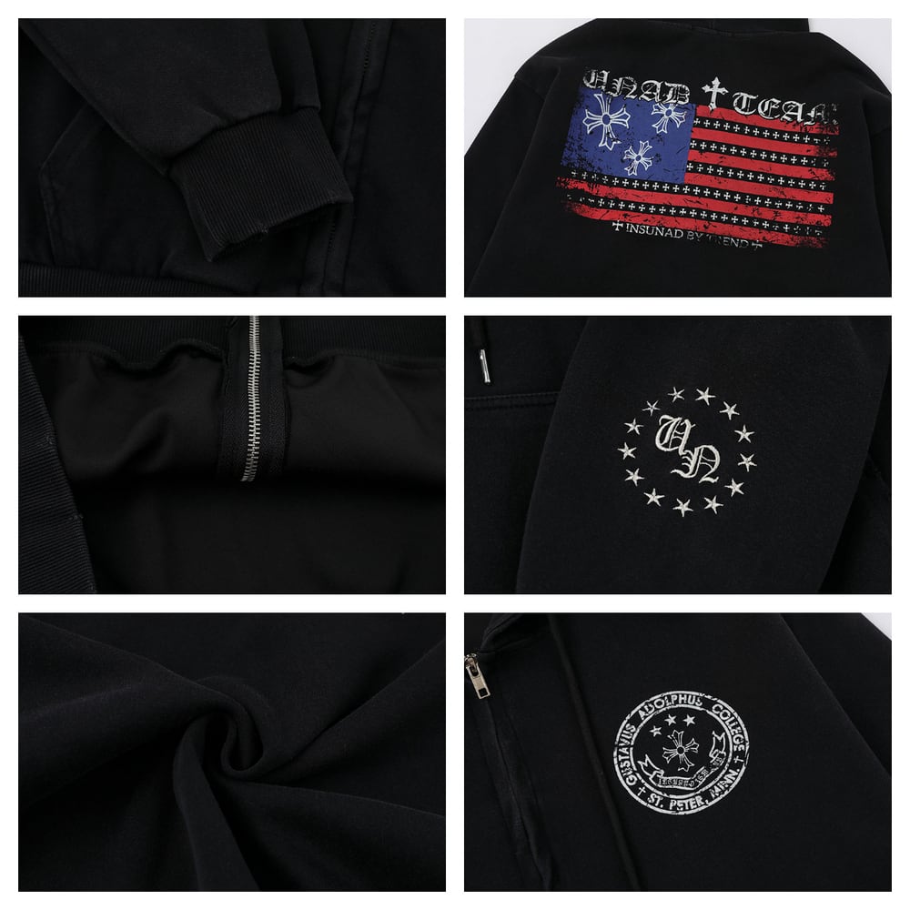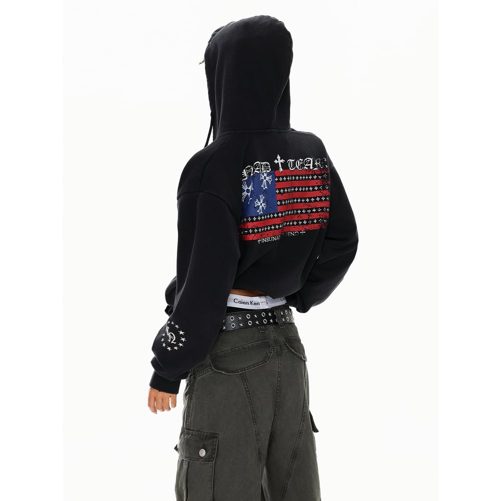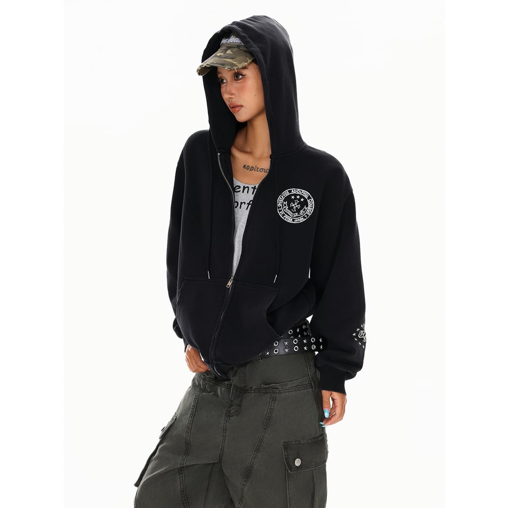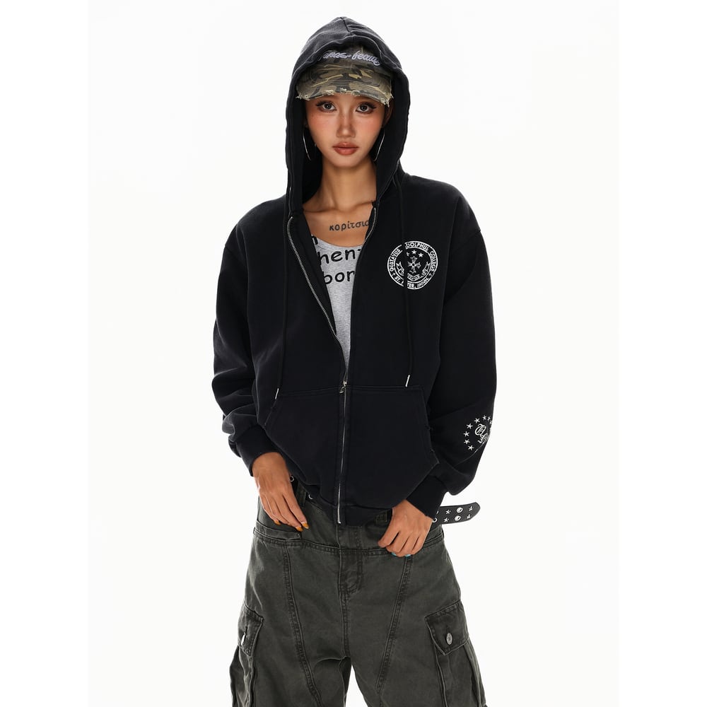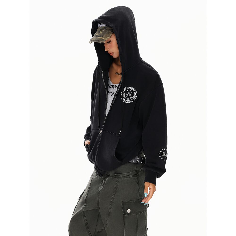 VINTAGE ストリート 国旗プリント ジップパーカー T1884