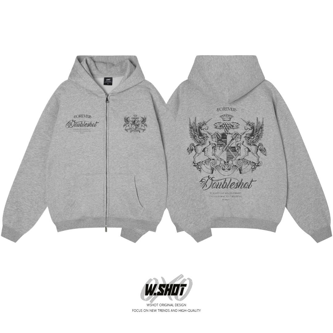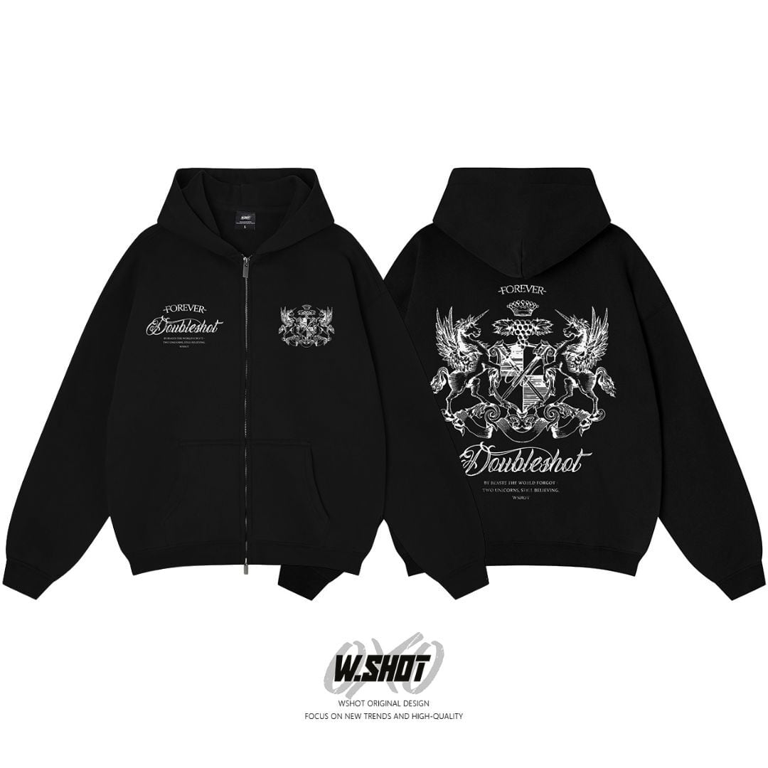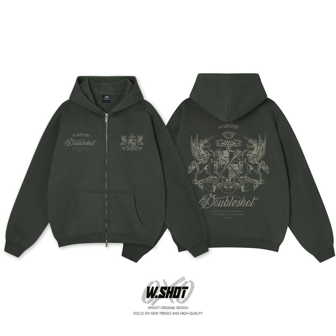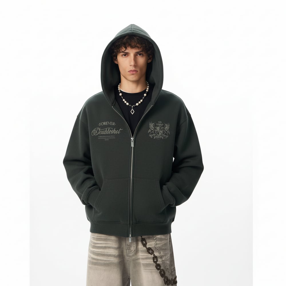 肩落ちデザイン、裏起毛ダブルジップパーカー