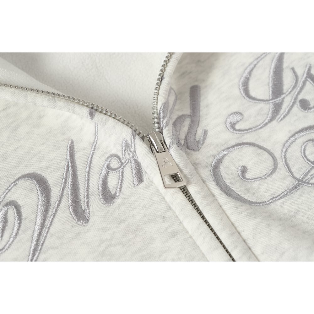 ストリート 裏起毛刺繍ファージップパーカー T1908
