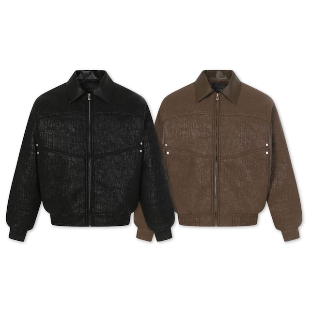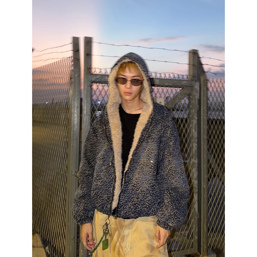 【暖かさUP】青いヒョウ柄 中綿ジャケット T1931