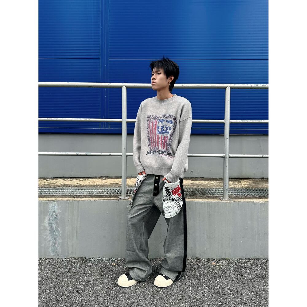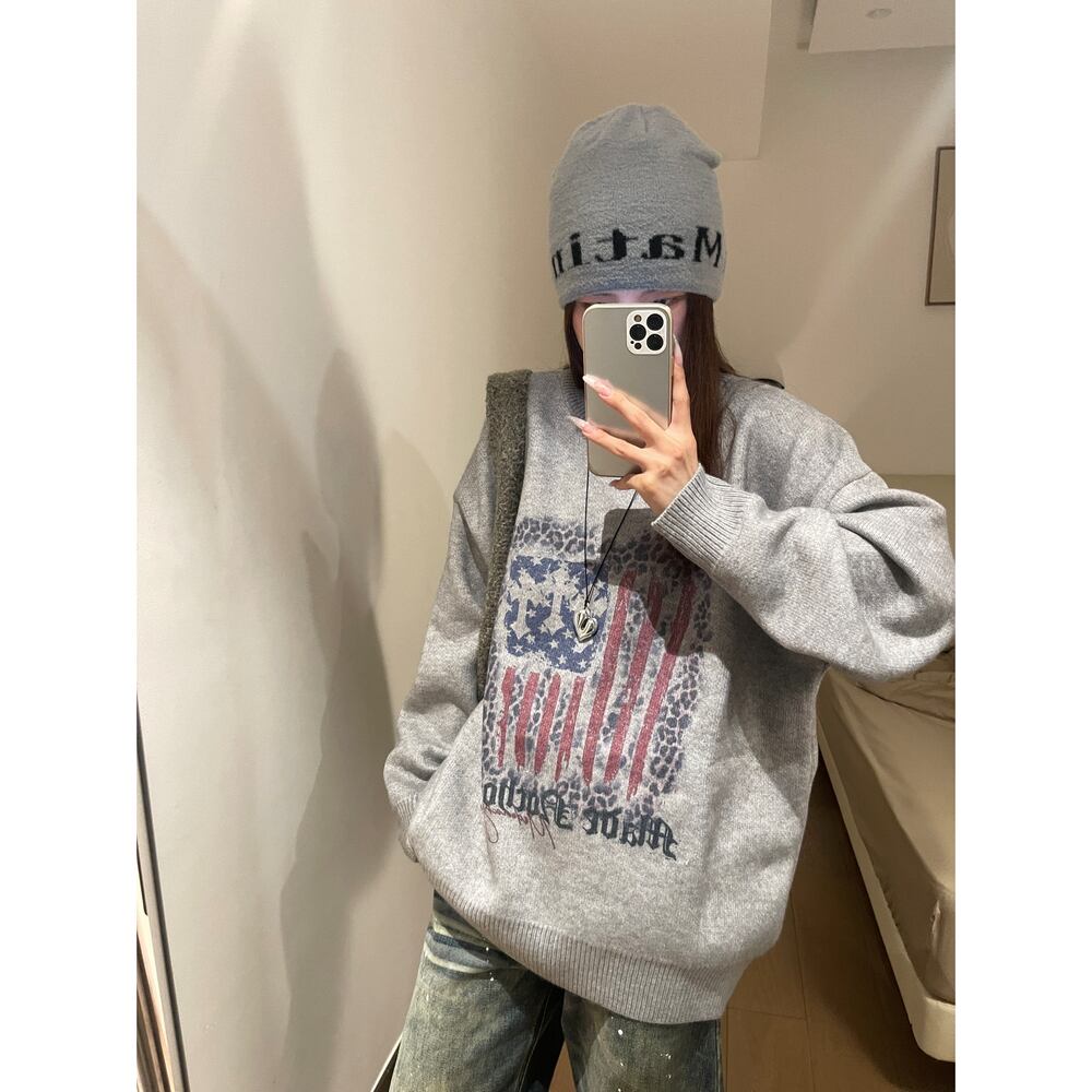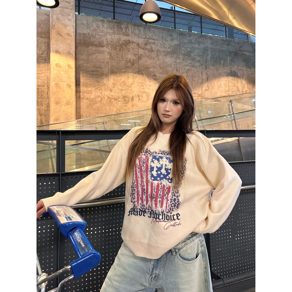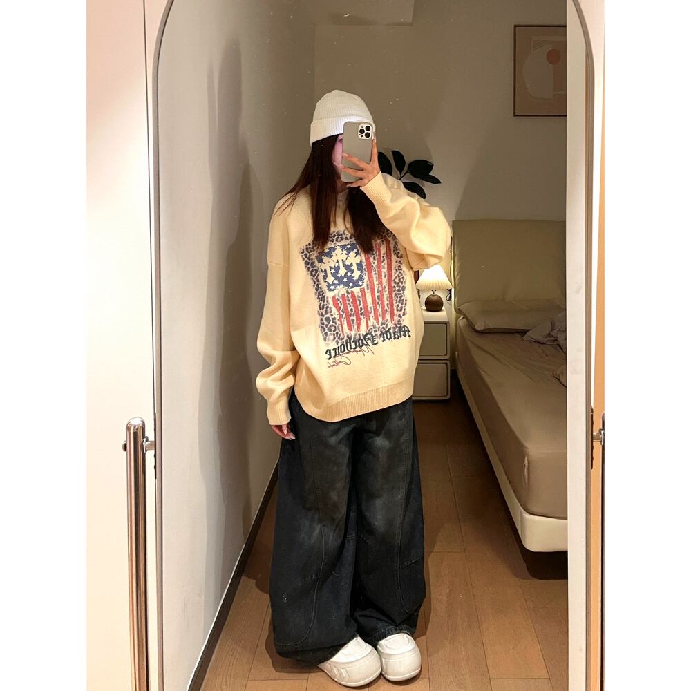 ストリート ヒョウ柄の旗 セーター T1945