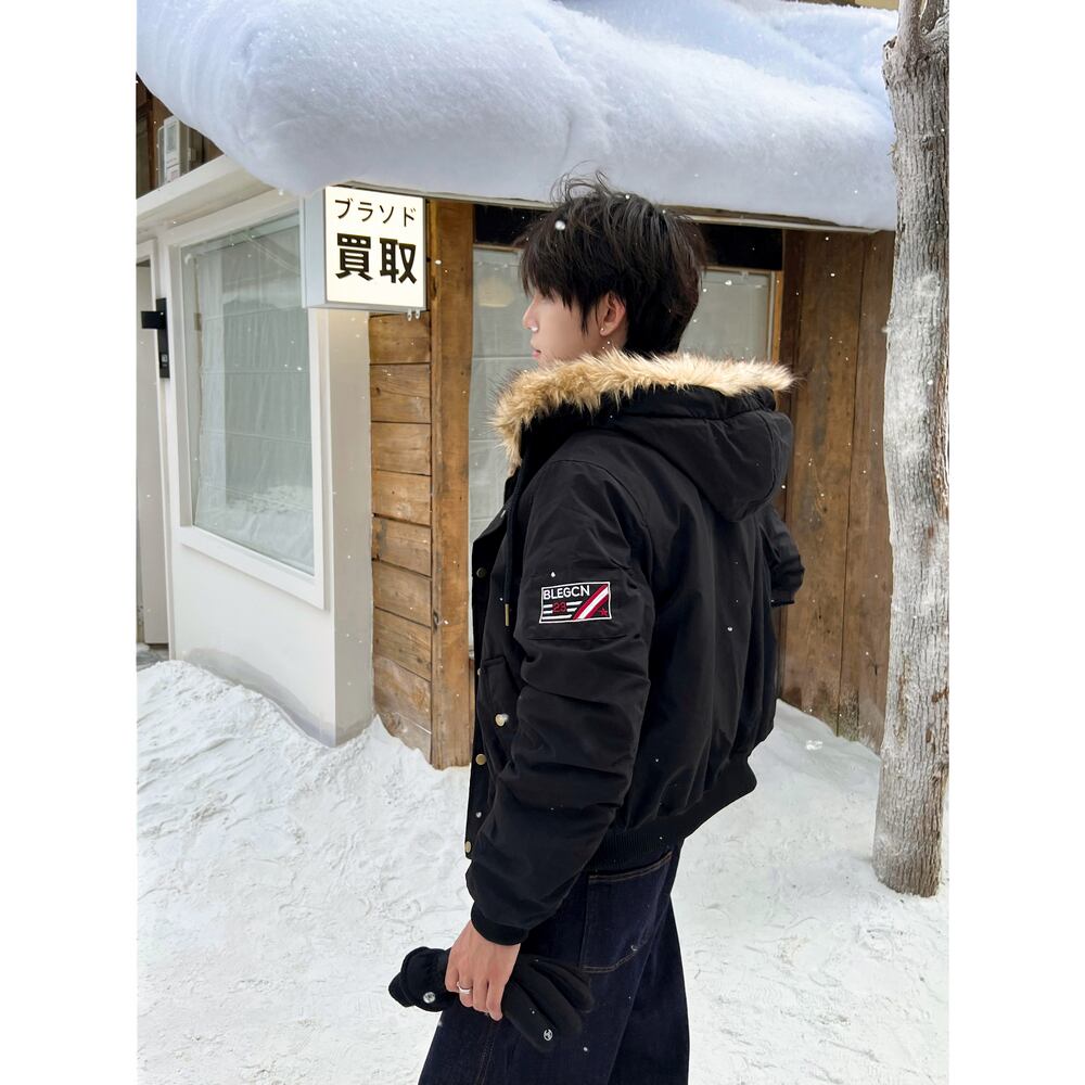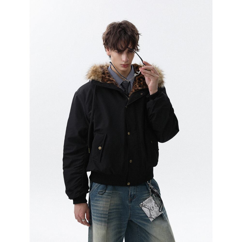 【暖かさUP】ヒョウ柄ファー中綿ジャケット T1946