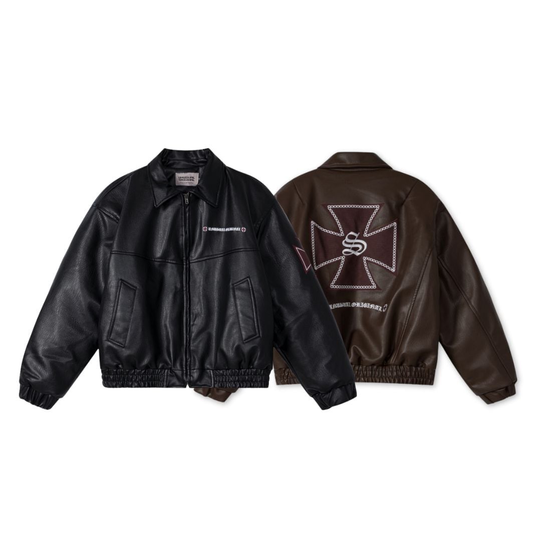 【暖かさUP】PUレザークロス 中綿ジャケット T1961