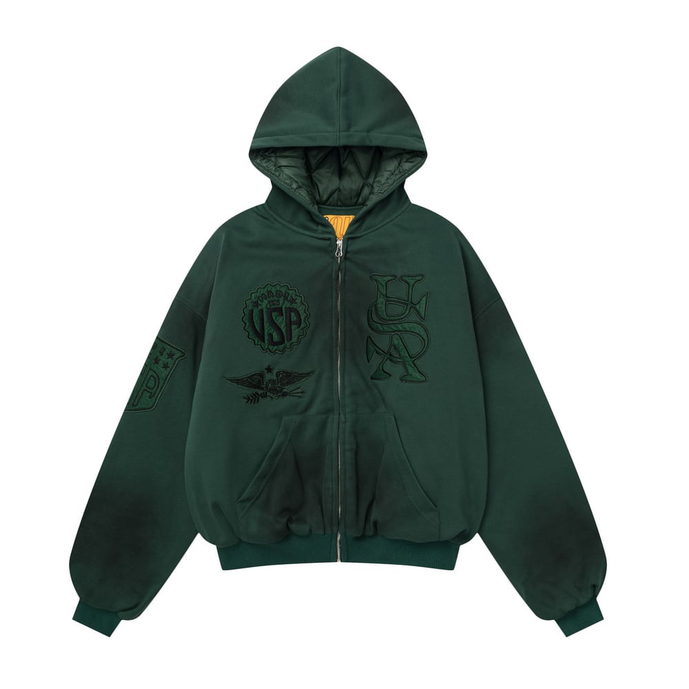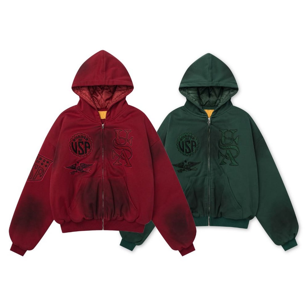 【暖かさUP】USA刺繍ジップパーカー中綿ジャケット T1962