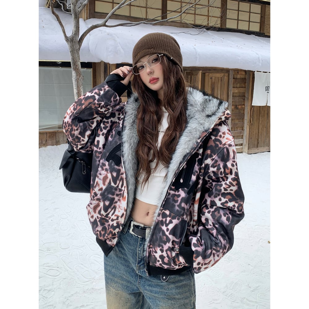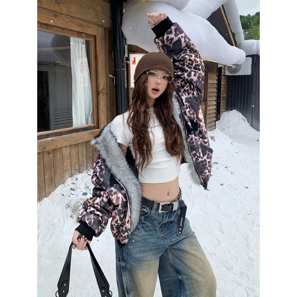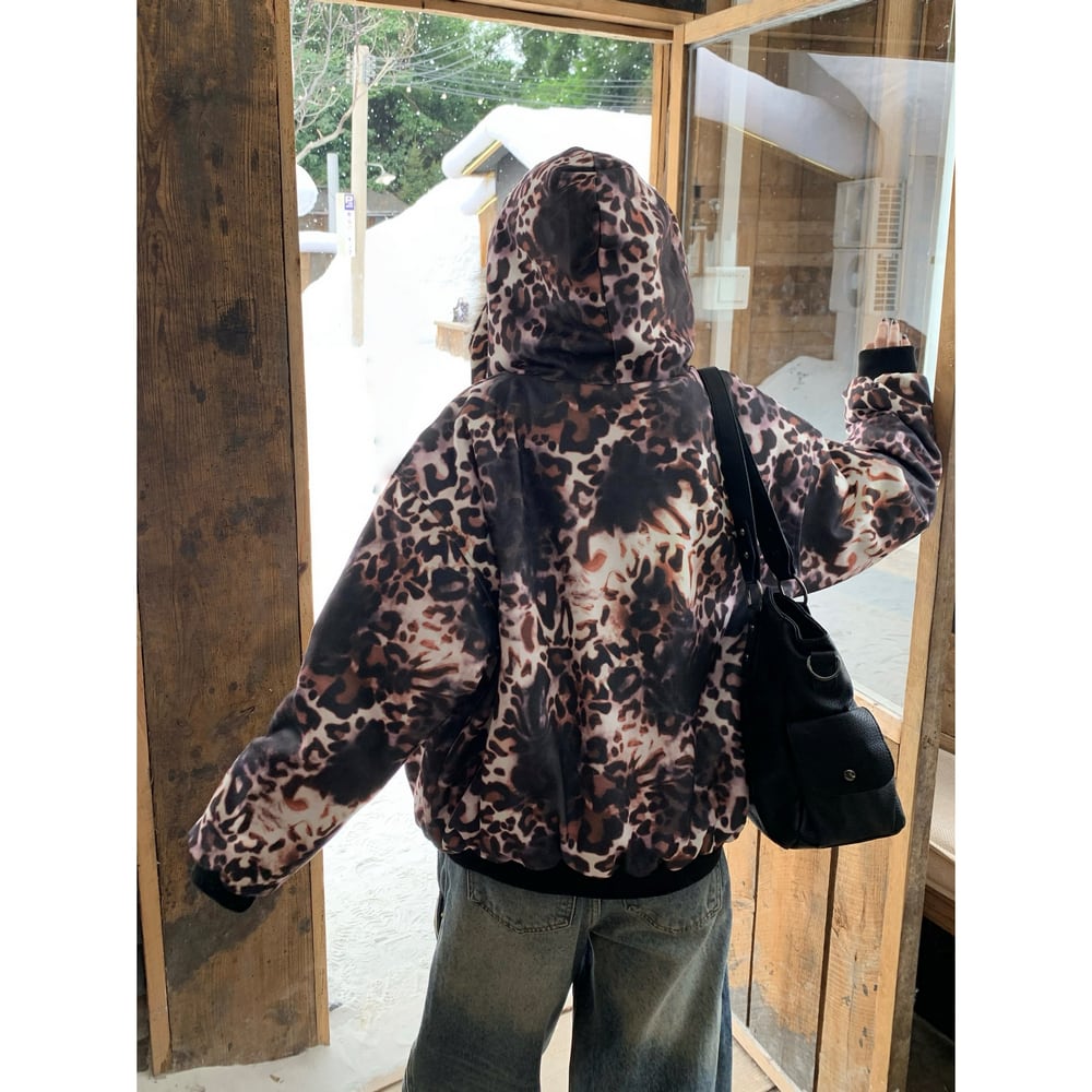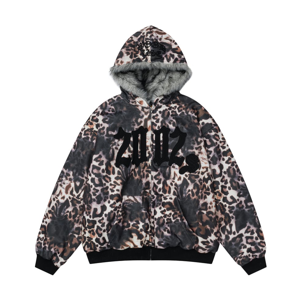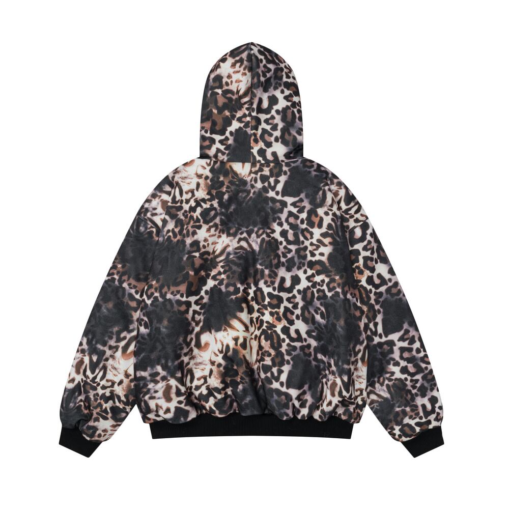 【暖かさUP】ヒョウ柄ファー中綿ジャケット T1963