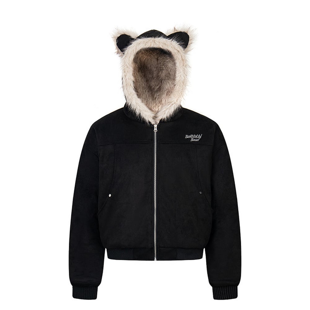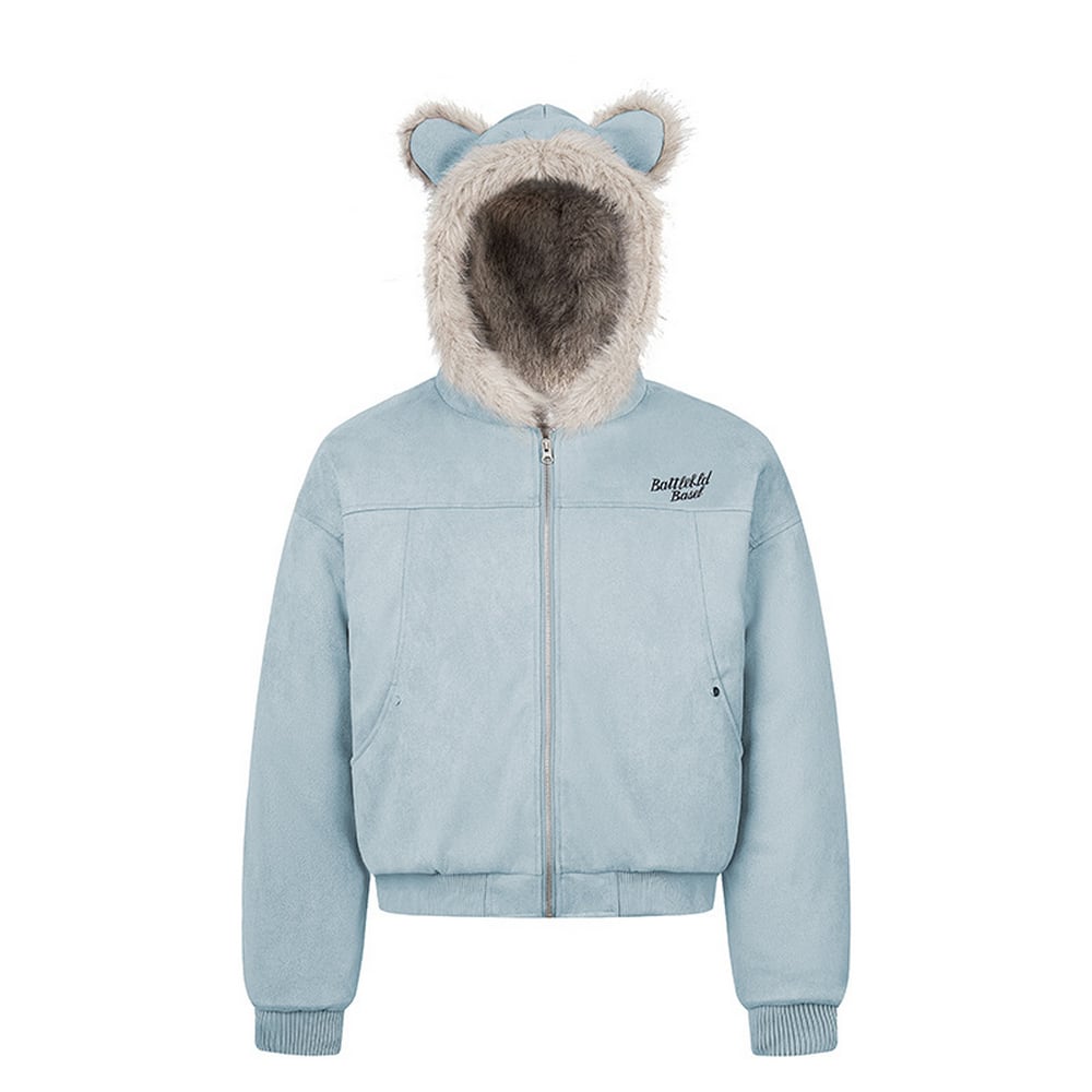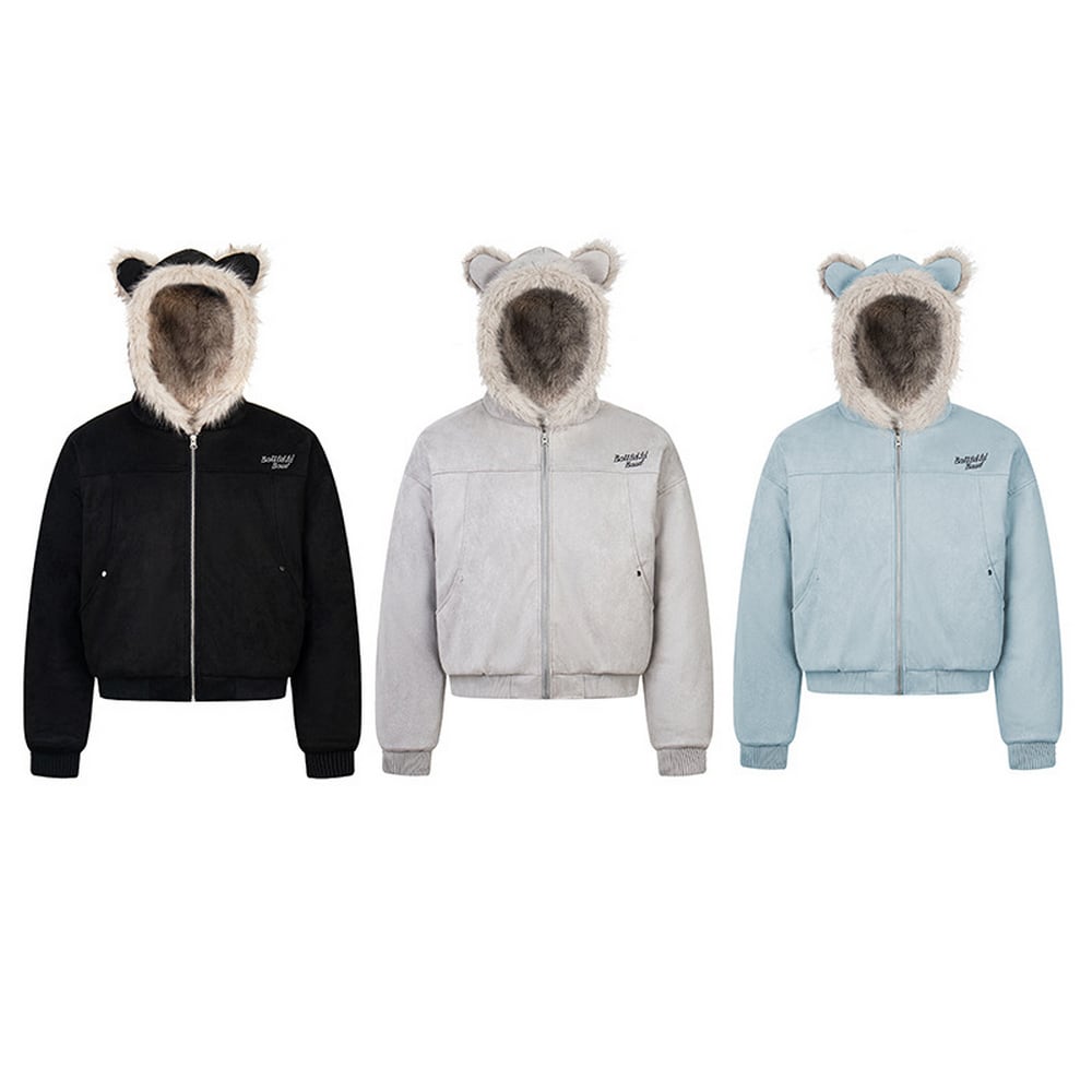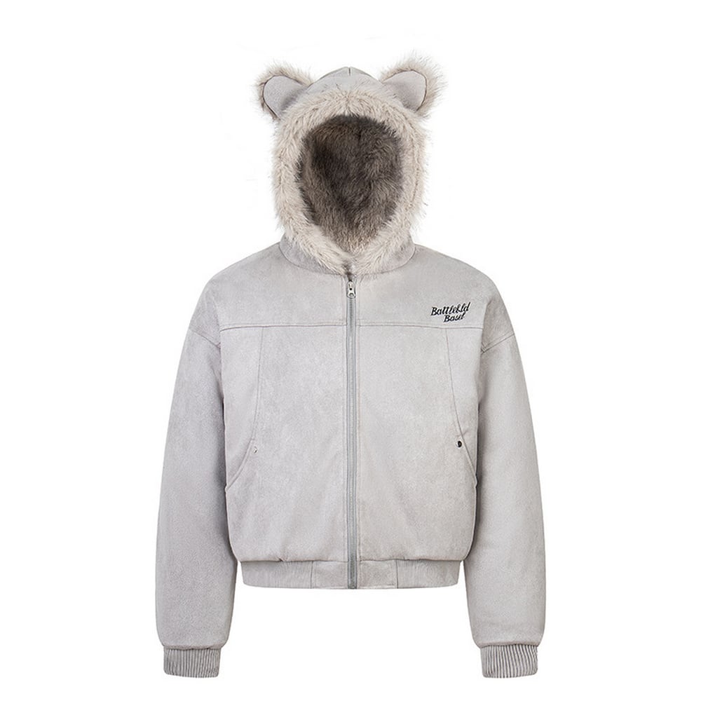 【暖かさUP】ストリート 熊耳ファー中綿ジャケット T1971