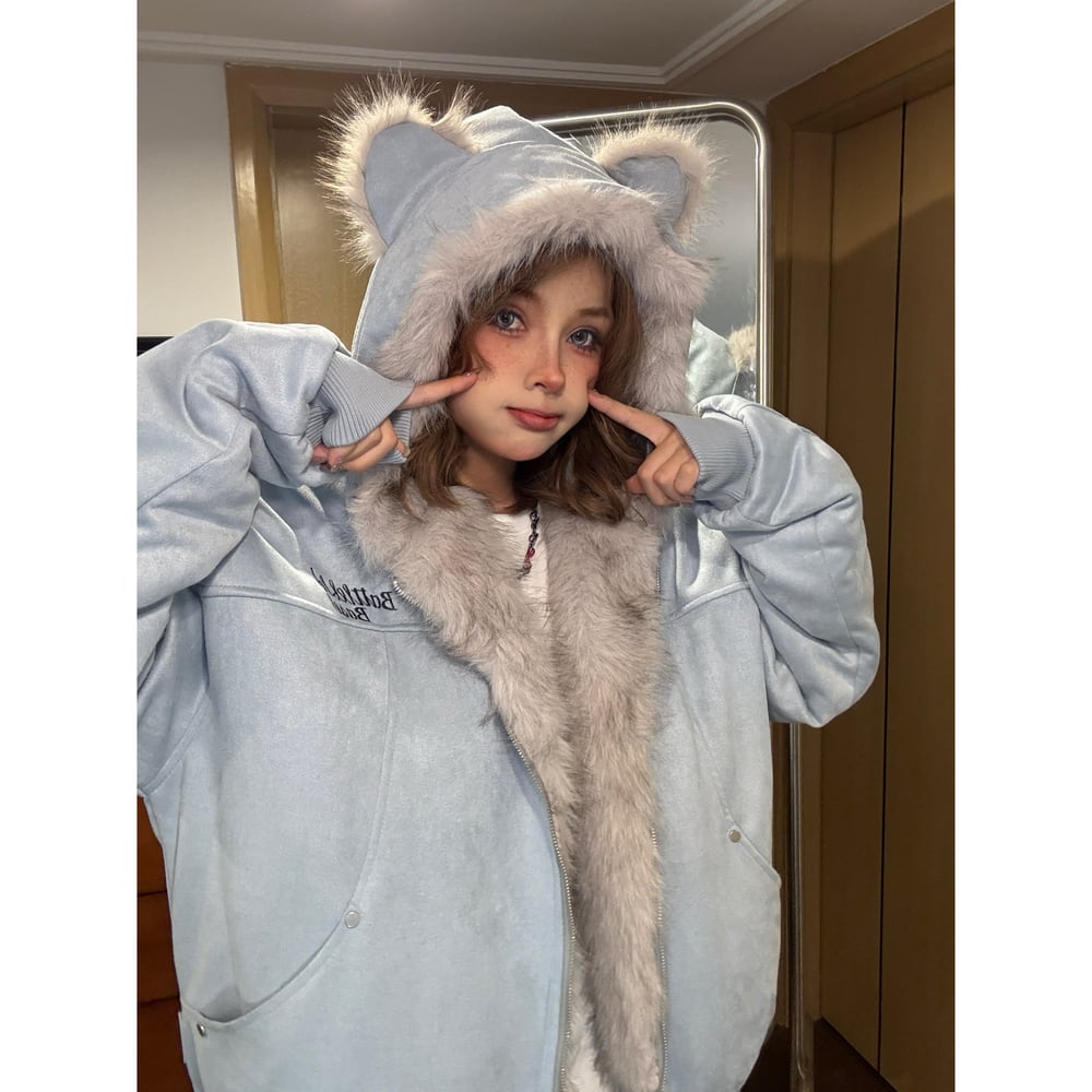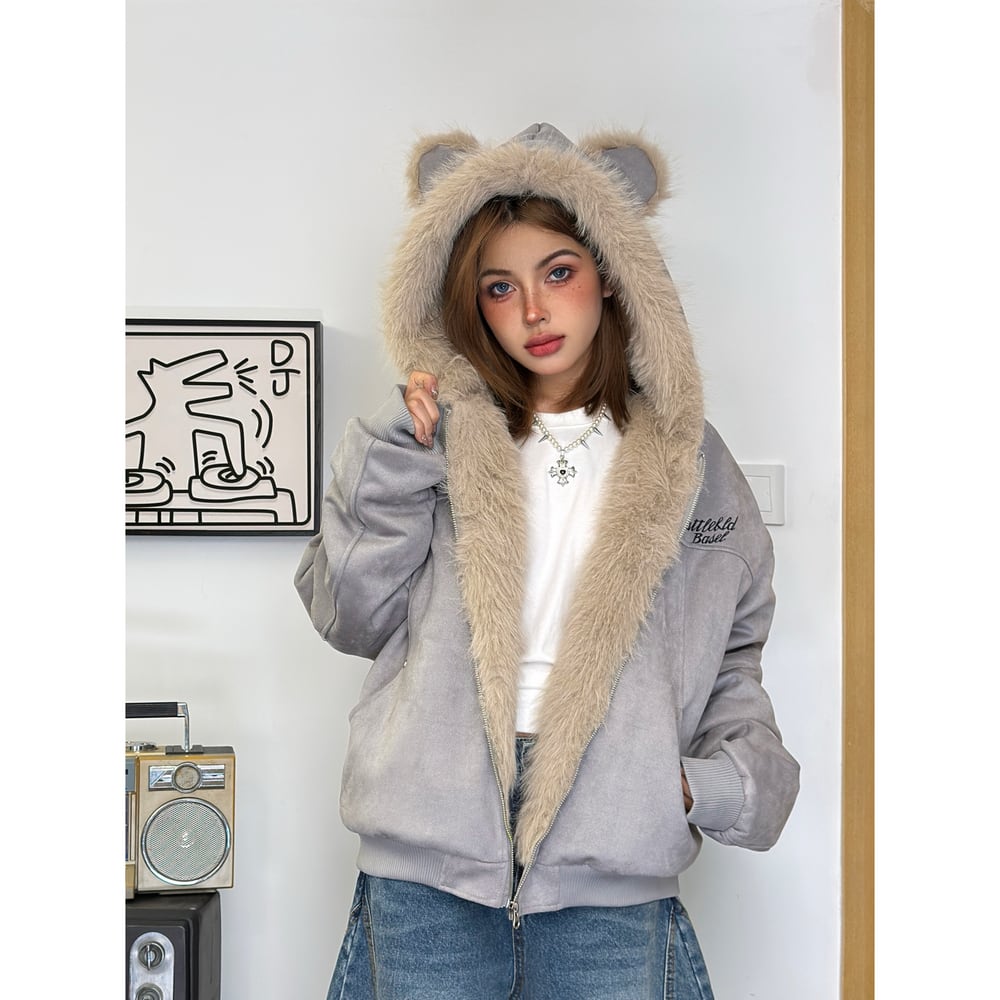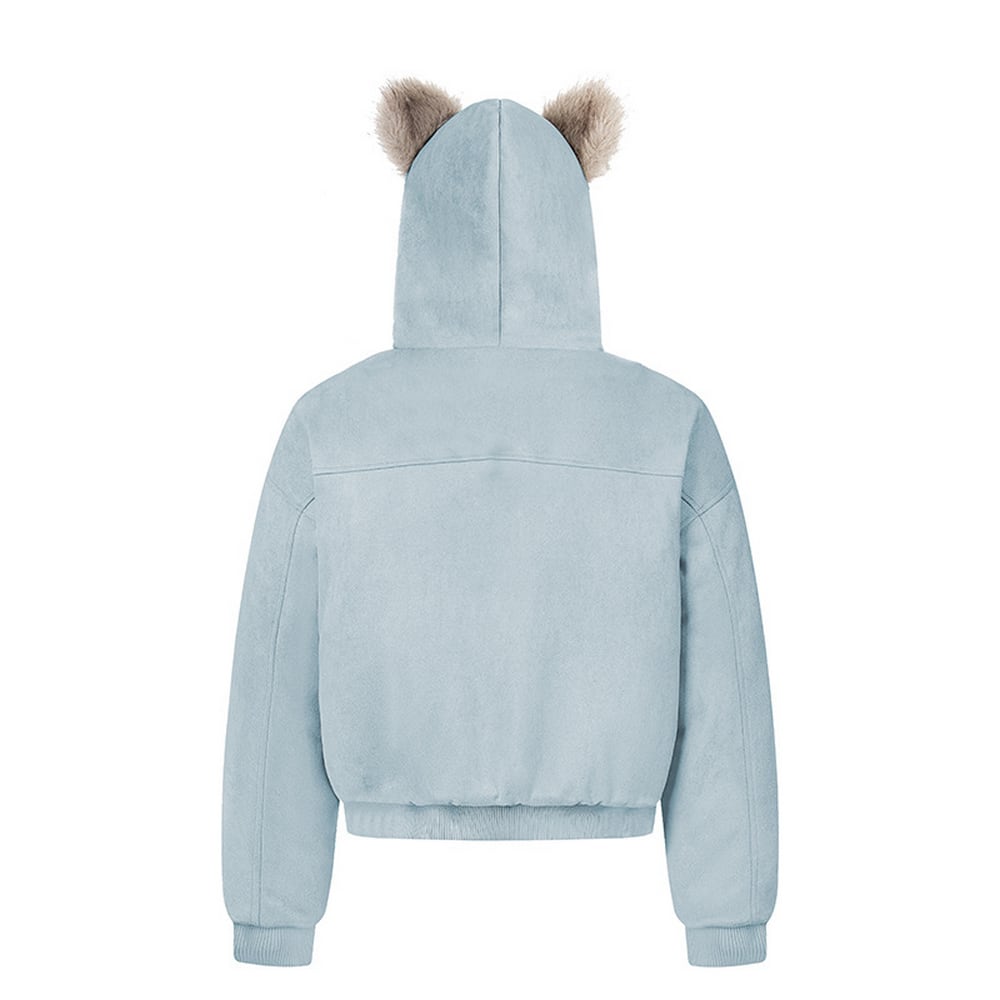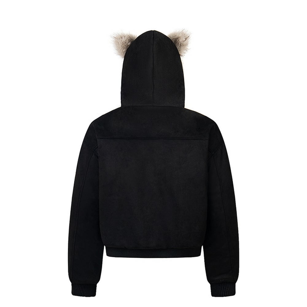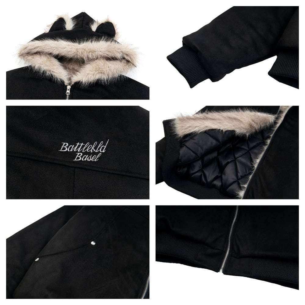 【暖かさUP】ストリート 熊耳ファー中綿ジャケット T1971
