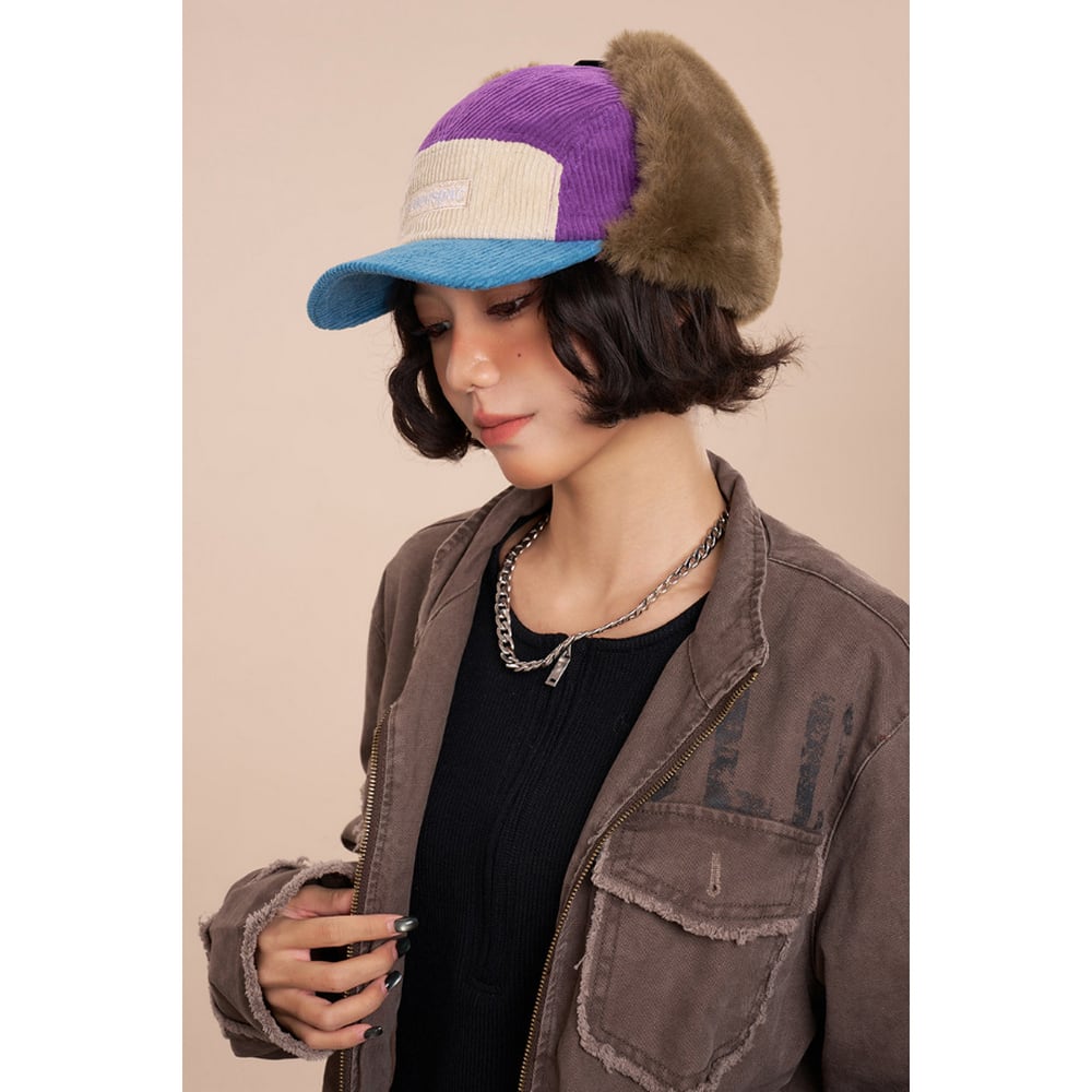 2色コーデュロイ防風イヤー キャップ G193