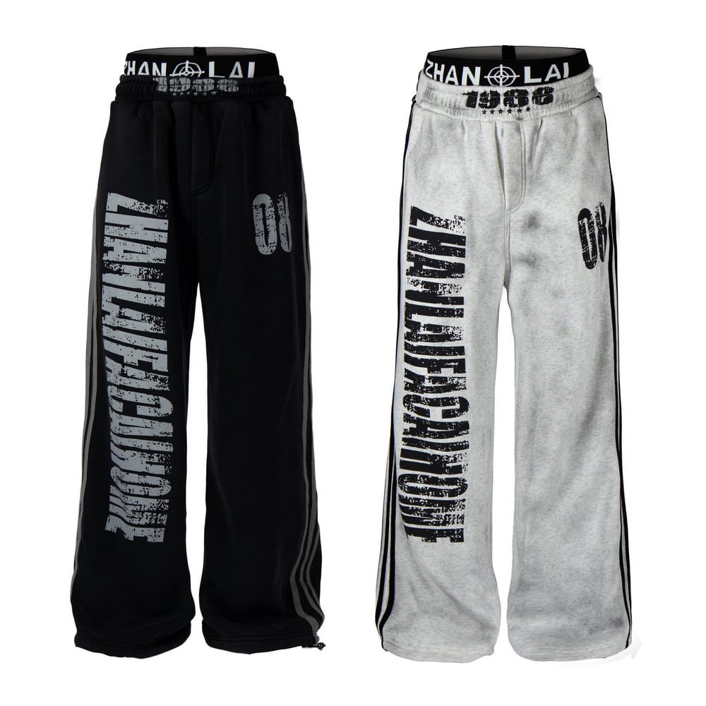 ストリート 裏起毛1986フェイクレイヤード スウェットパンツ P371