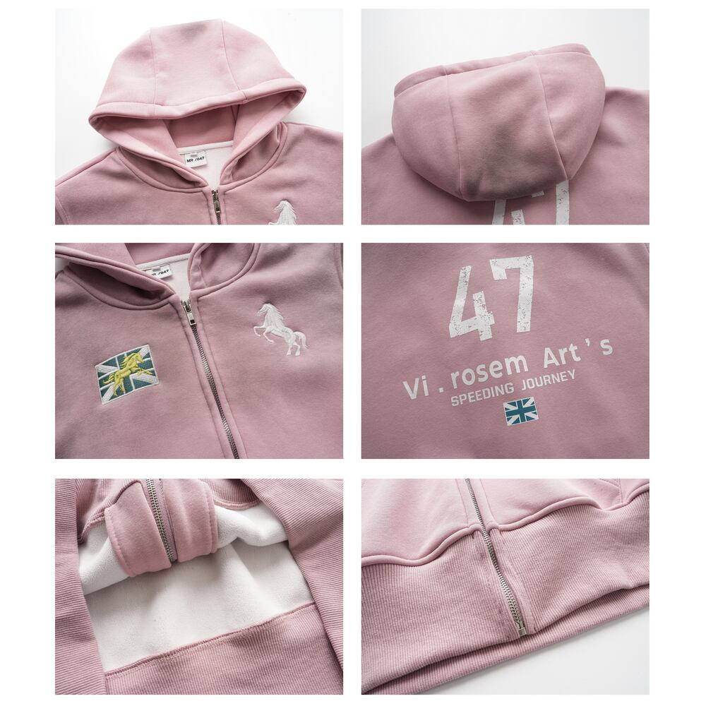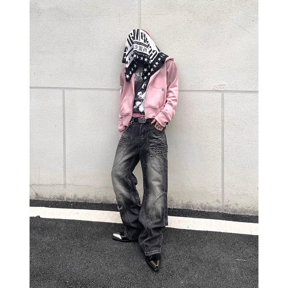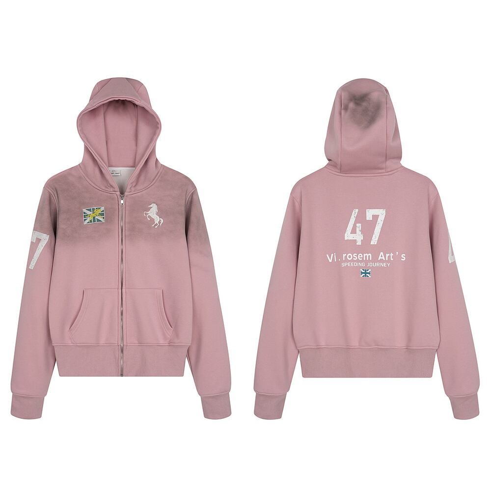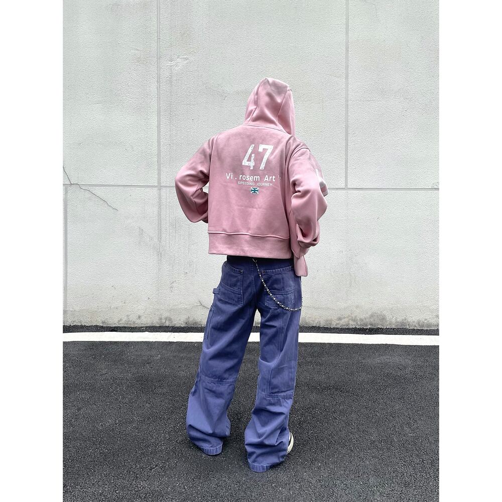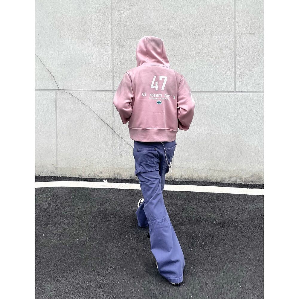 VINTAGE ストリート 裏起毛 汚れ加工ピンクジップパーカー T1991
