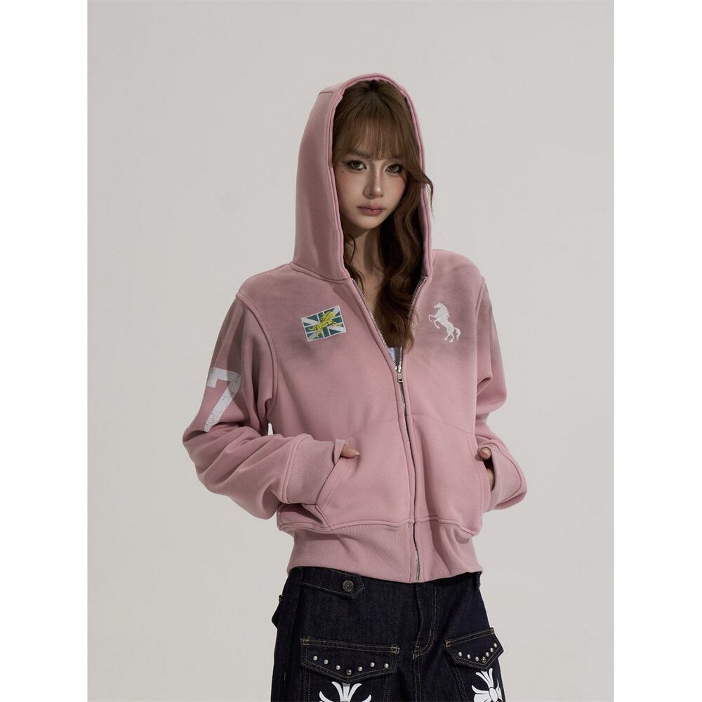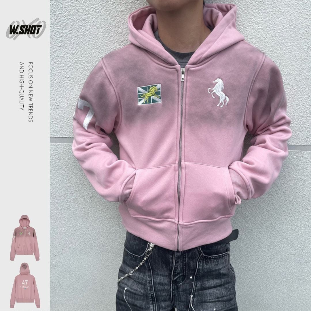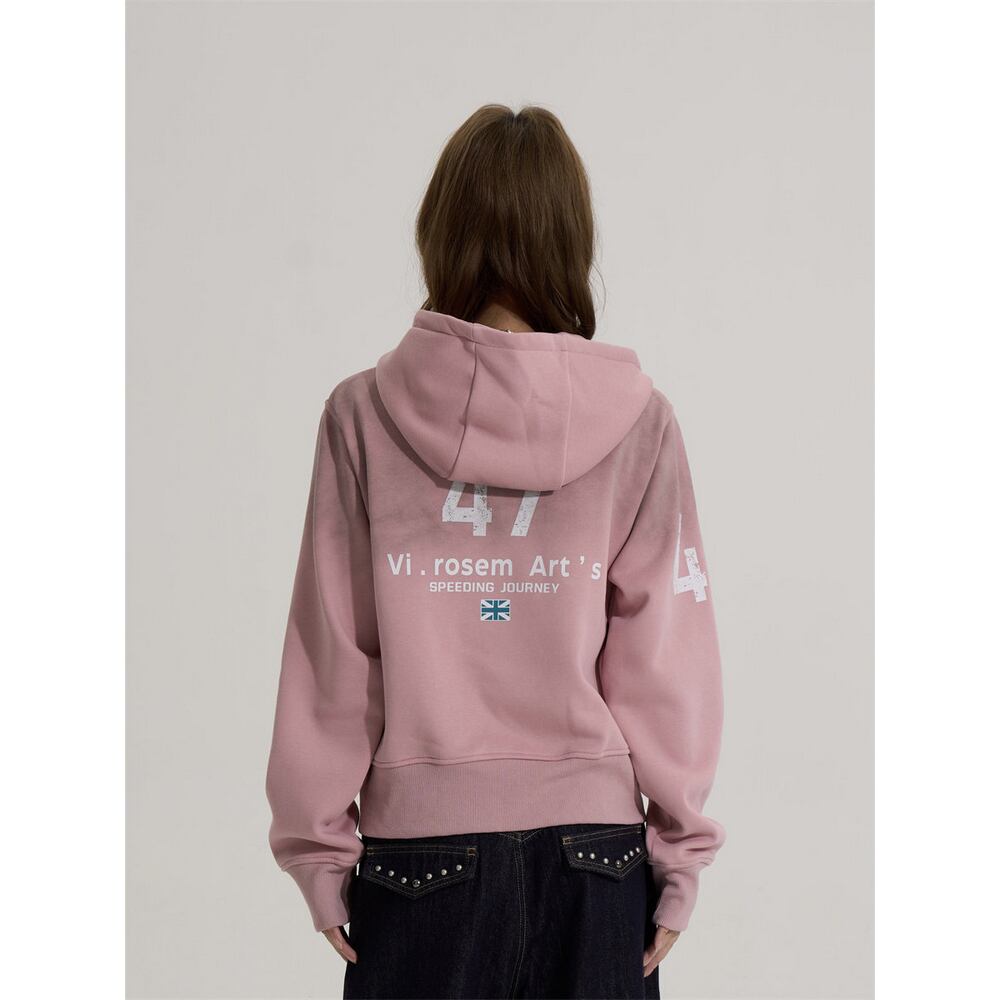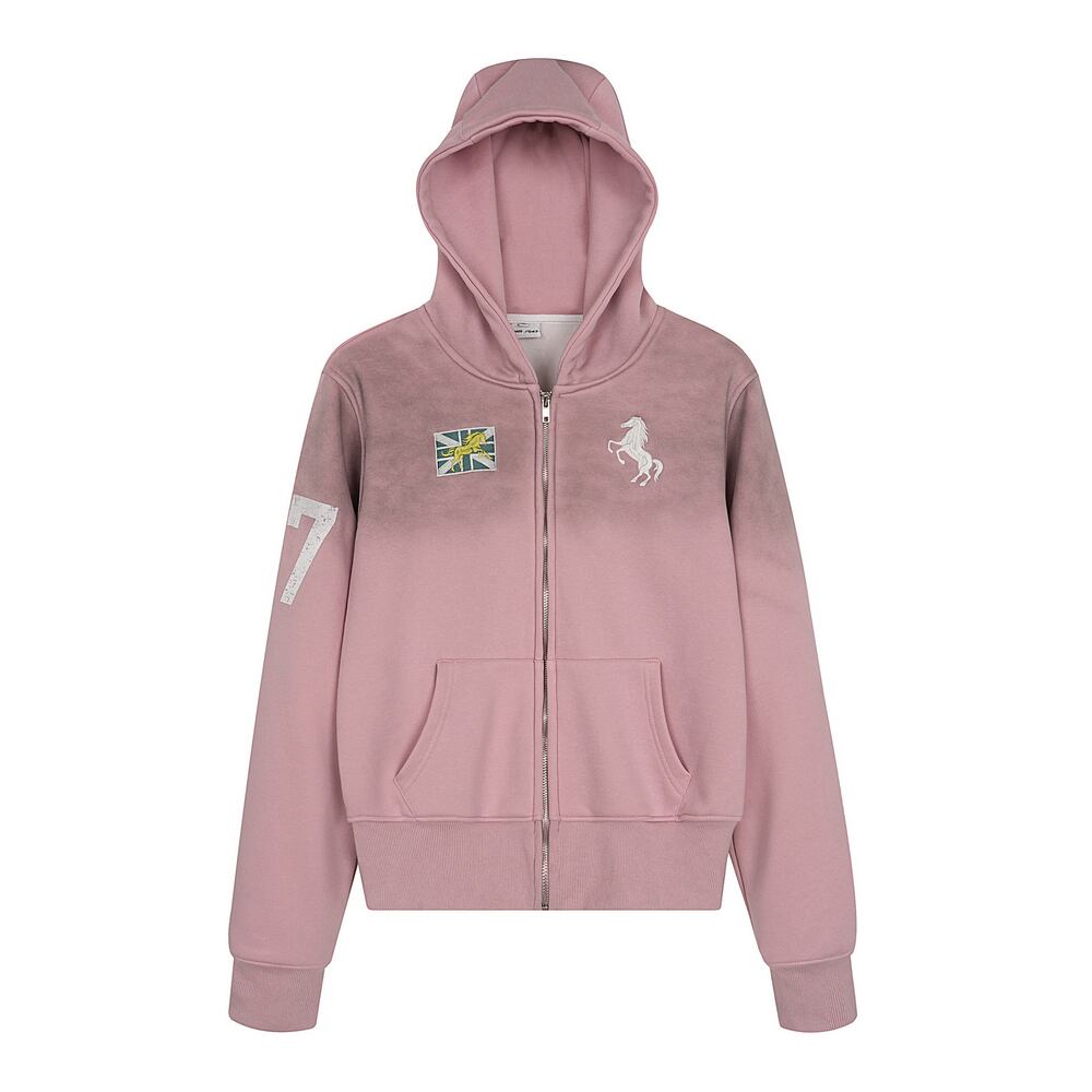 VINTAGE ストリート 裏起毛 汚れ加工ピンクジップパーカー T1991