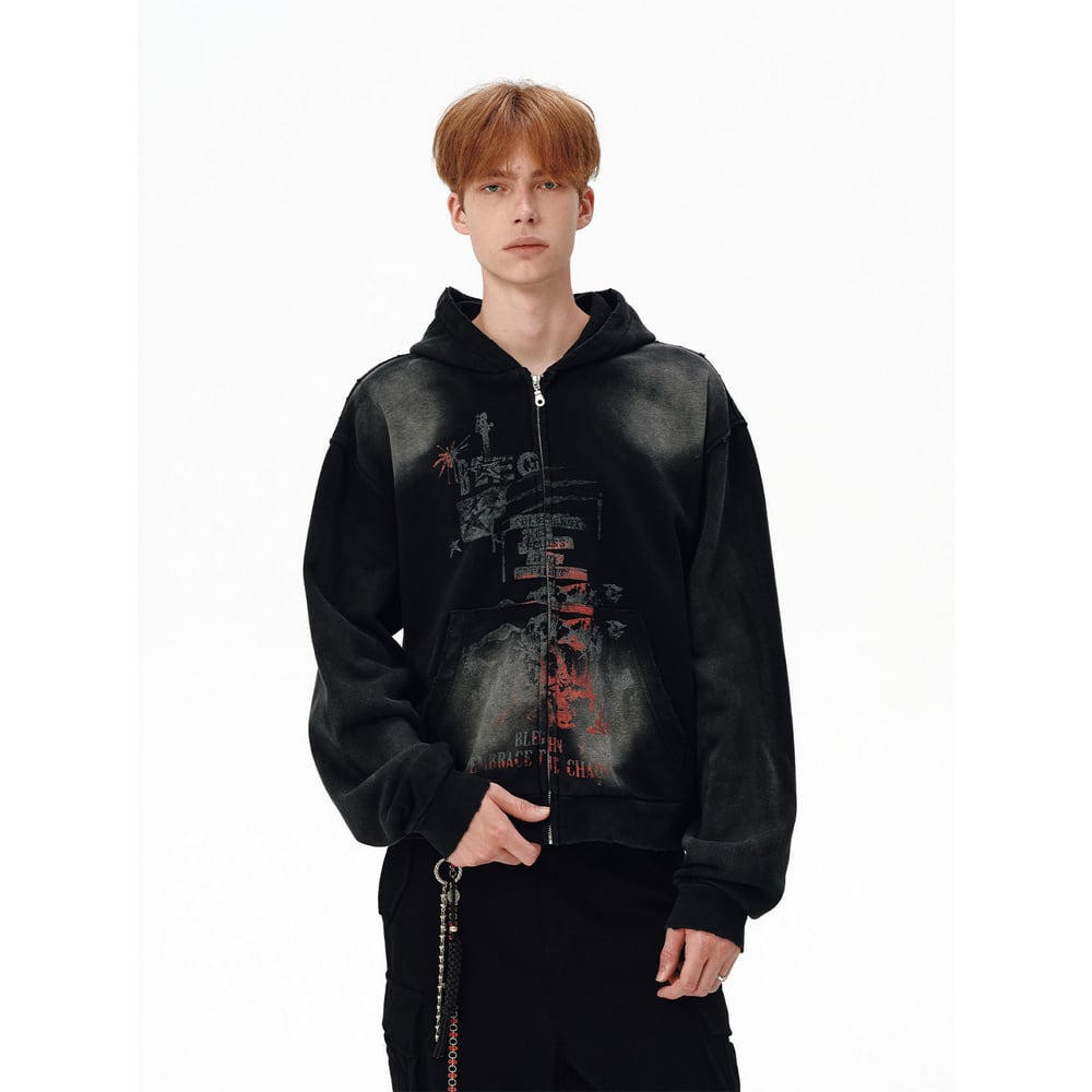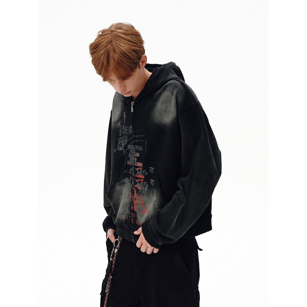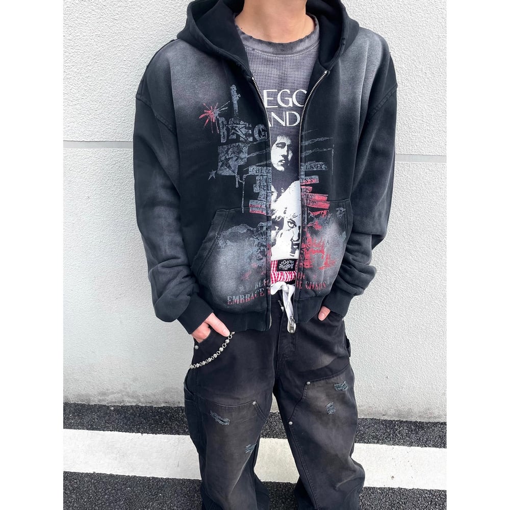 VINTAGE ストリート スプレー加工 ジップパーカー T1992