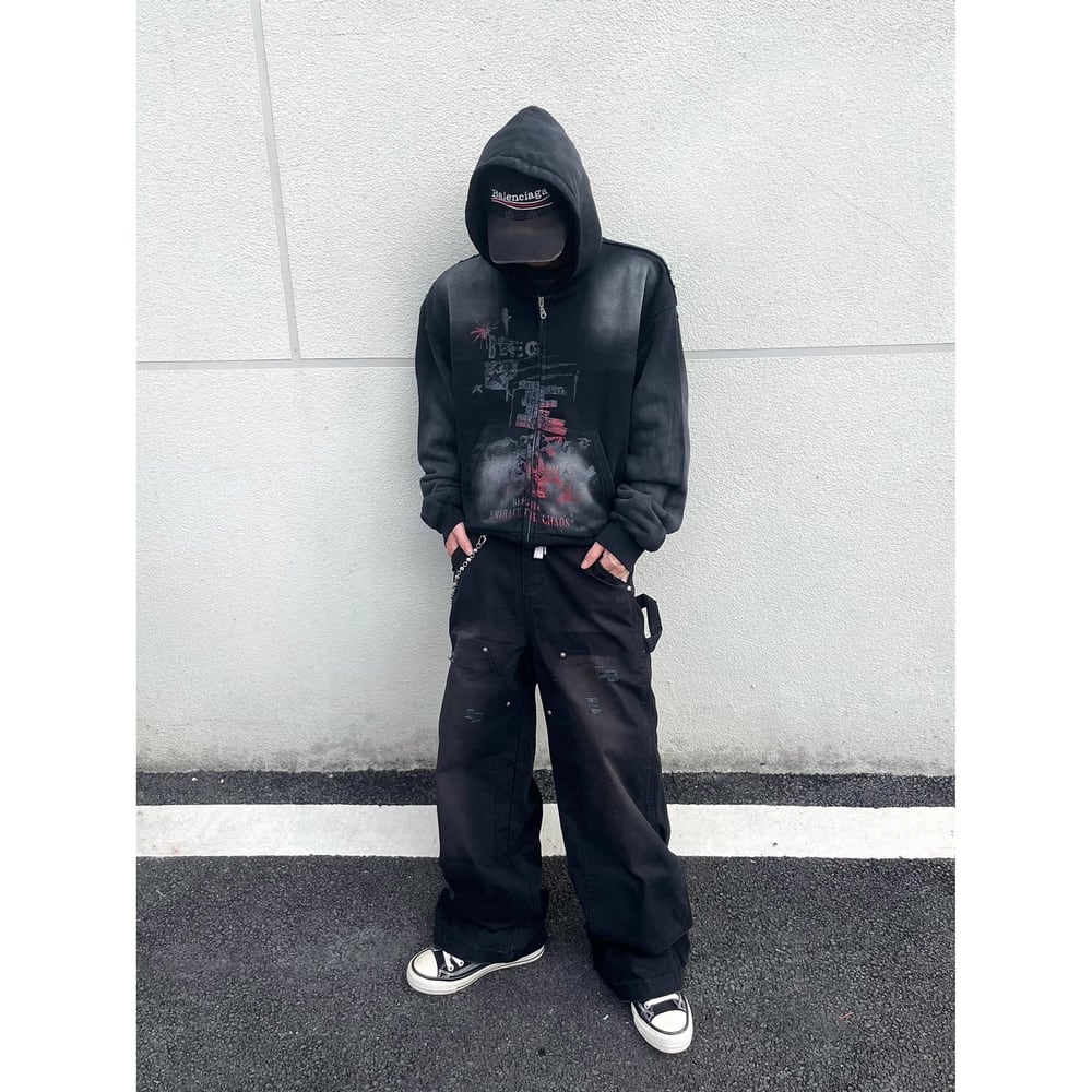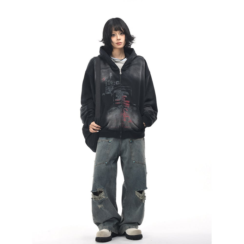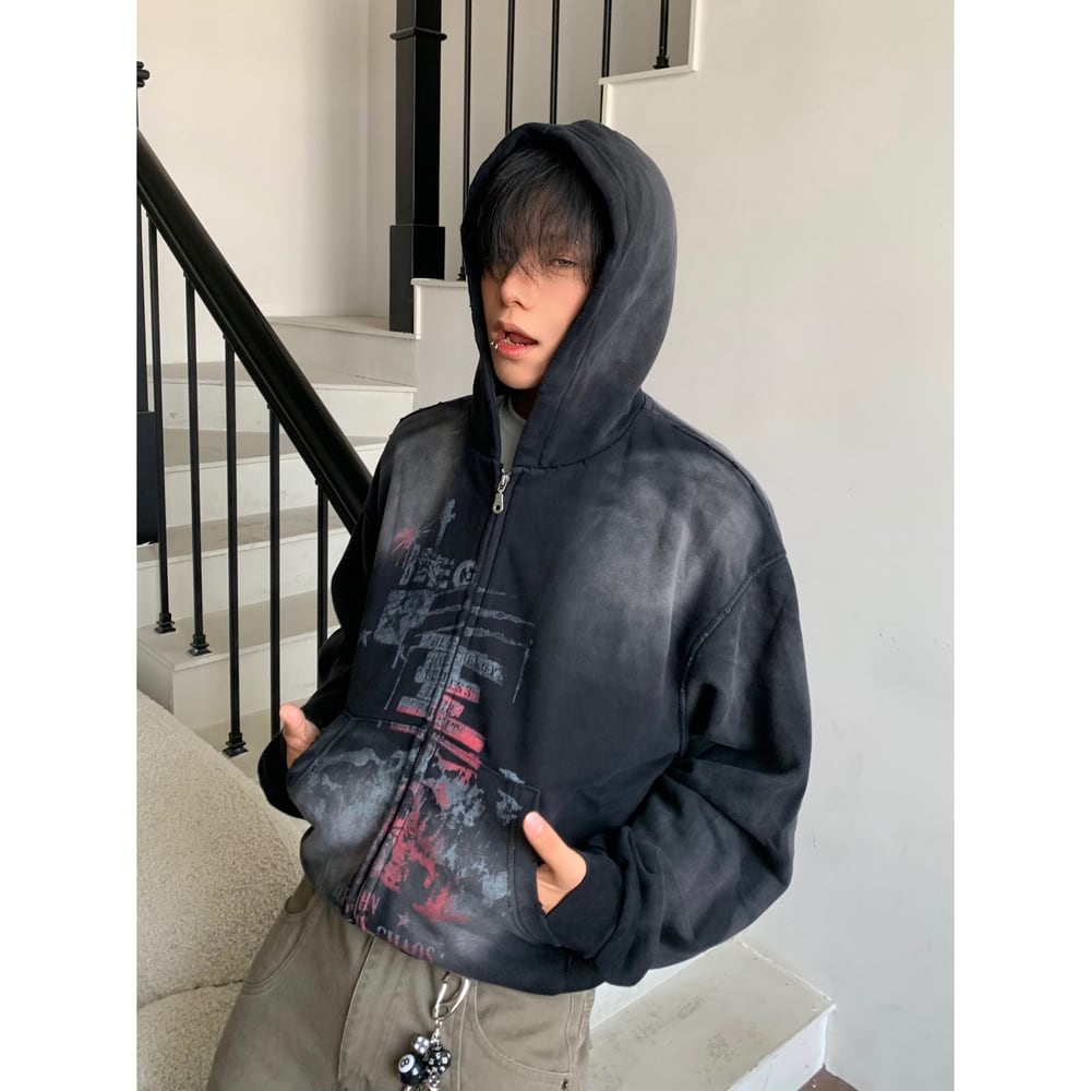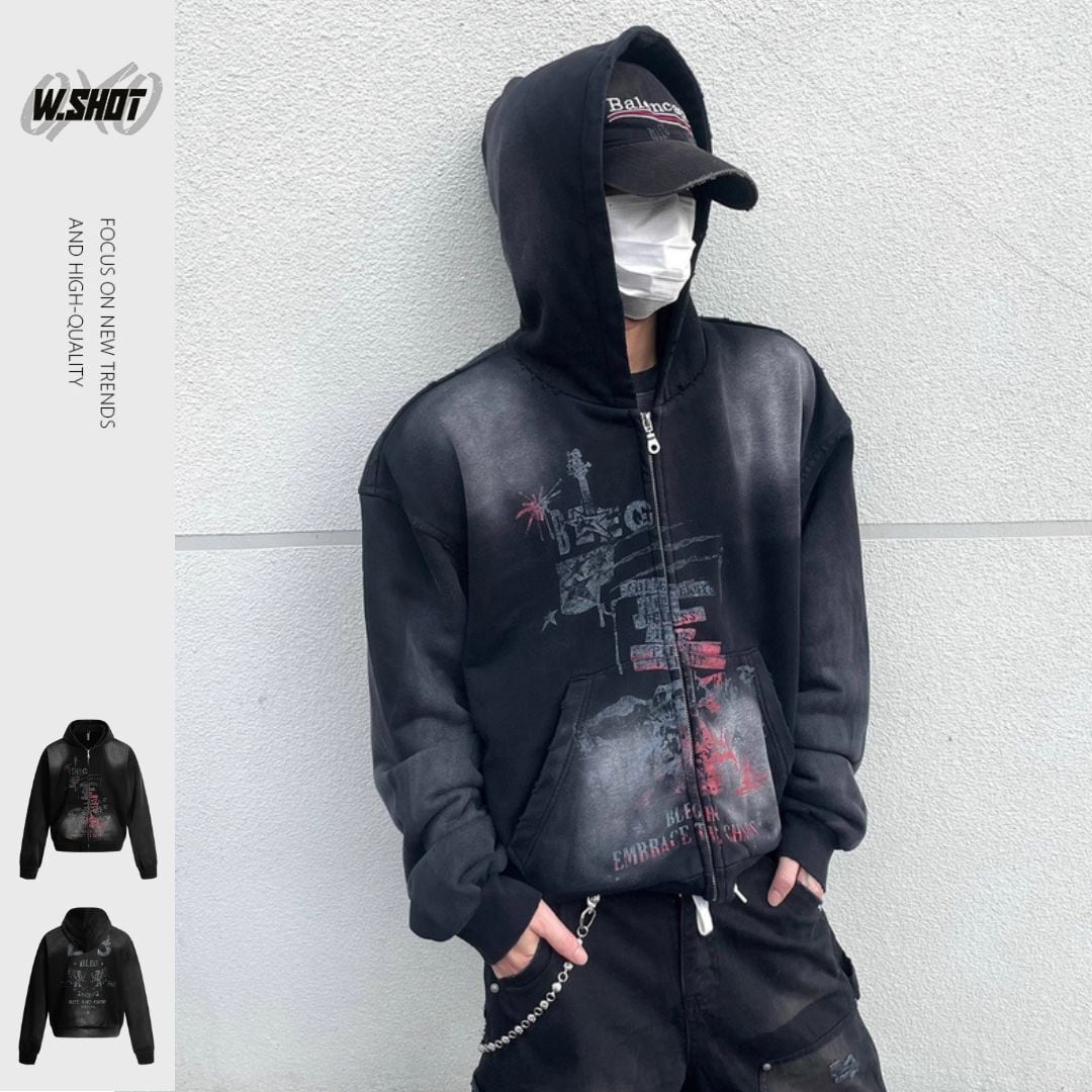VINTAGE ストリート スプレー加工 ジップパーカー T1992