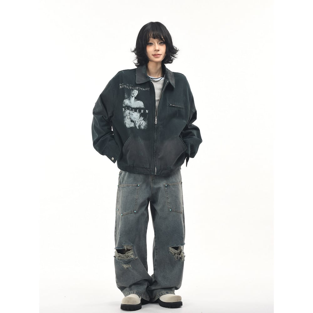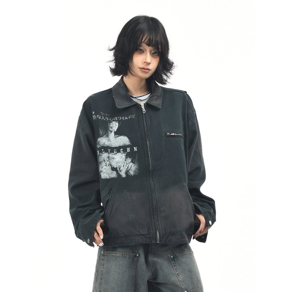 VINTAGE ストリート ウォッシュ加工 キャンバス ジャケット T1994