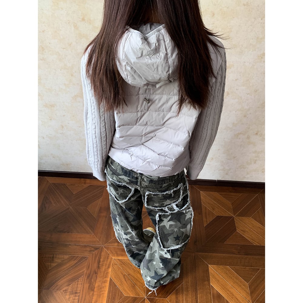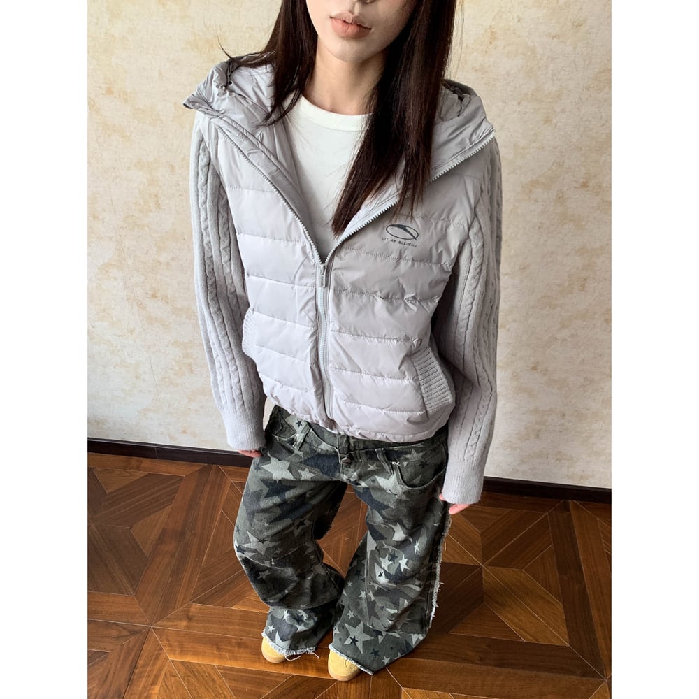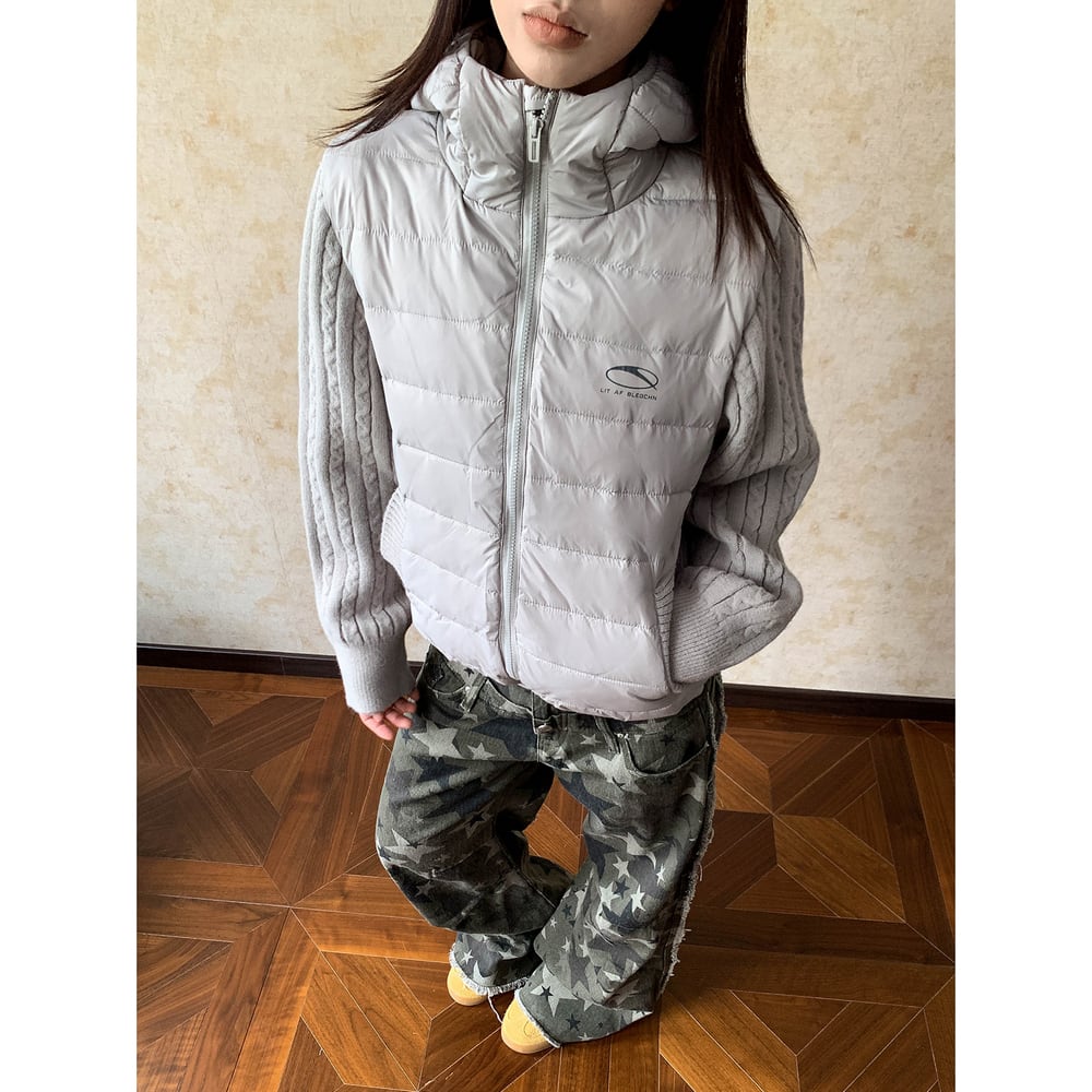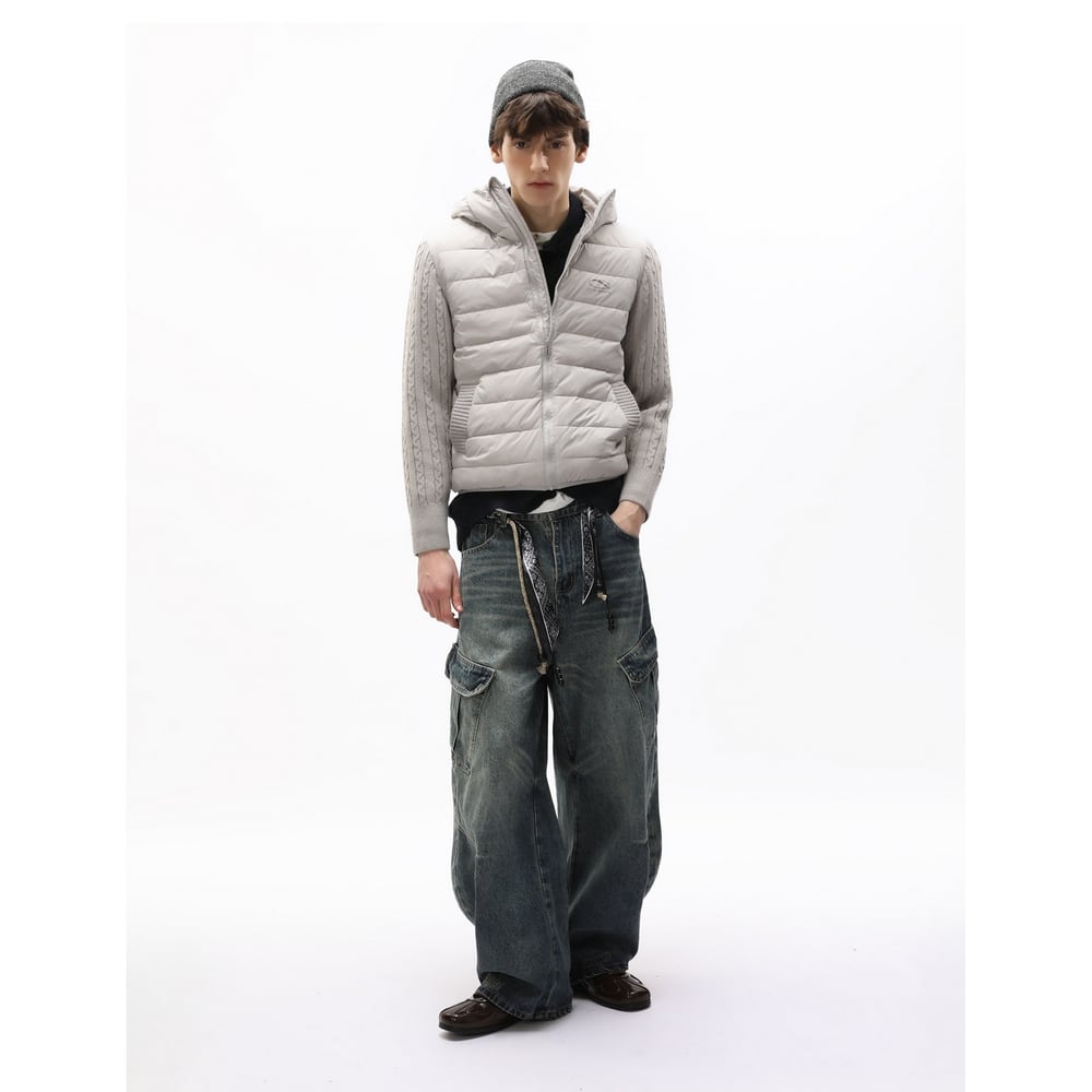 【暖かさUP】ストリート ニットスリーブダウンジャケット T1998