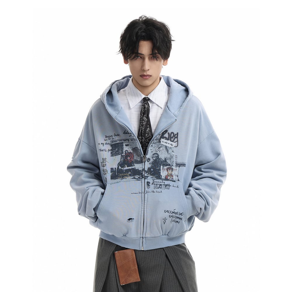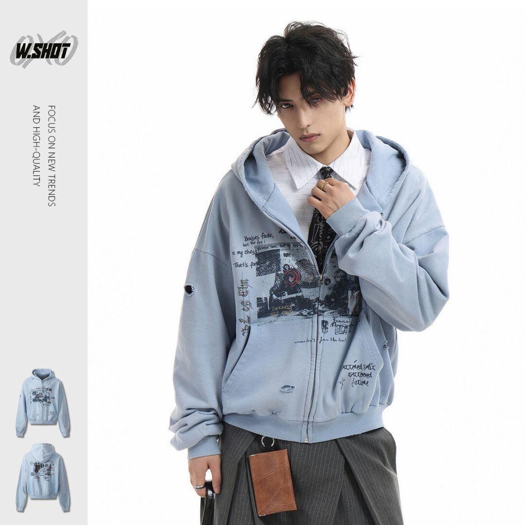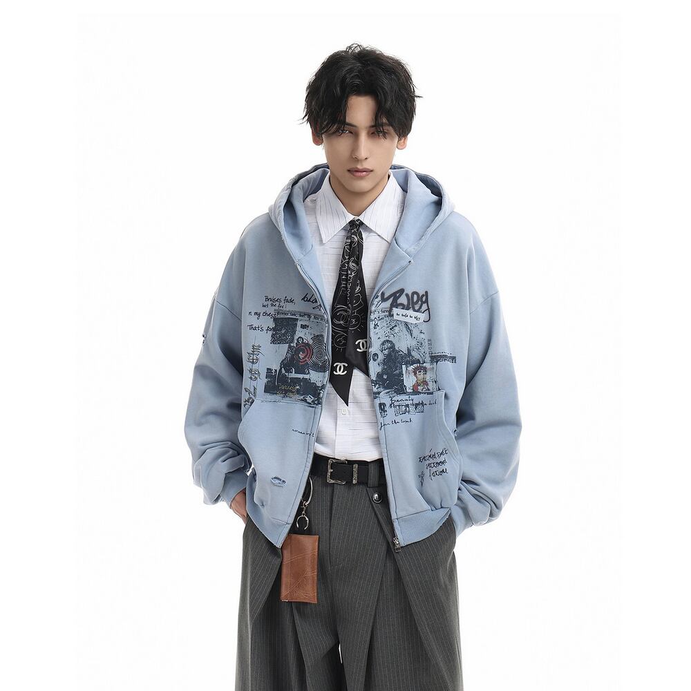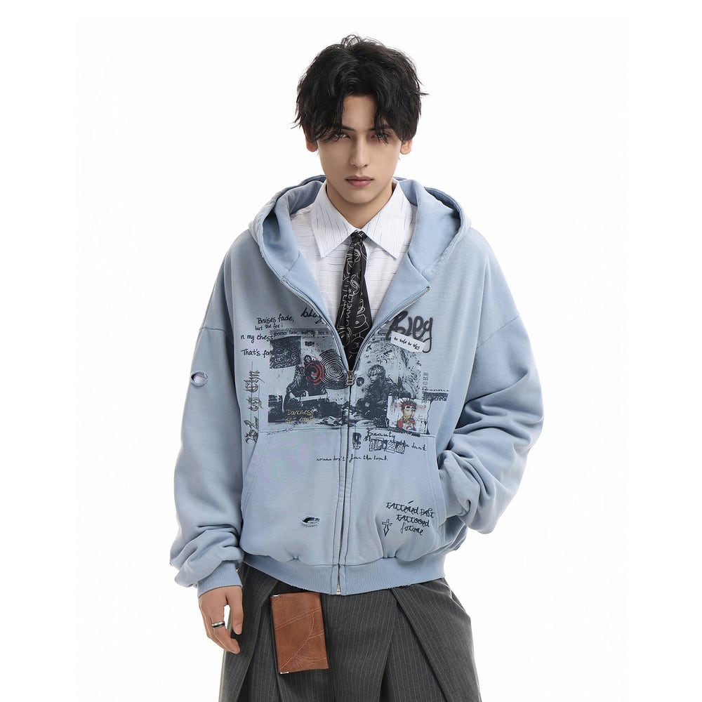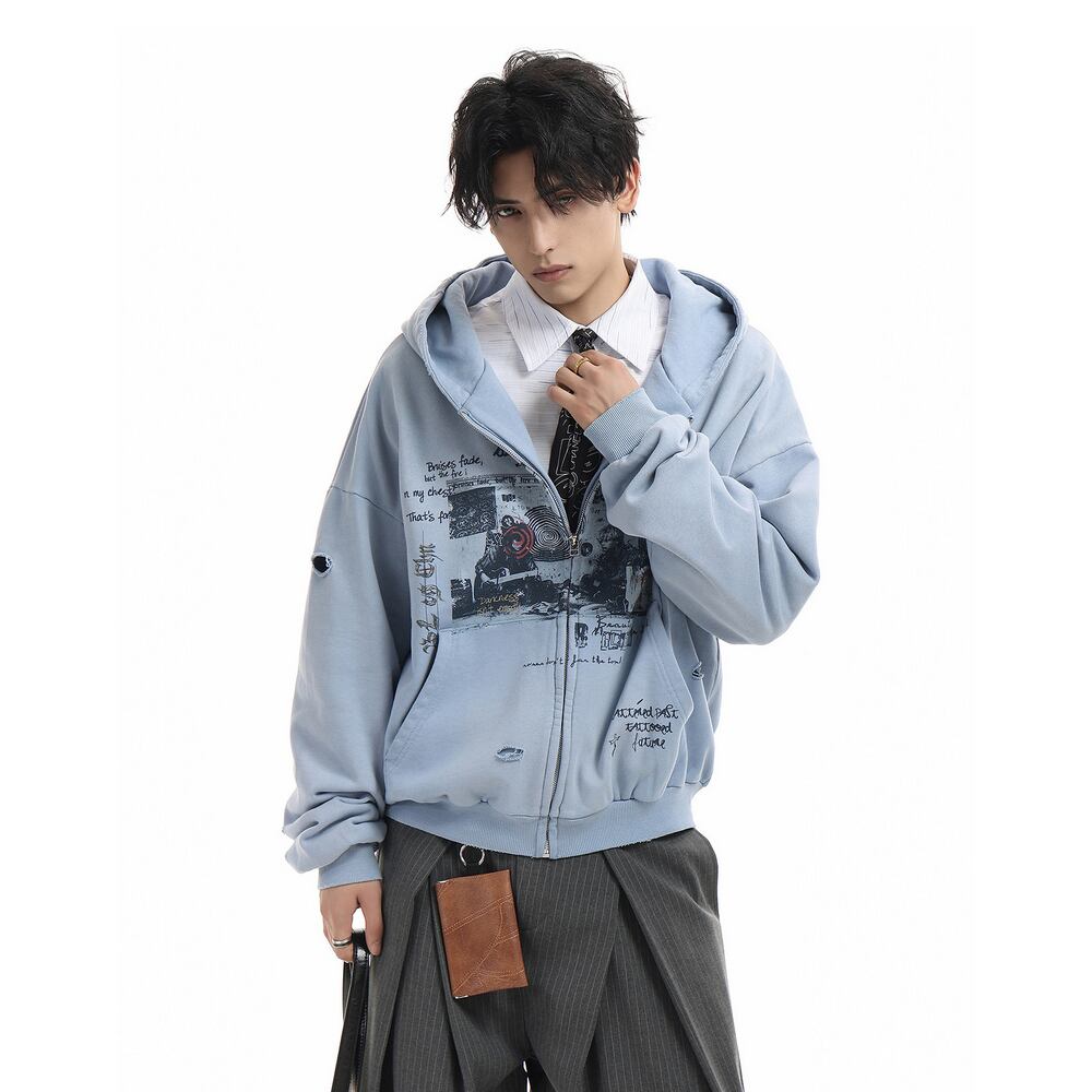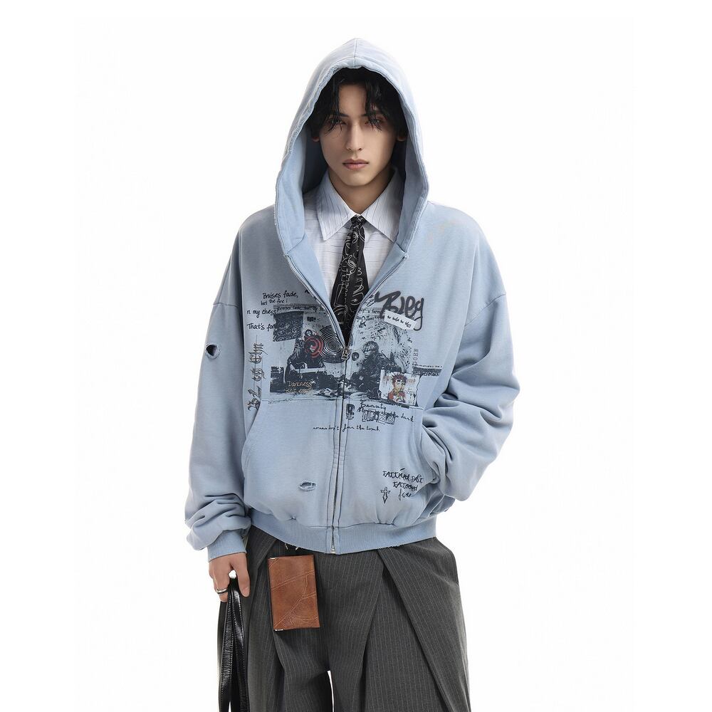 VINTAGE ストリート ダメージ加工ジップパーカー T2003