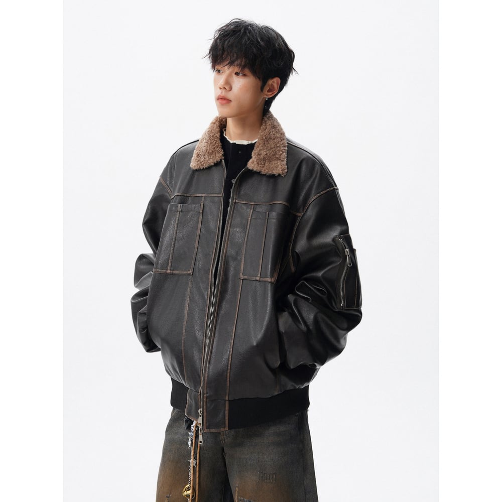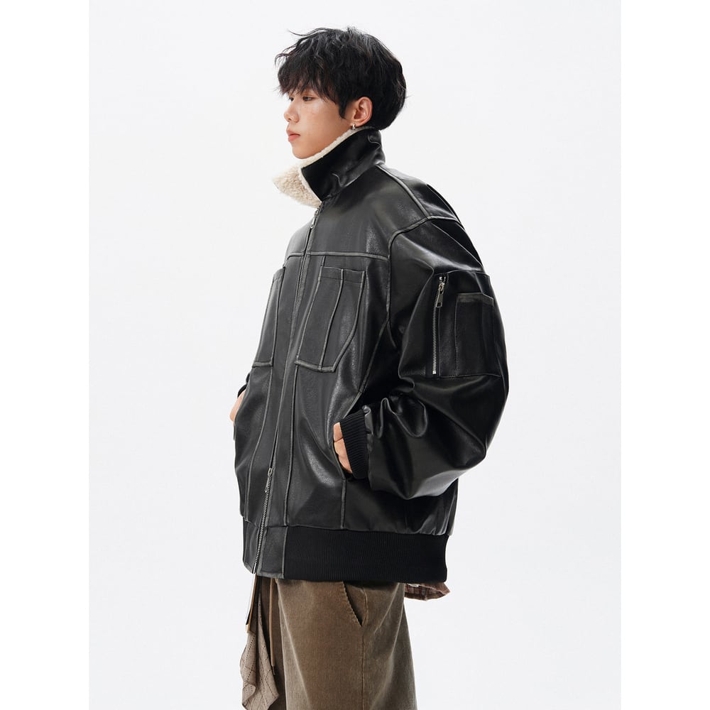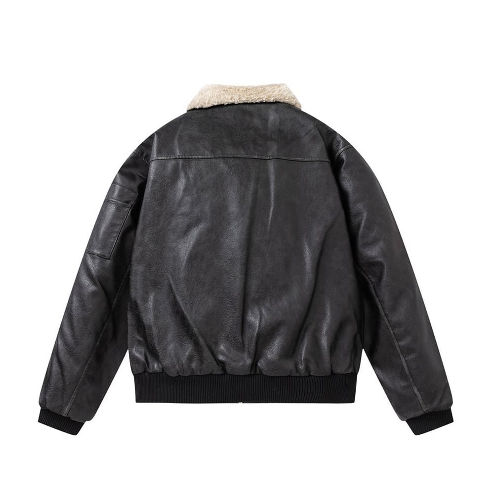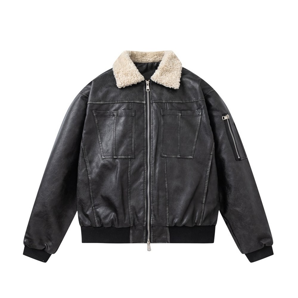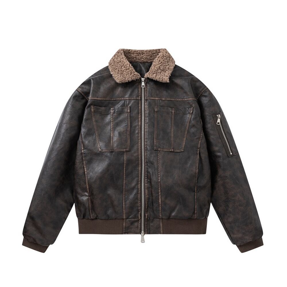 【暖かさUP】ストリート ラペルPUレザー中綿ジャケット T2005