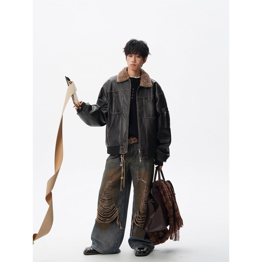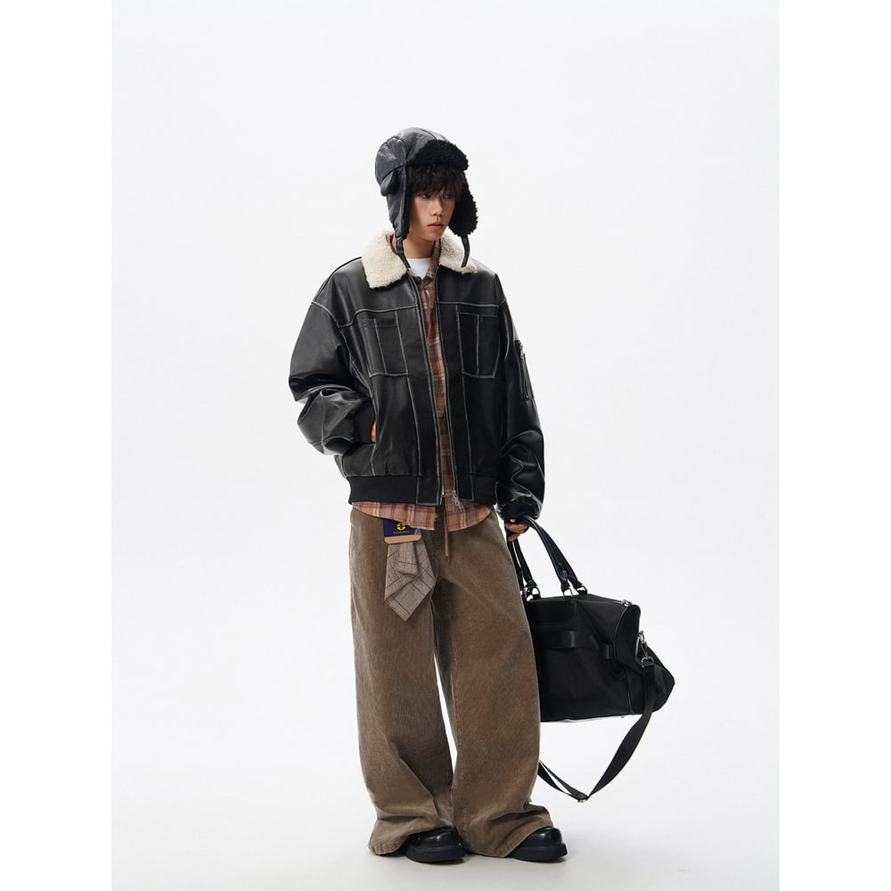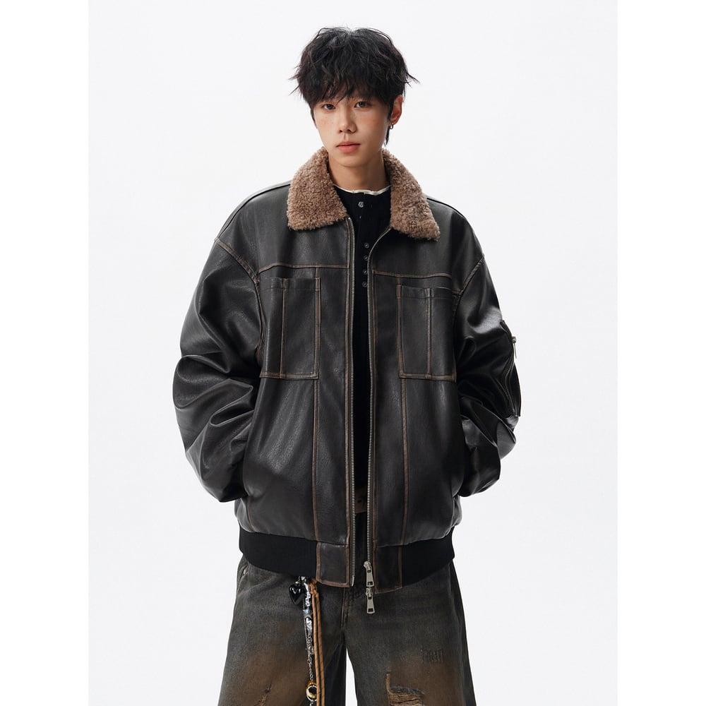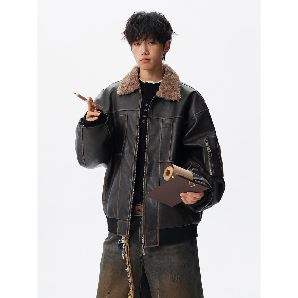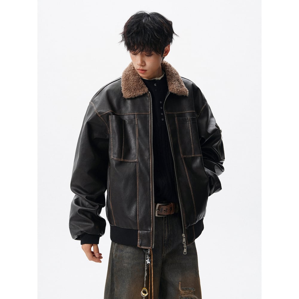 【暖かさUP】ストリート ラペルPUレザー中綿ジャケット T2005