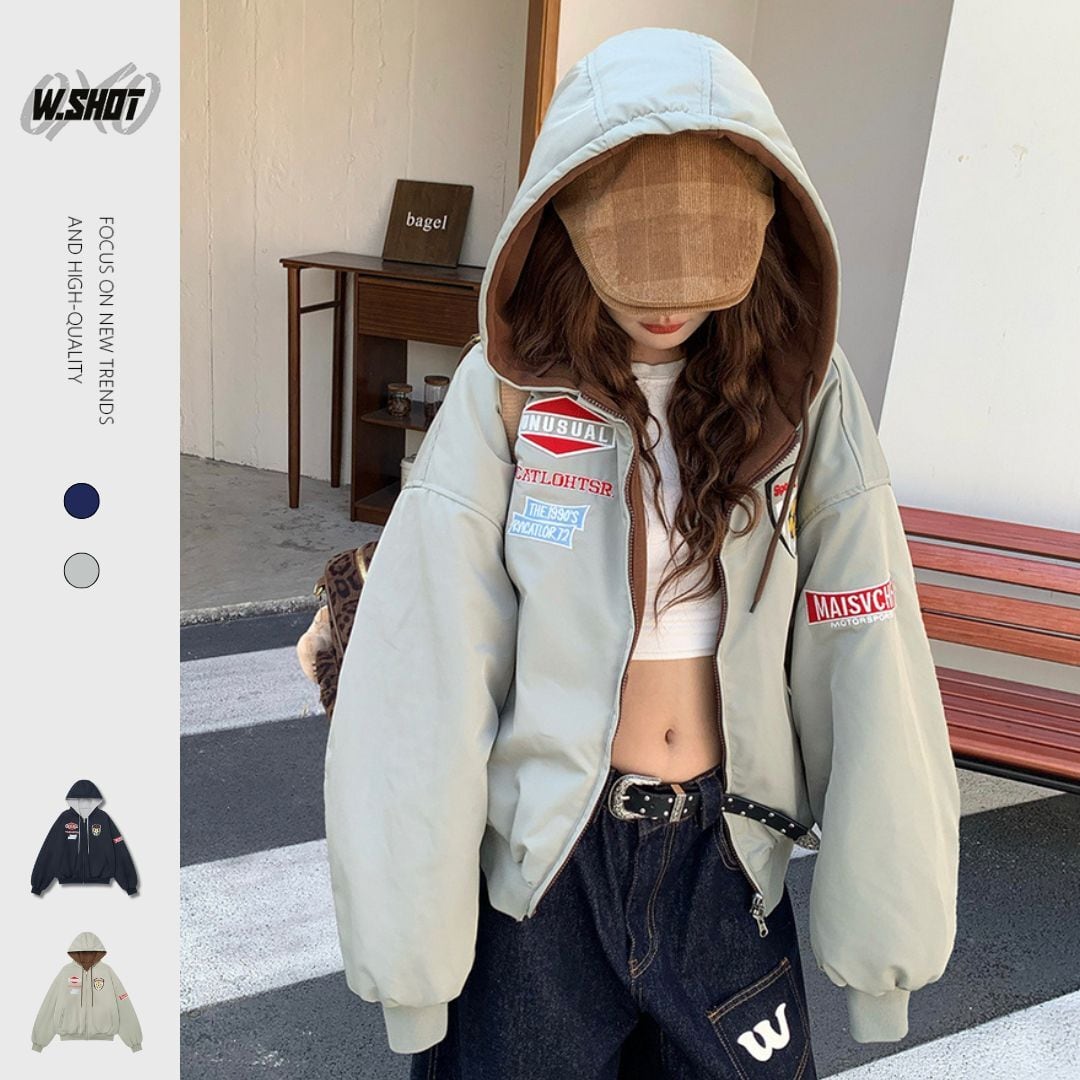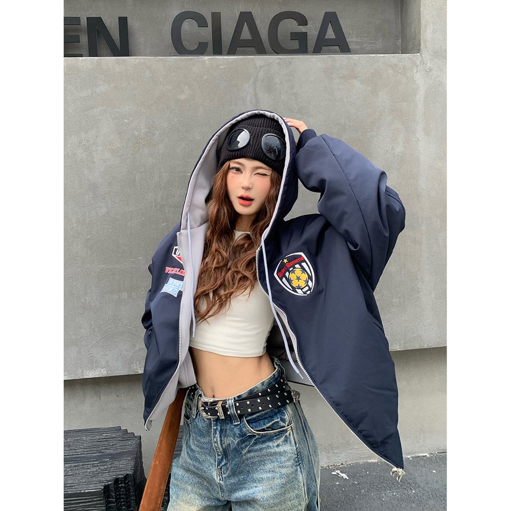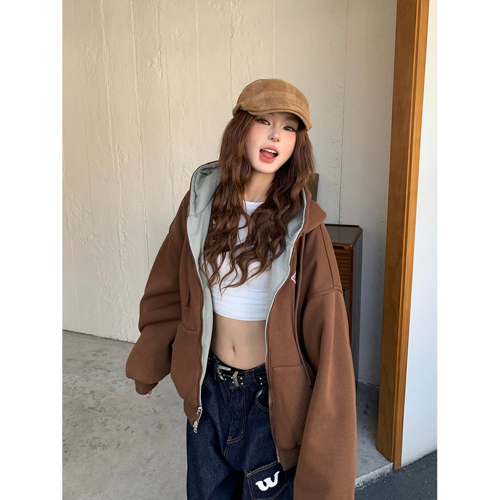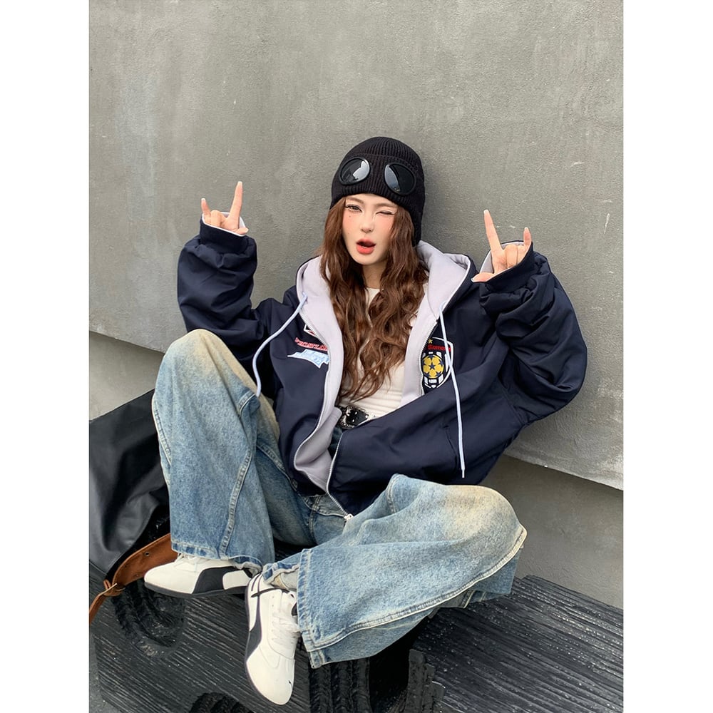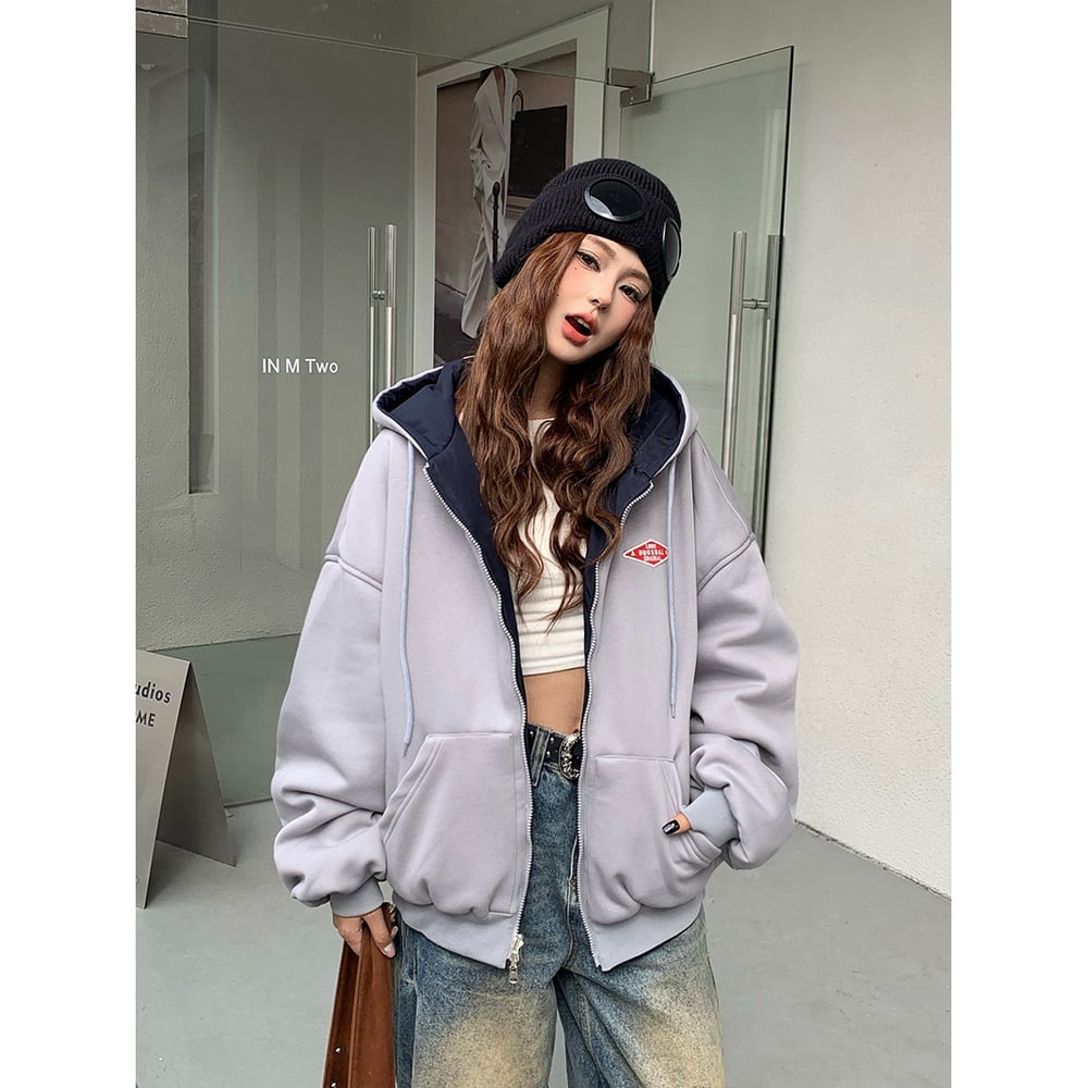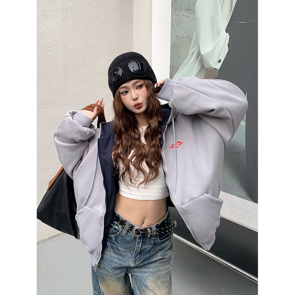 VINTAGE ストリート リバーシブル刺繍ジップパーカー T2011