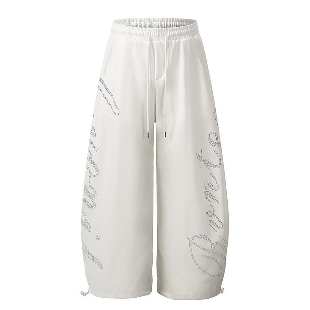 裾は束脚デザインで、ウエストは松緊仕様+調整可能なドローコード付き。