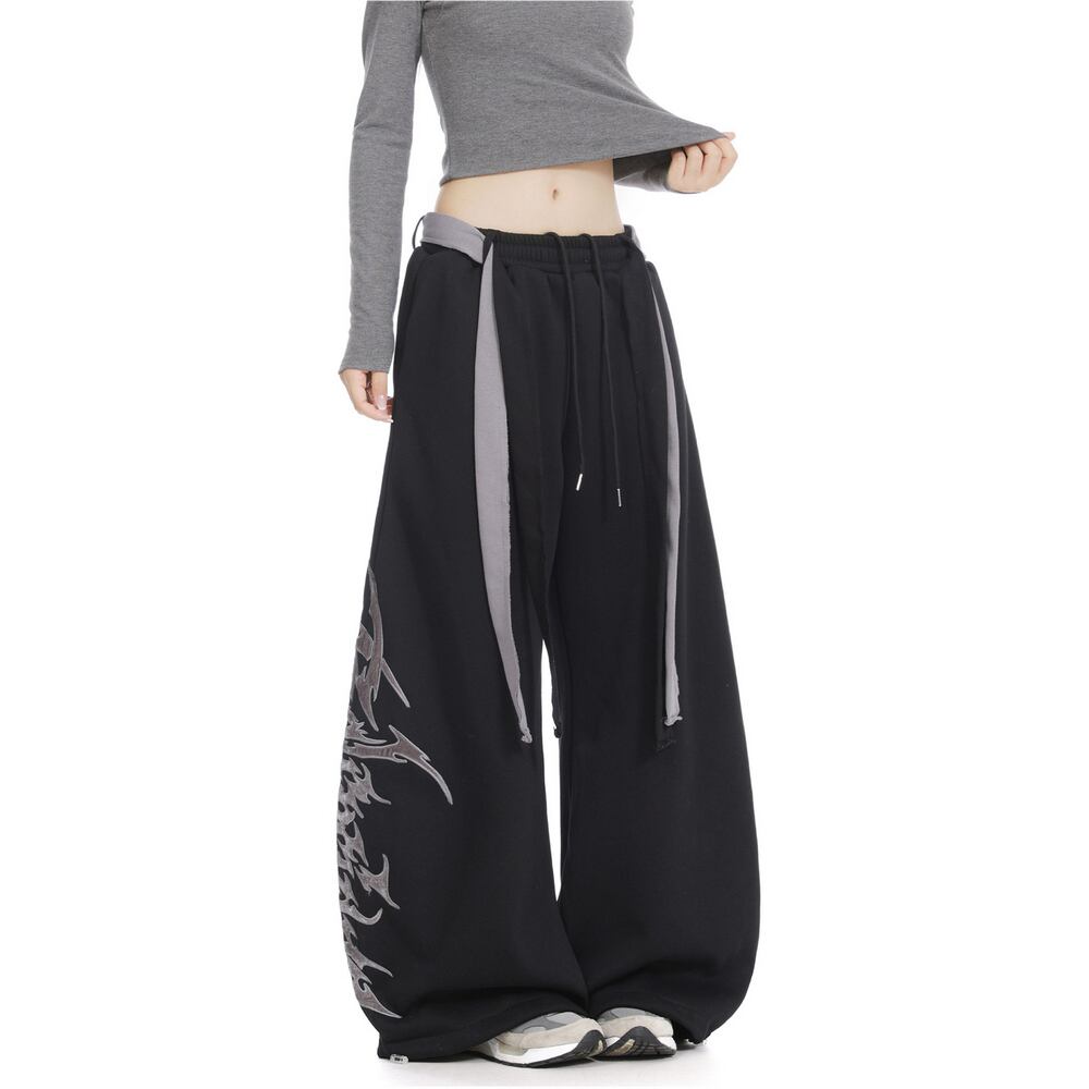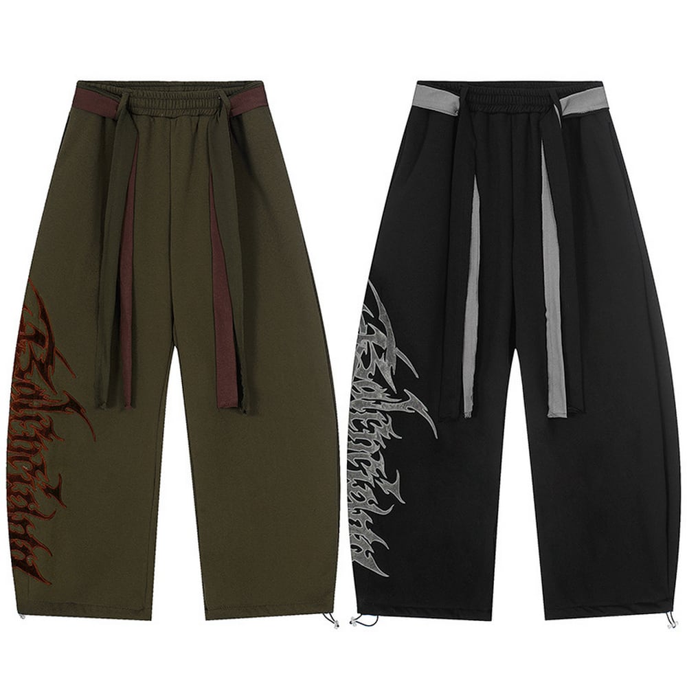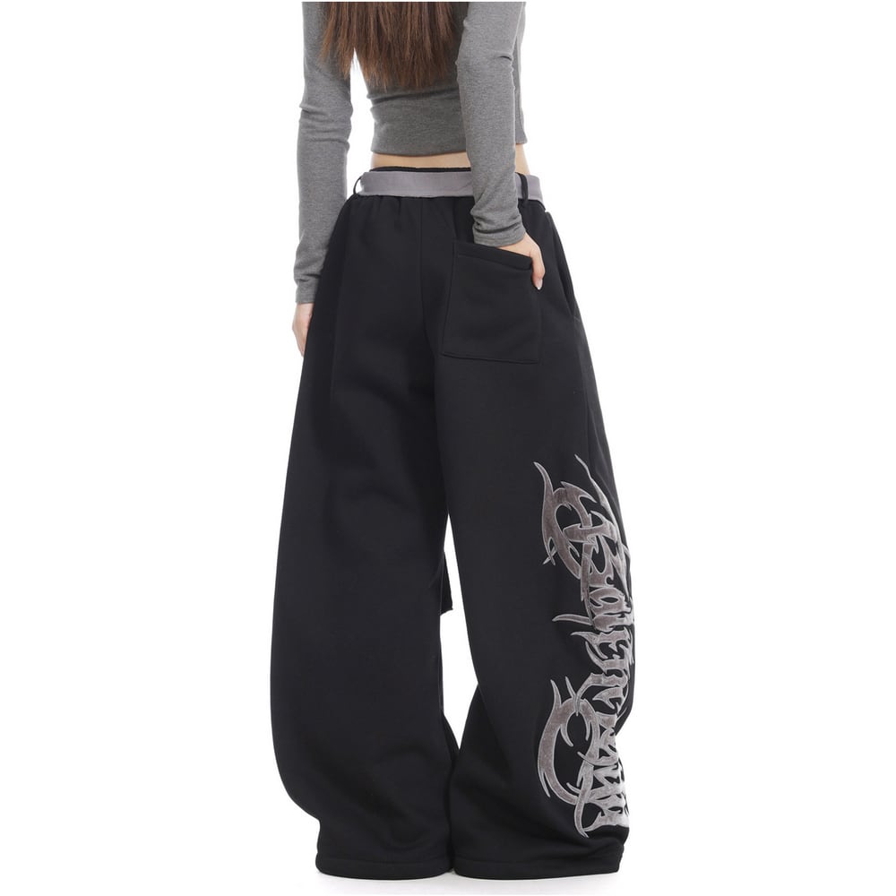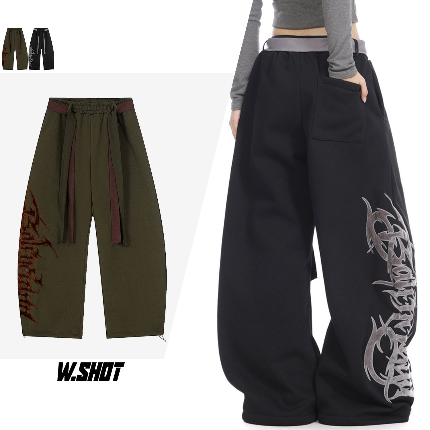 ストリート 裏起毛 ゴシックレタリング刺繍 スウェットパンツ P382