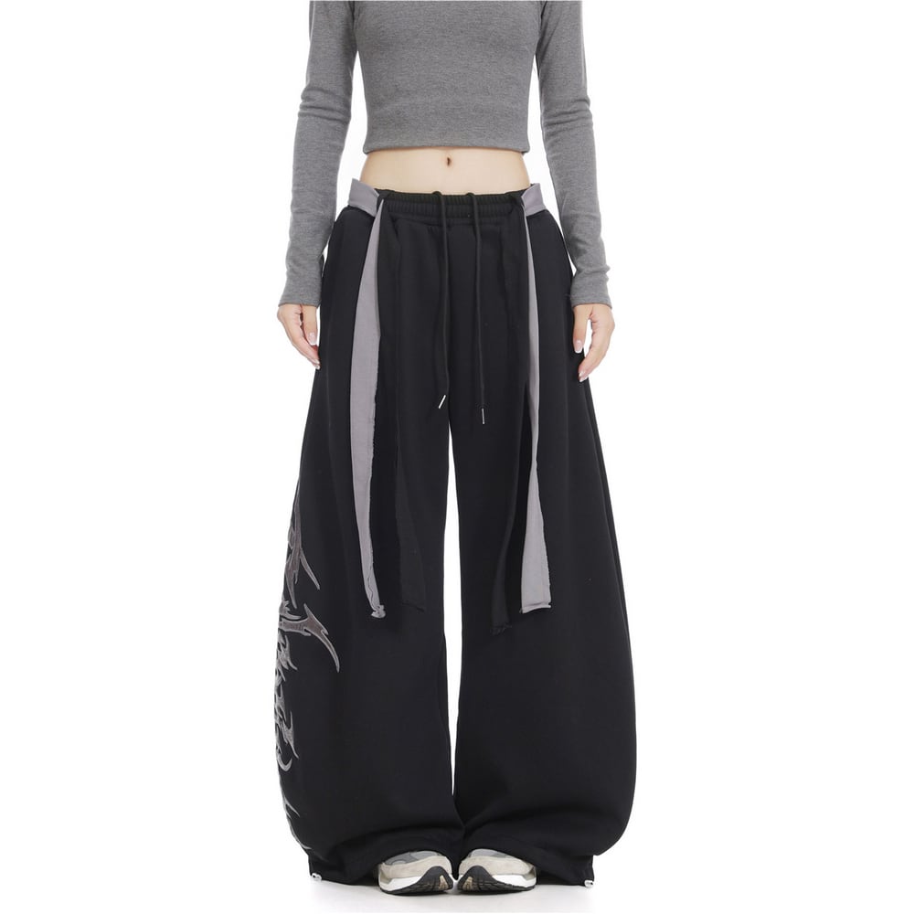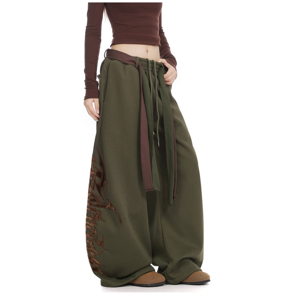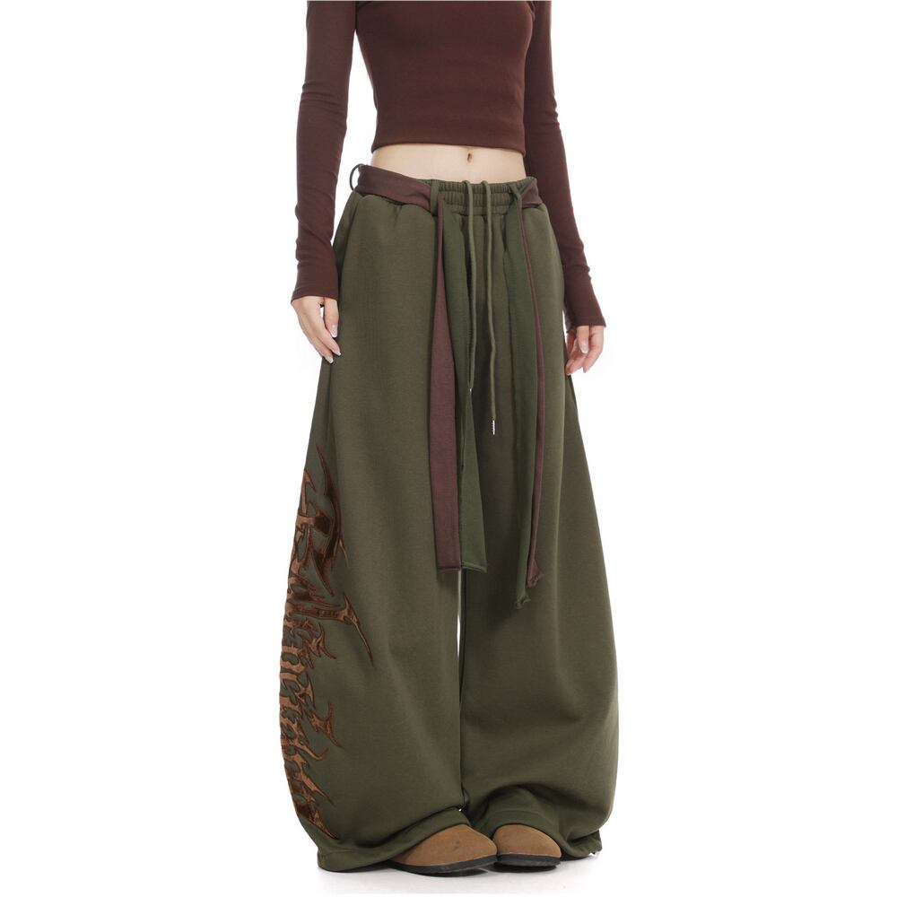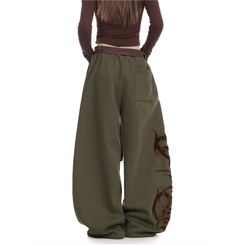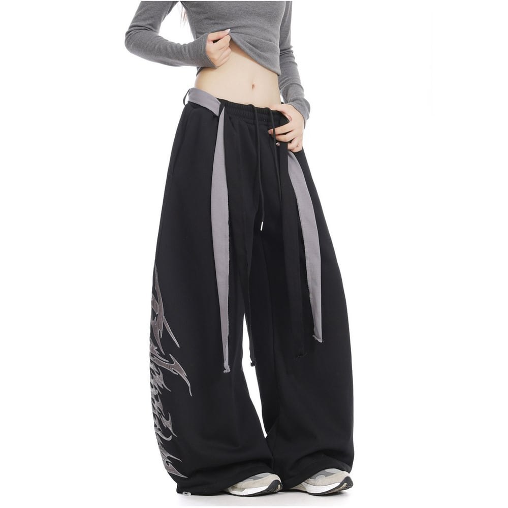 ストリート 裏起毛 ゴシックレタリング刺繍 スウェットパンツ P382