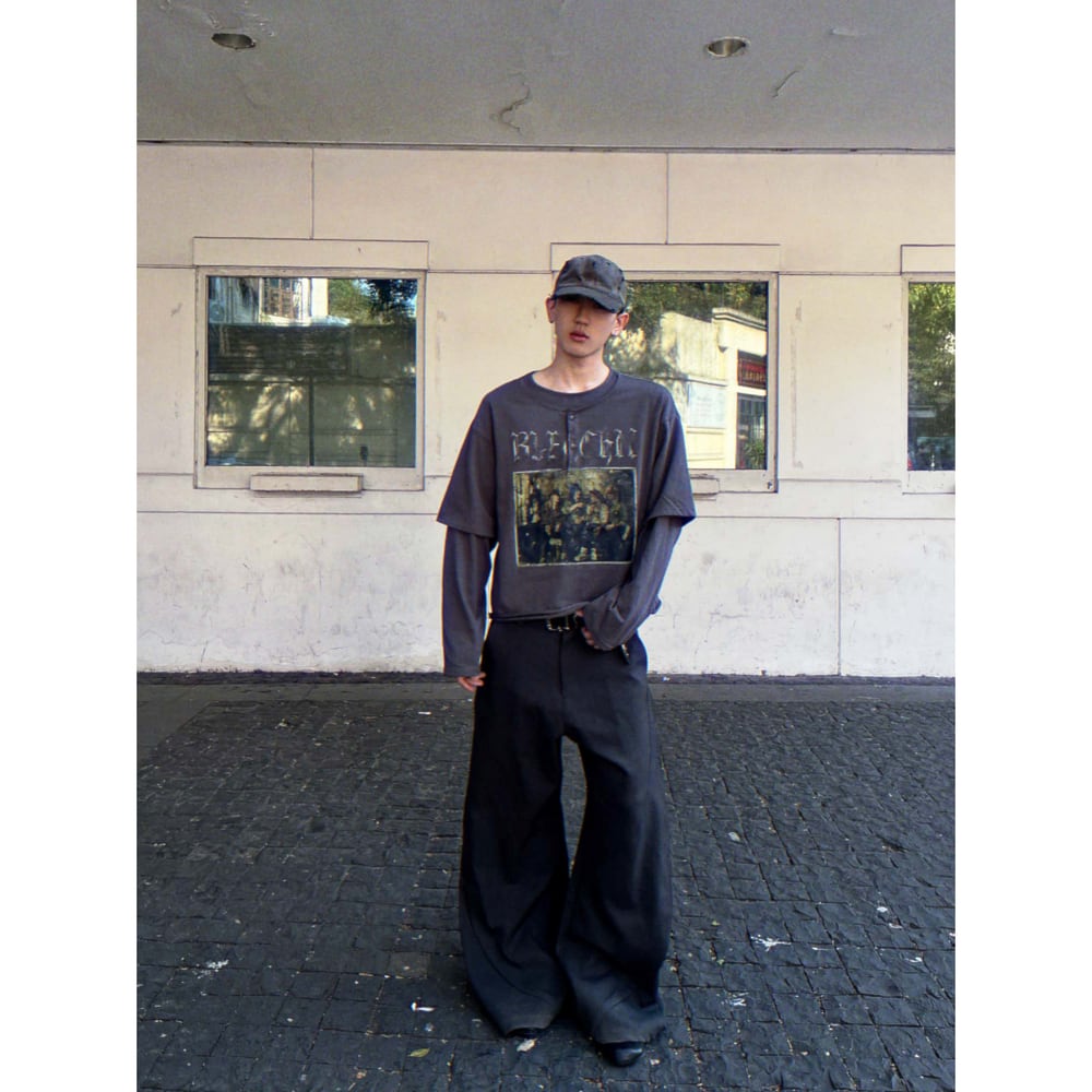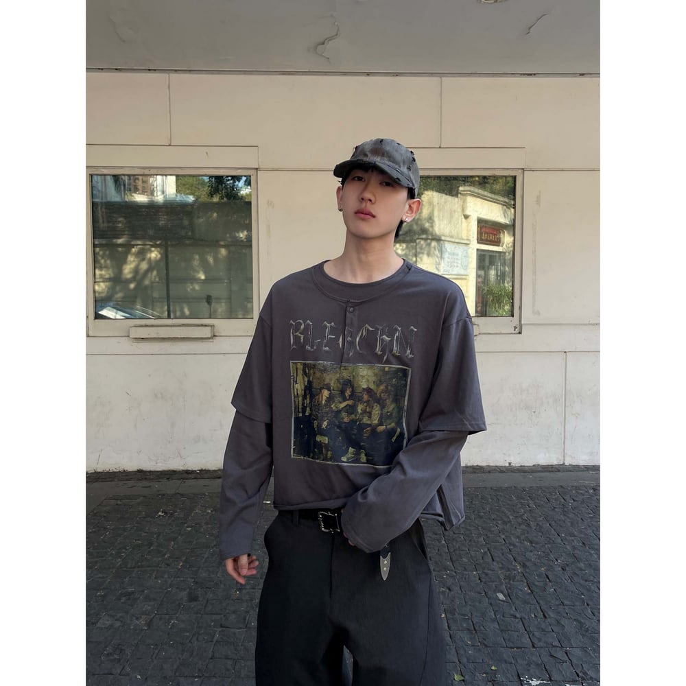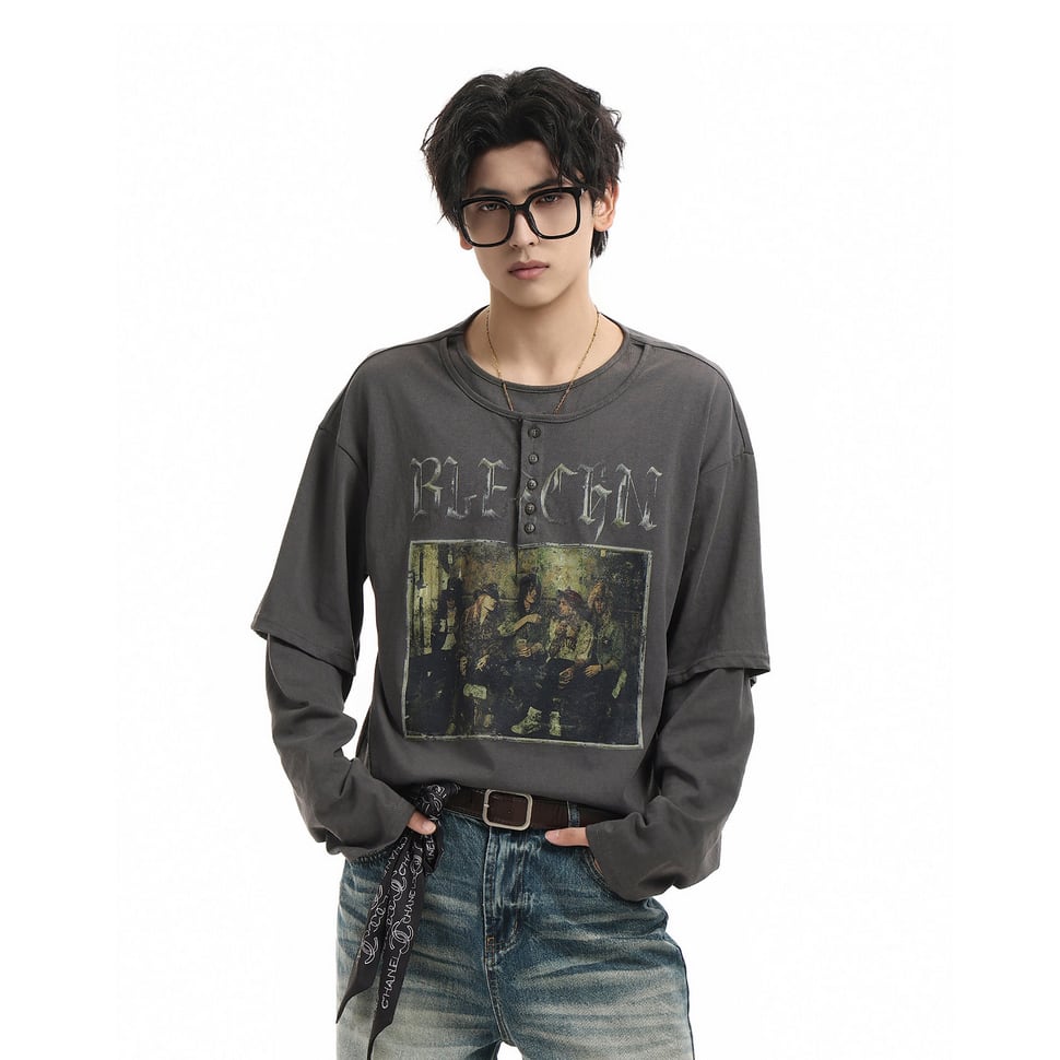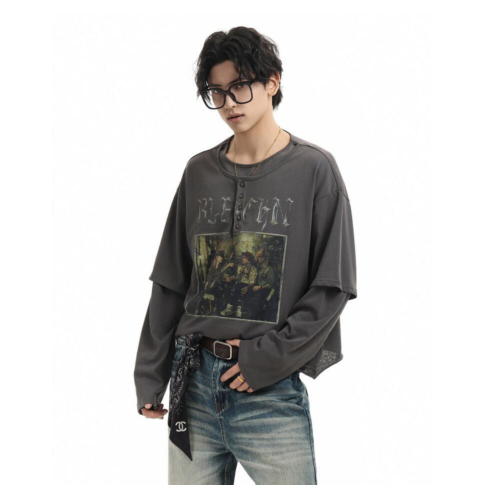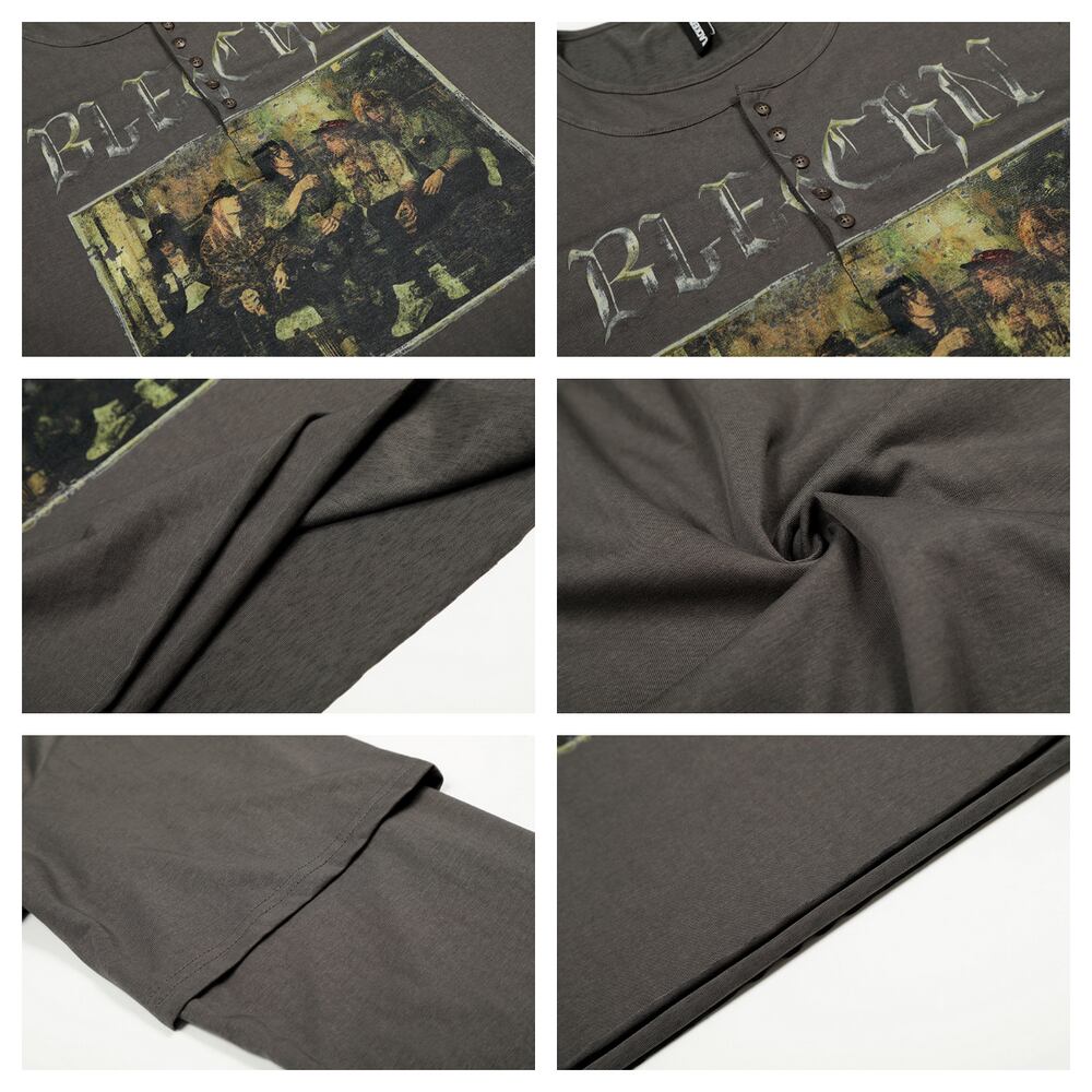 VINTAGE ストリート ヘンリーネック ロングTシャツ T2018