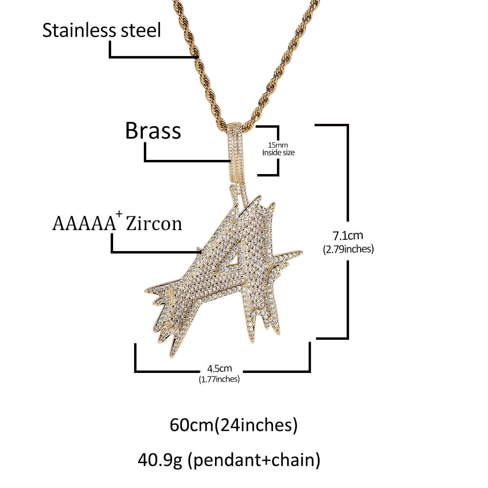 Size:3mmツイストチェーン長さ約60cm、ペンダント約7.1cm x 4.5cm