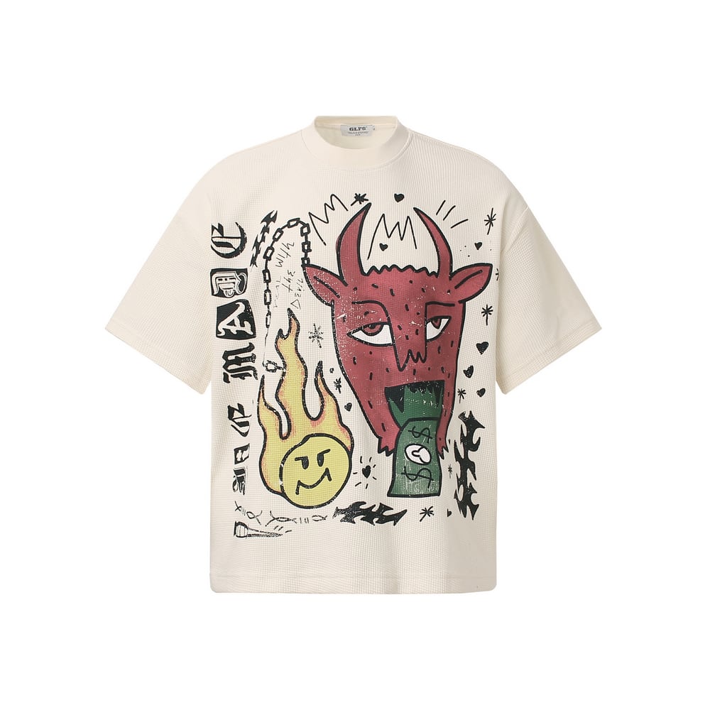 VINTAGE ストリート 鬼フェイスワッフル Tシャツ T2035