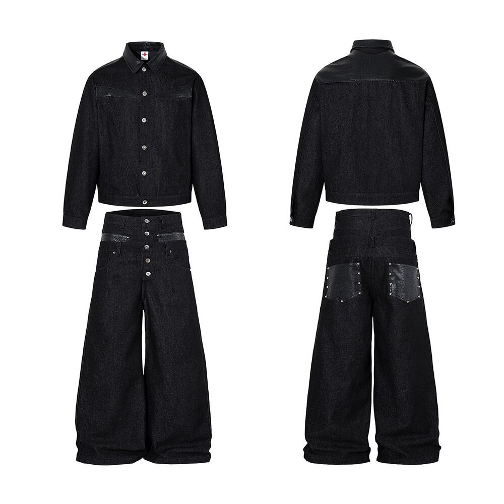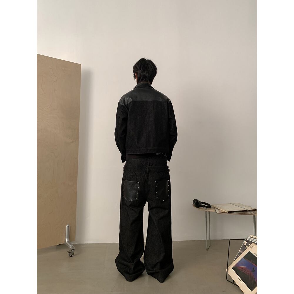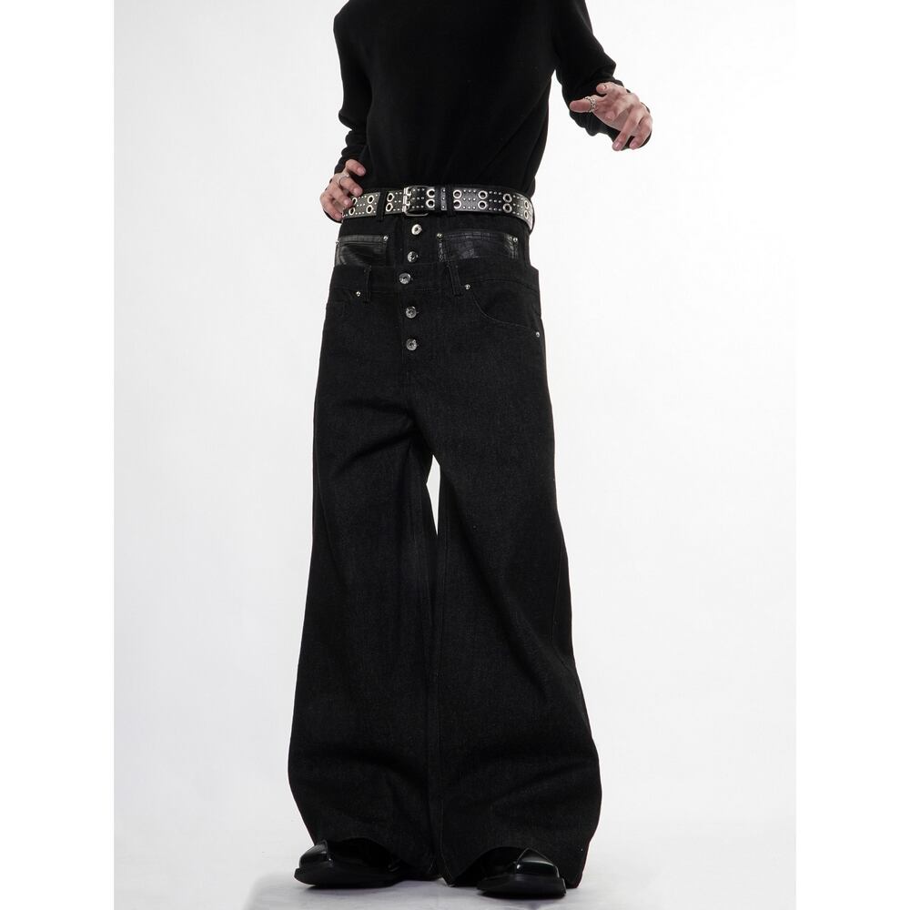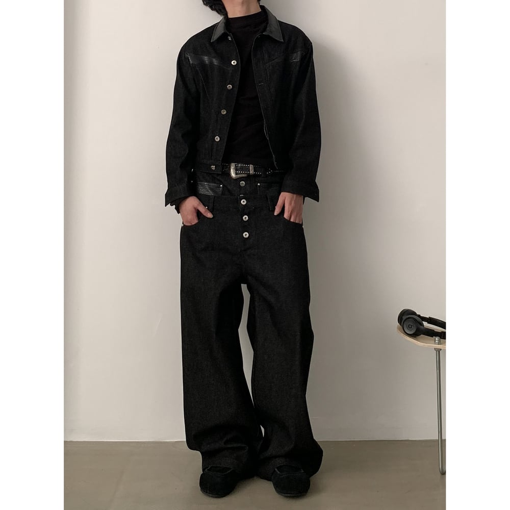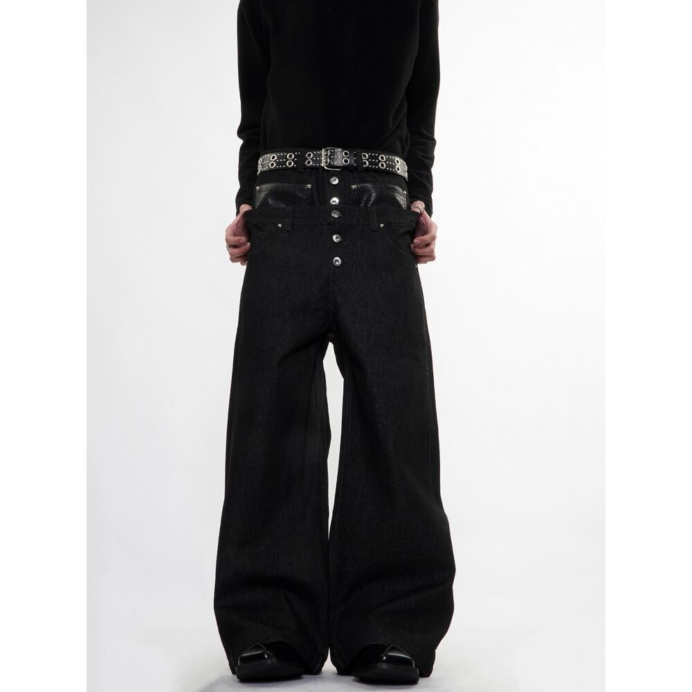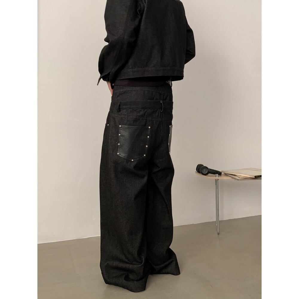 ストリート フェイクレイヤード デニムパンツ P384