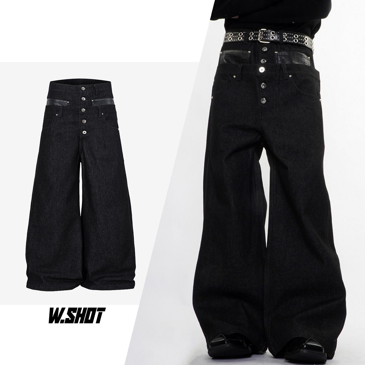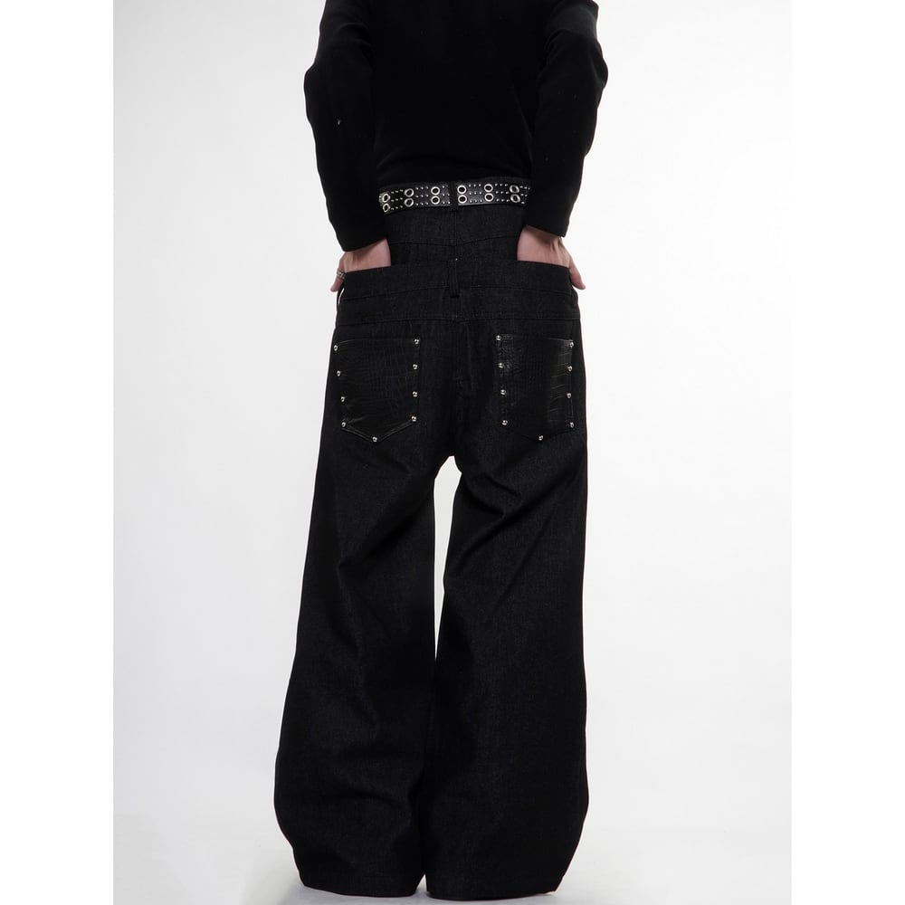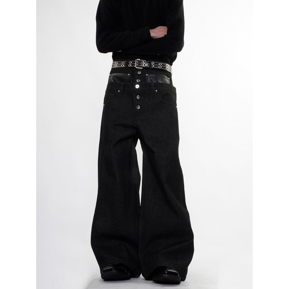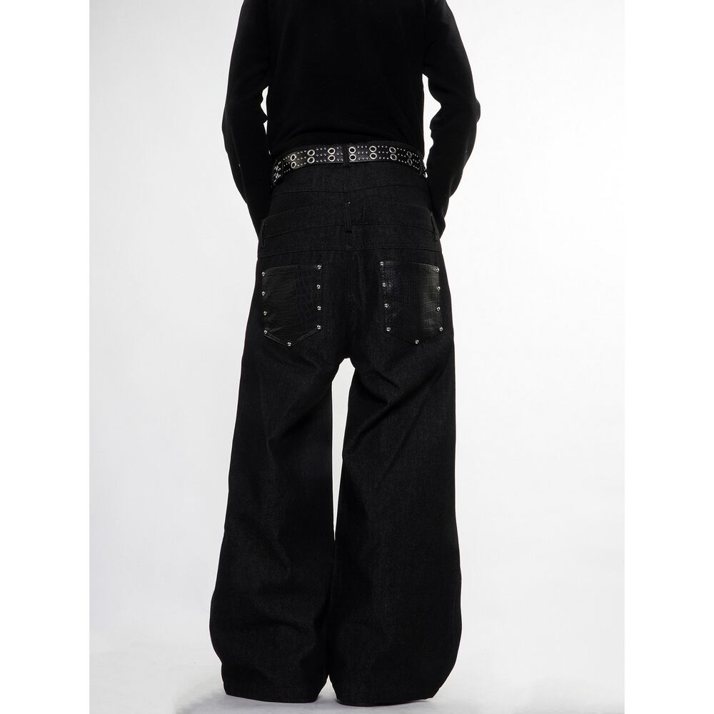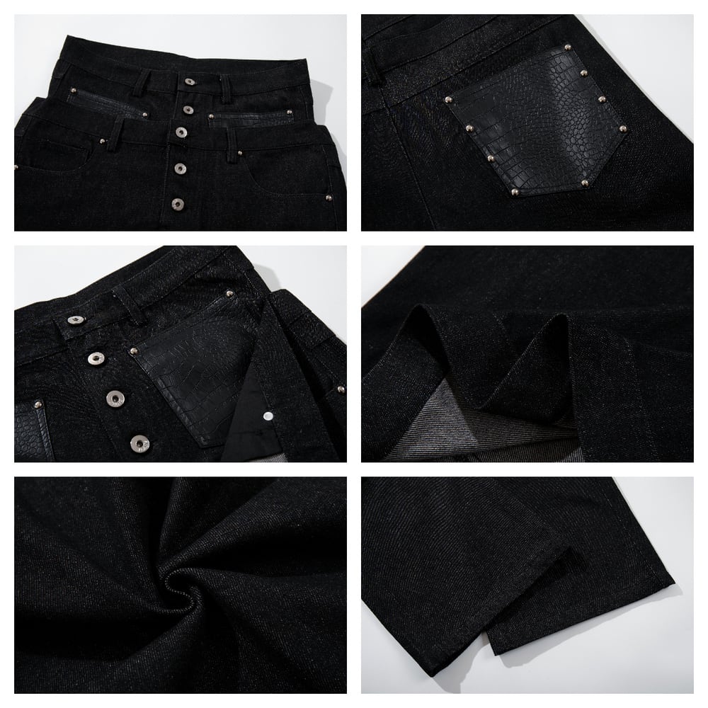 ストリート フェイクレイヤード デニムパンツ P384