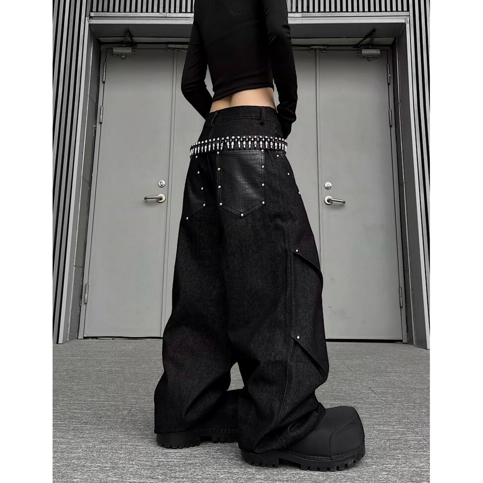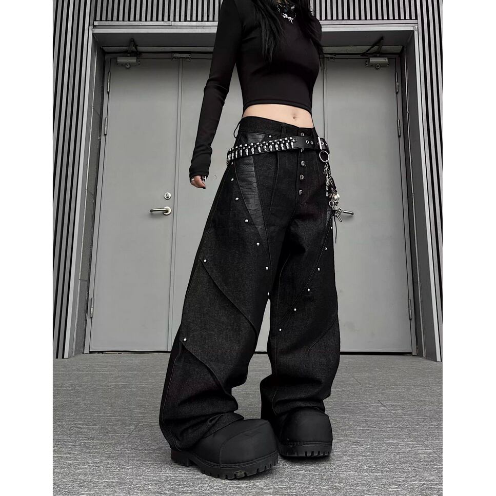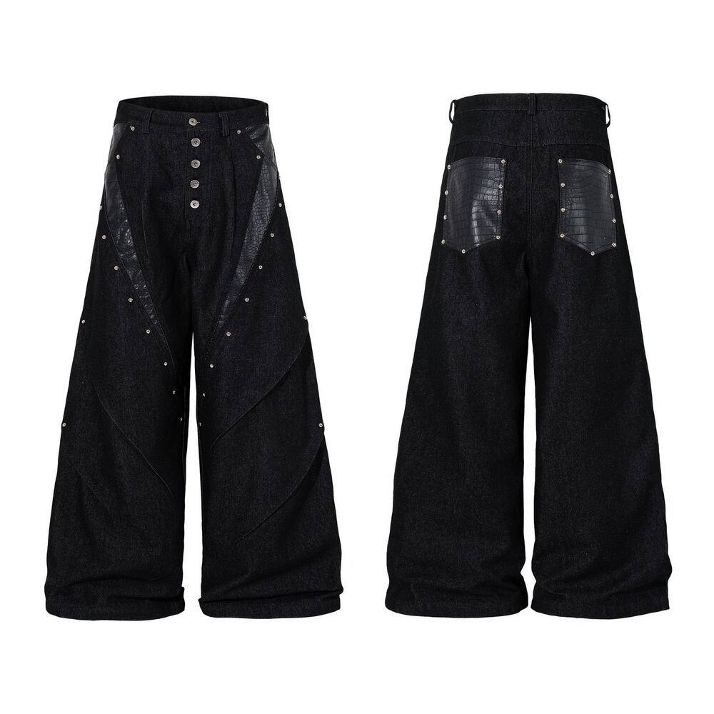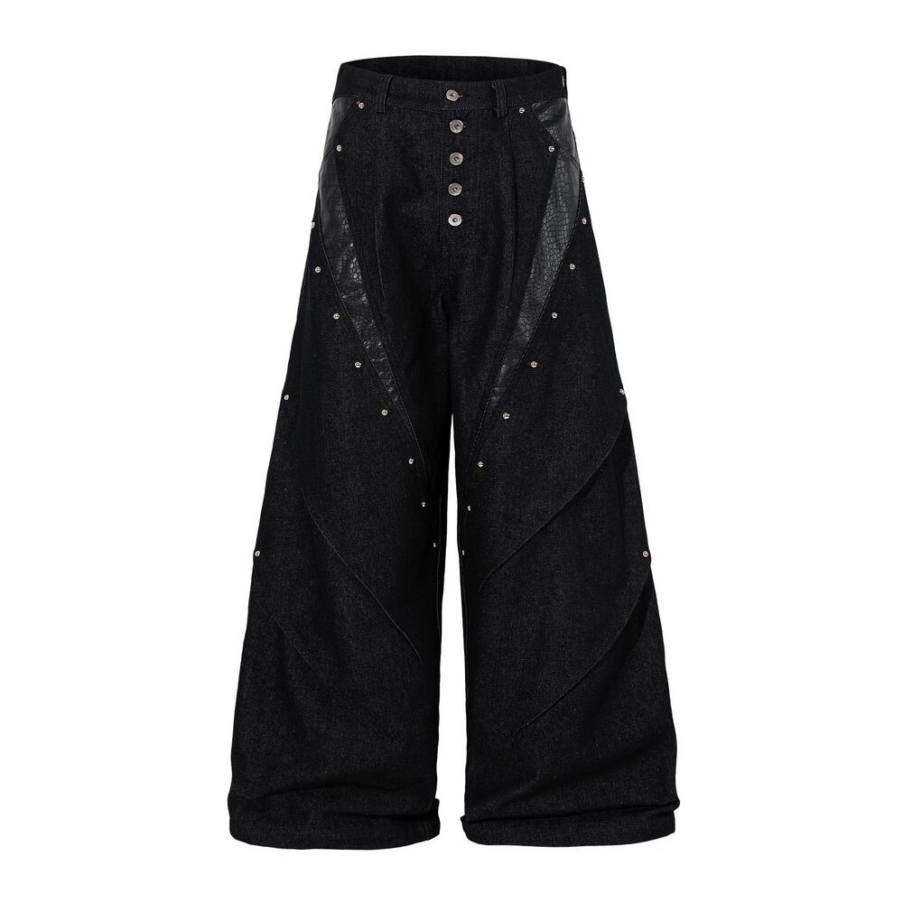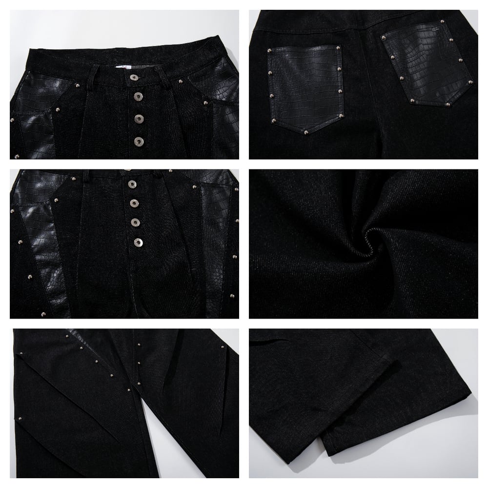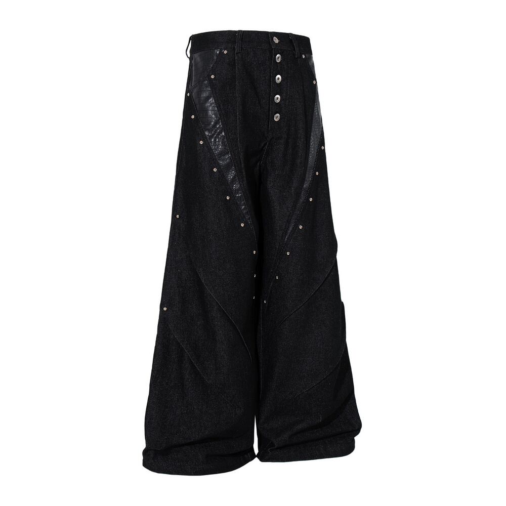 ストリート ブラックパイソン柄 デニムパンツ P385