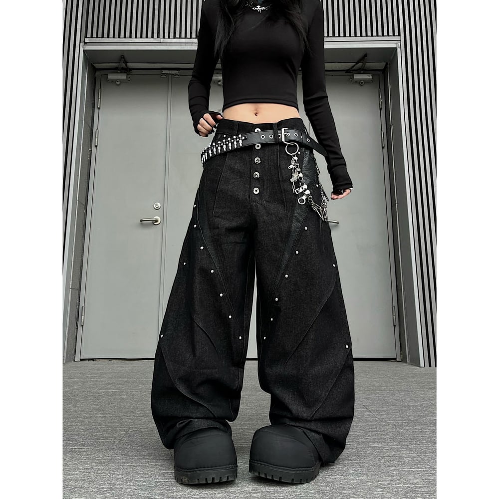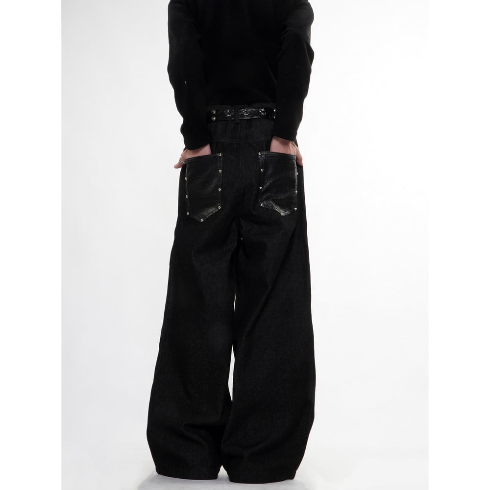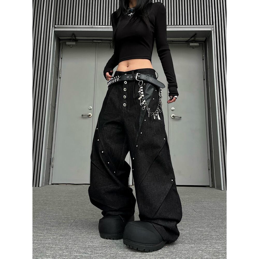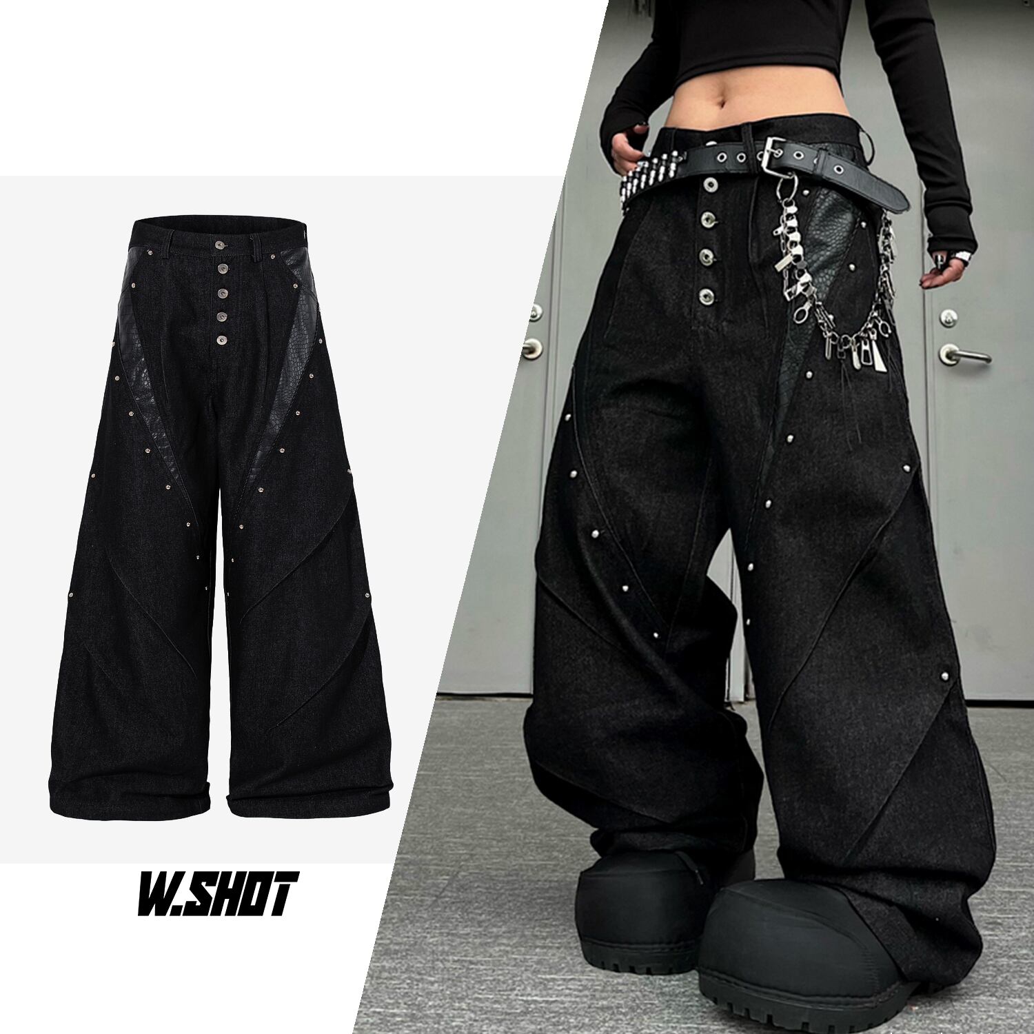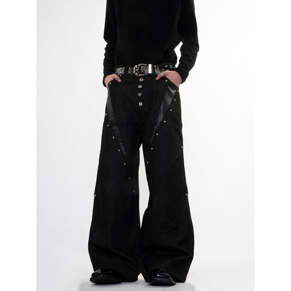 ストリート ブラックパイソン柄 デニムパンツ P385