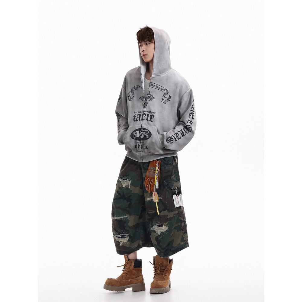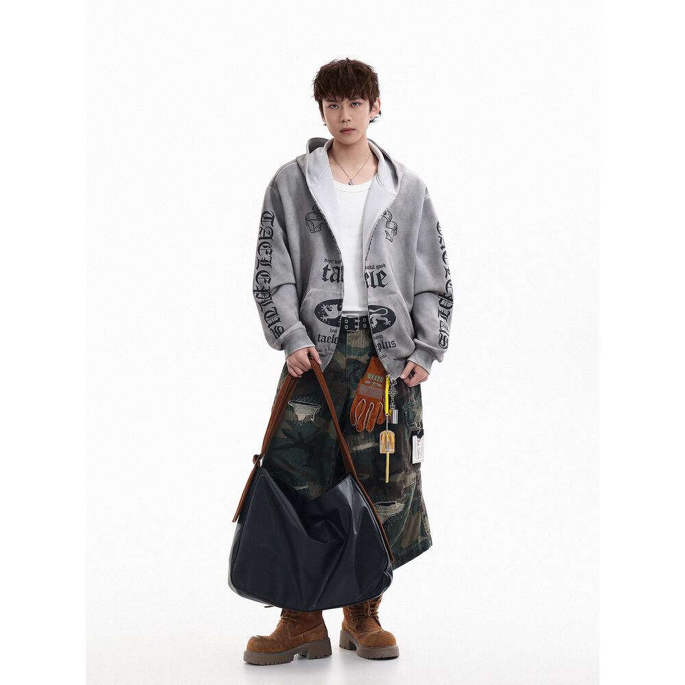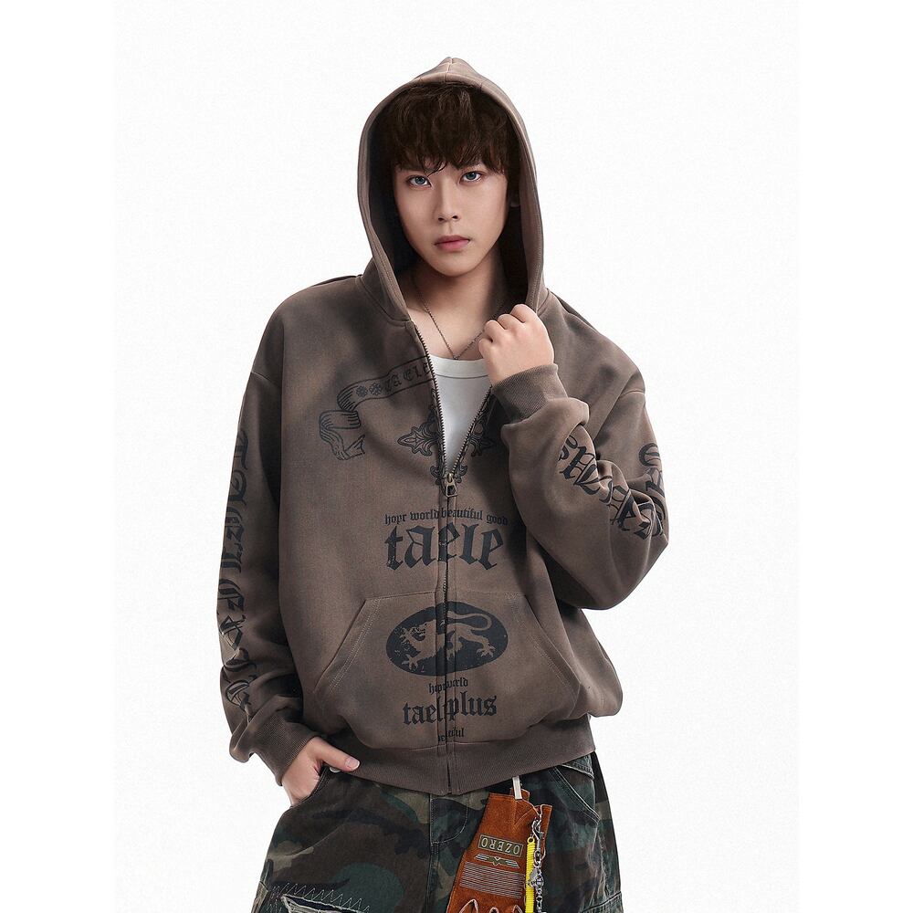 VINTAGE ストリート 汚れ加工ジップパーカー T2071