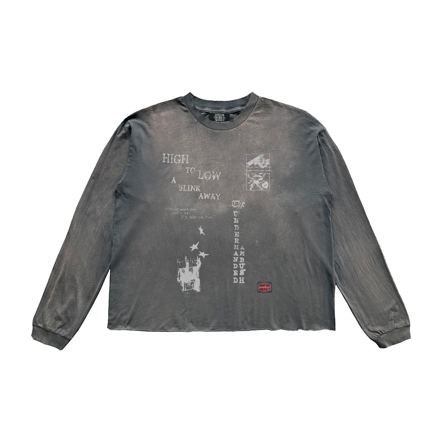 短丈シルエットの薄手ダメージVintageロングTシャツ。