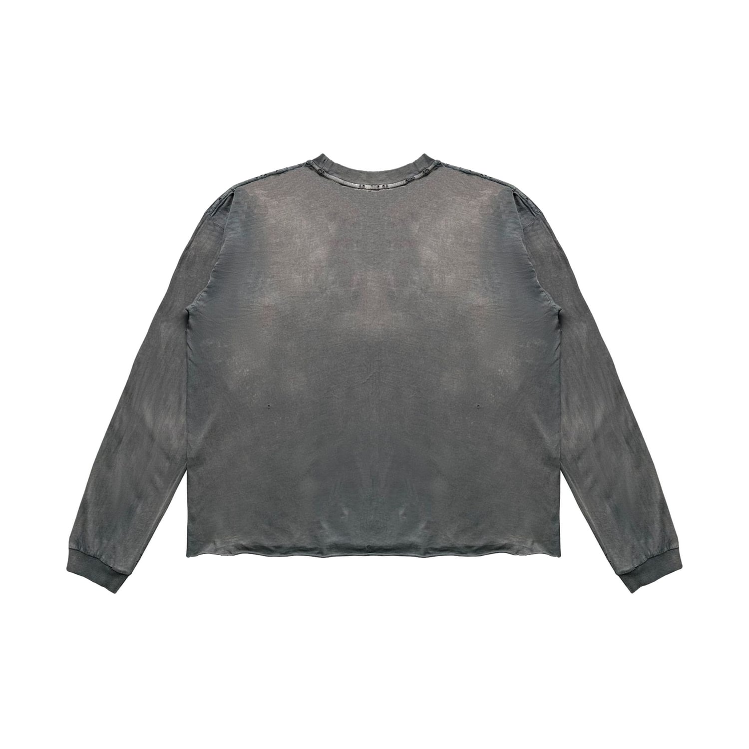 短丈シルエットの薄手ダメージVintageロングTシャツ。
