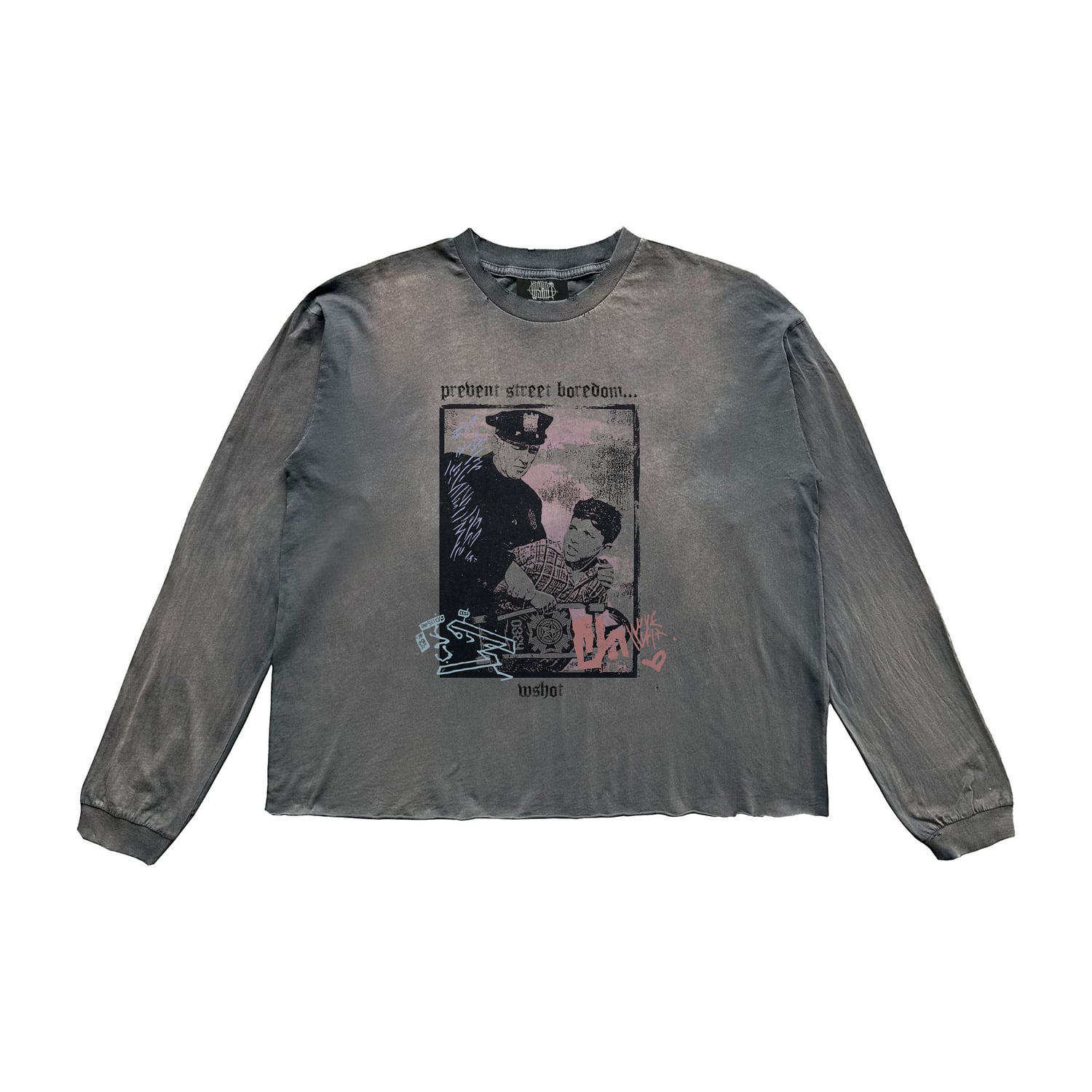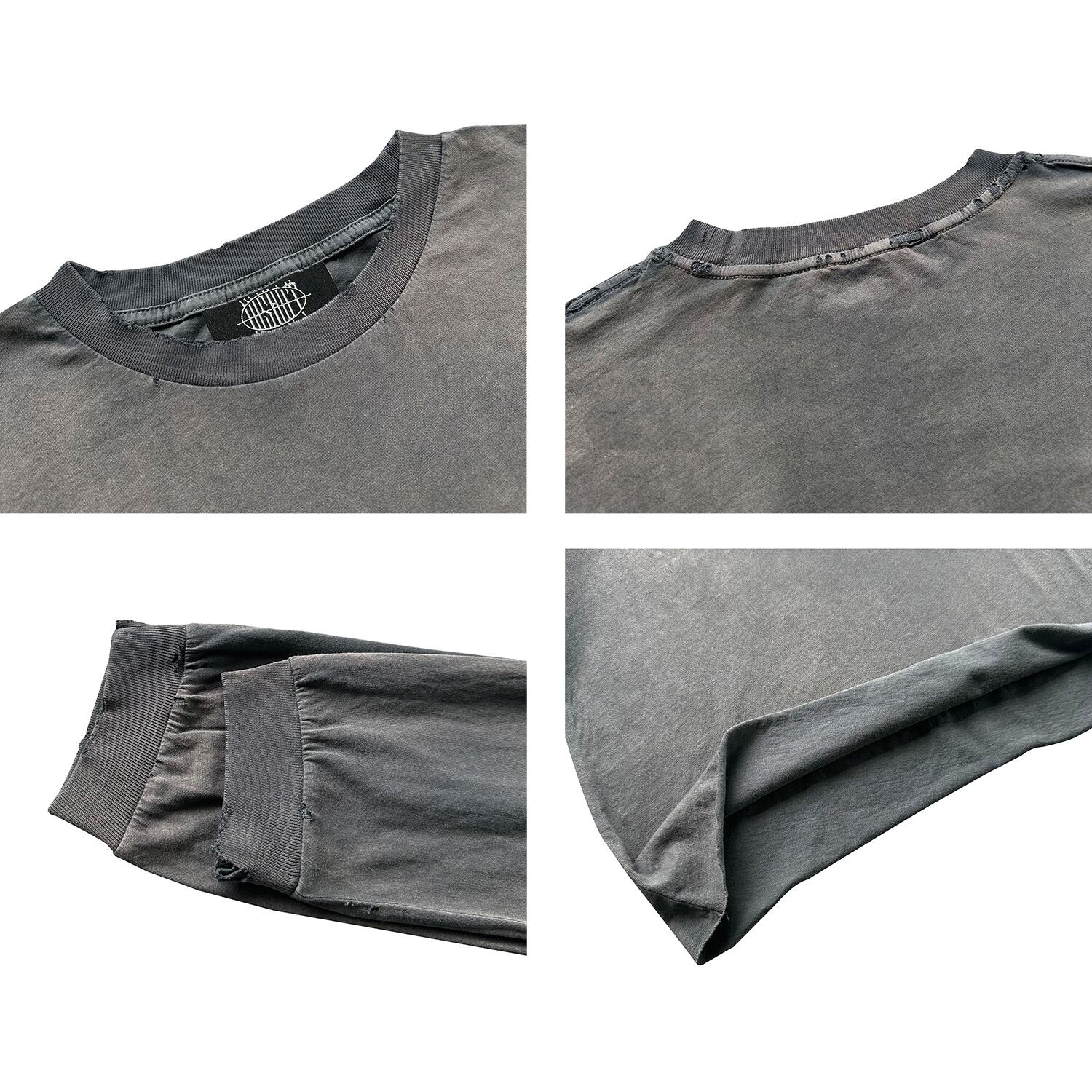 短丈シルエットの薄手ダメージVintageロングTシャツ。